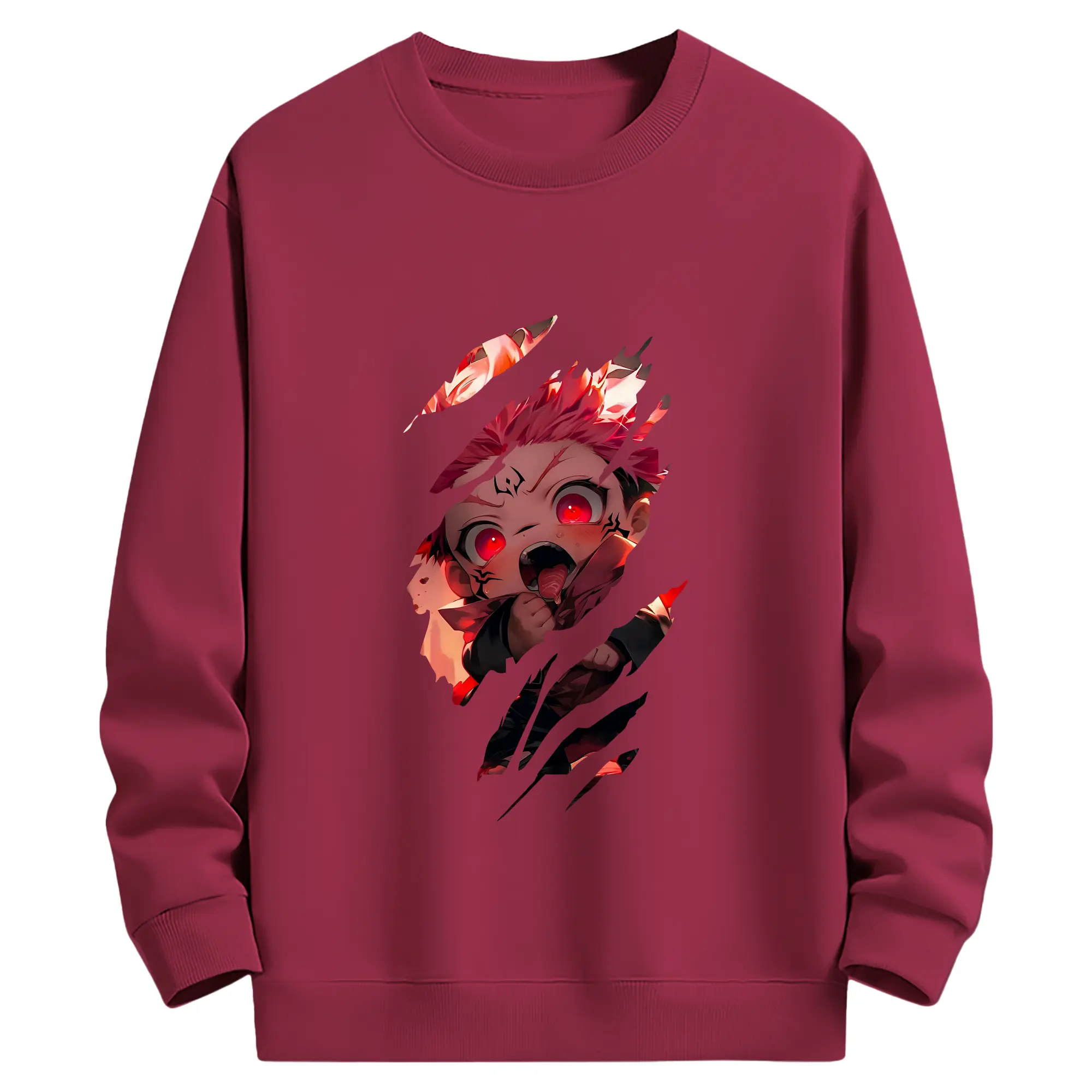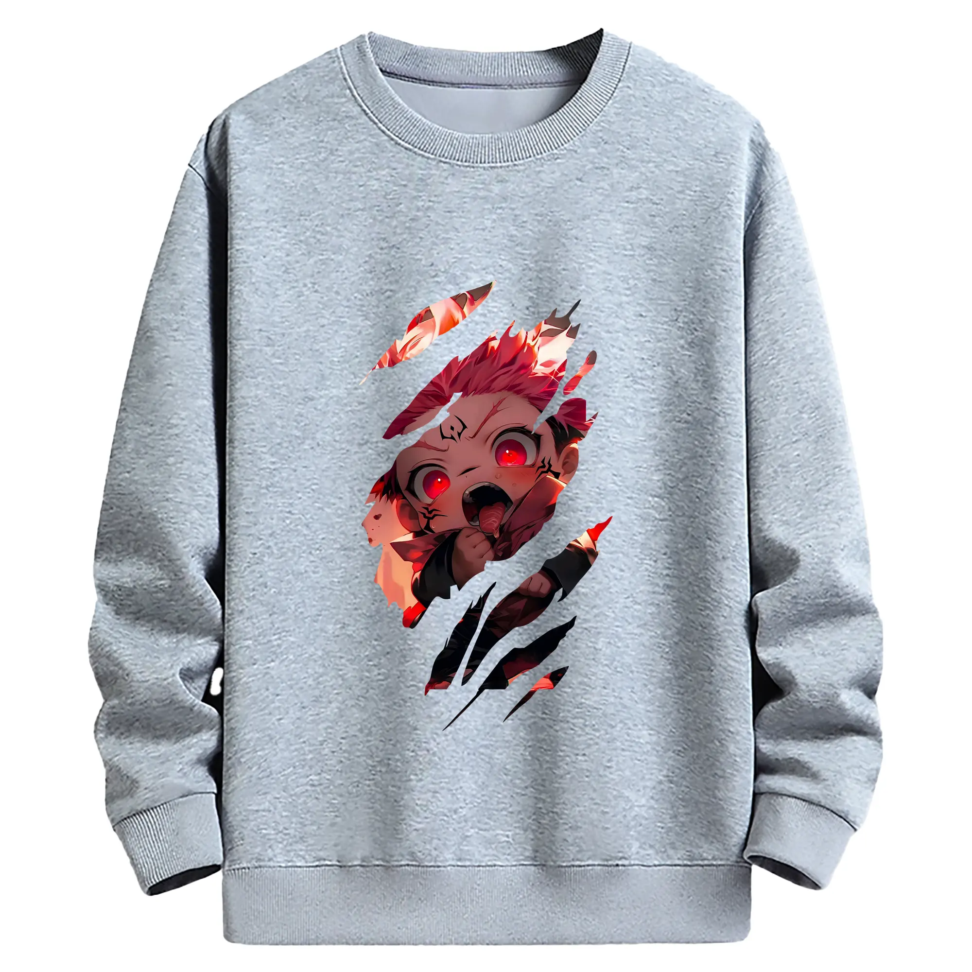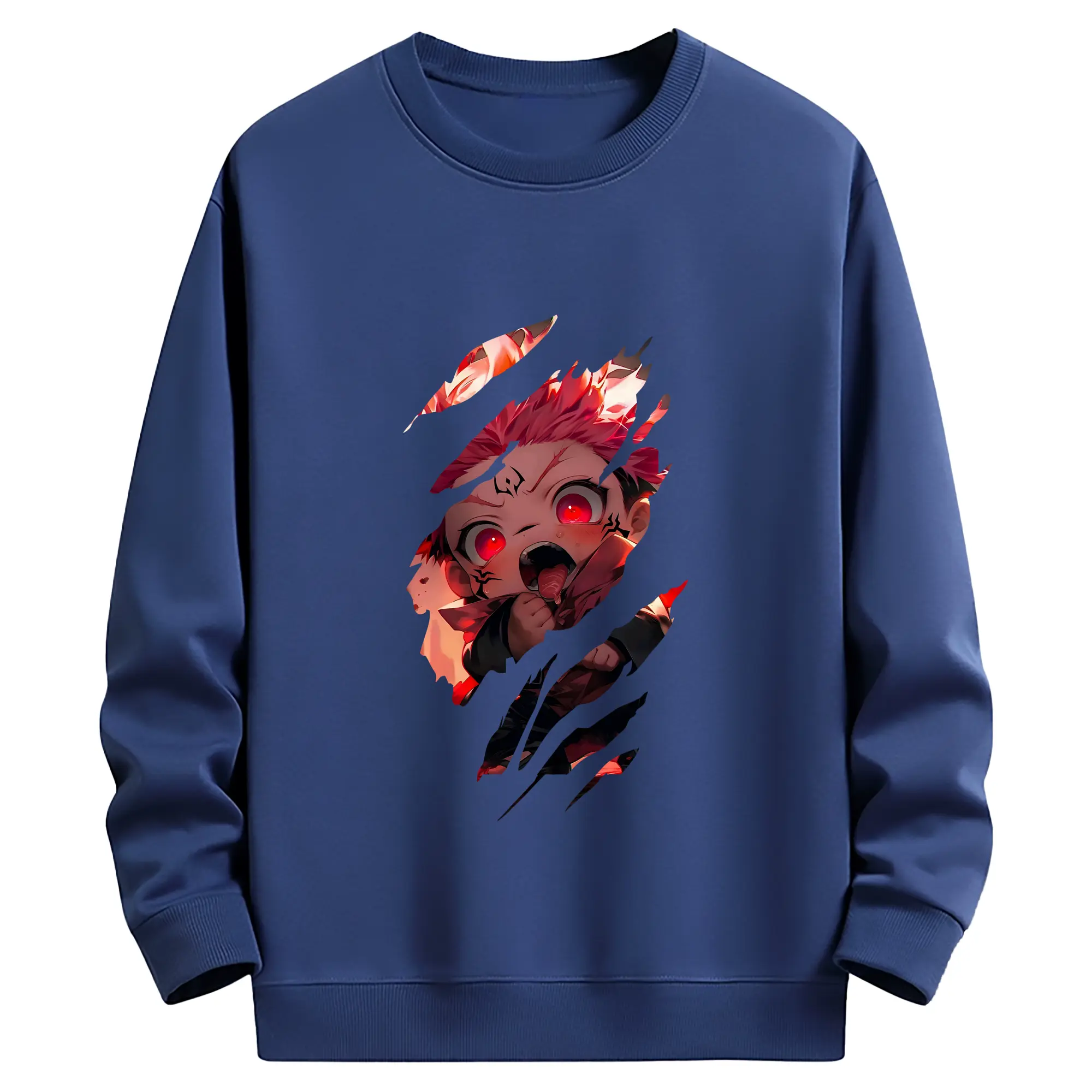 呪術廻戦 グッズ,虎杖 悠仁 - 薄手 クルーネック スウェット 裏毛260g · ポリエステル 春秋向け カジュアル 男女兼用 · トレーナー デイリー スポーツ 散歩に最適