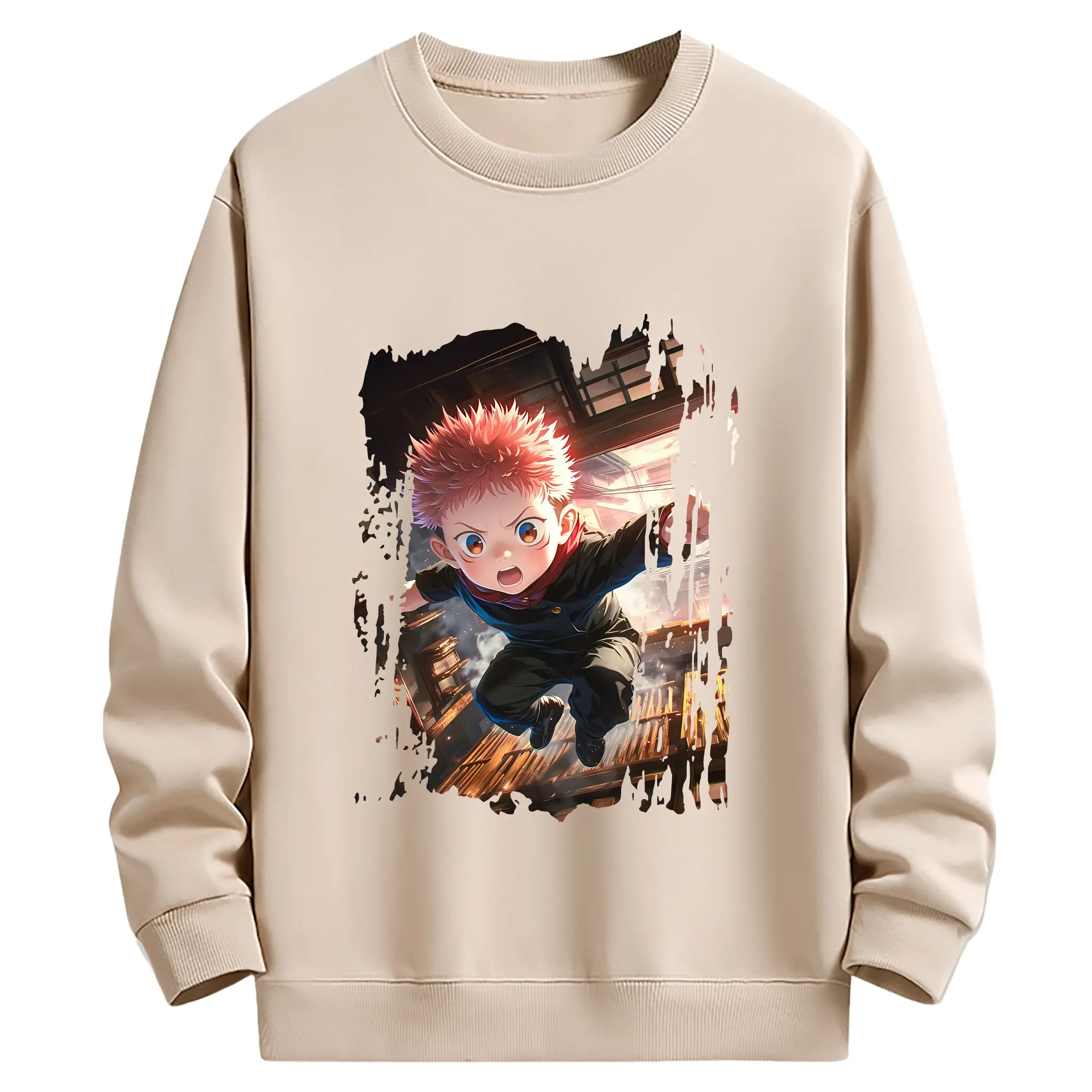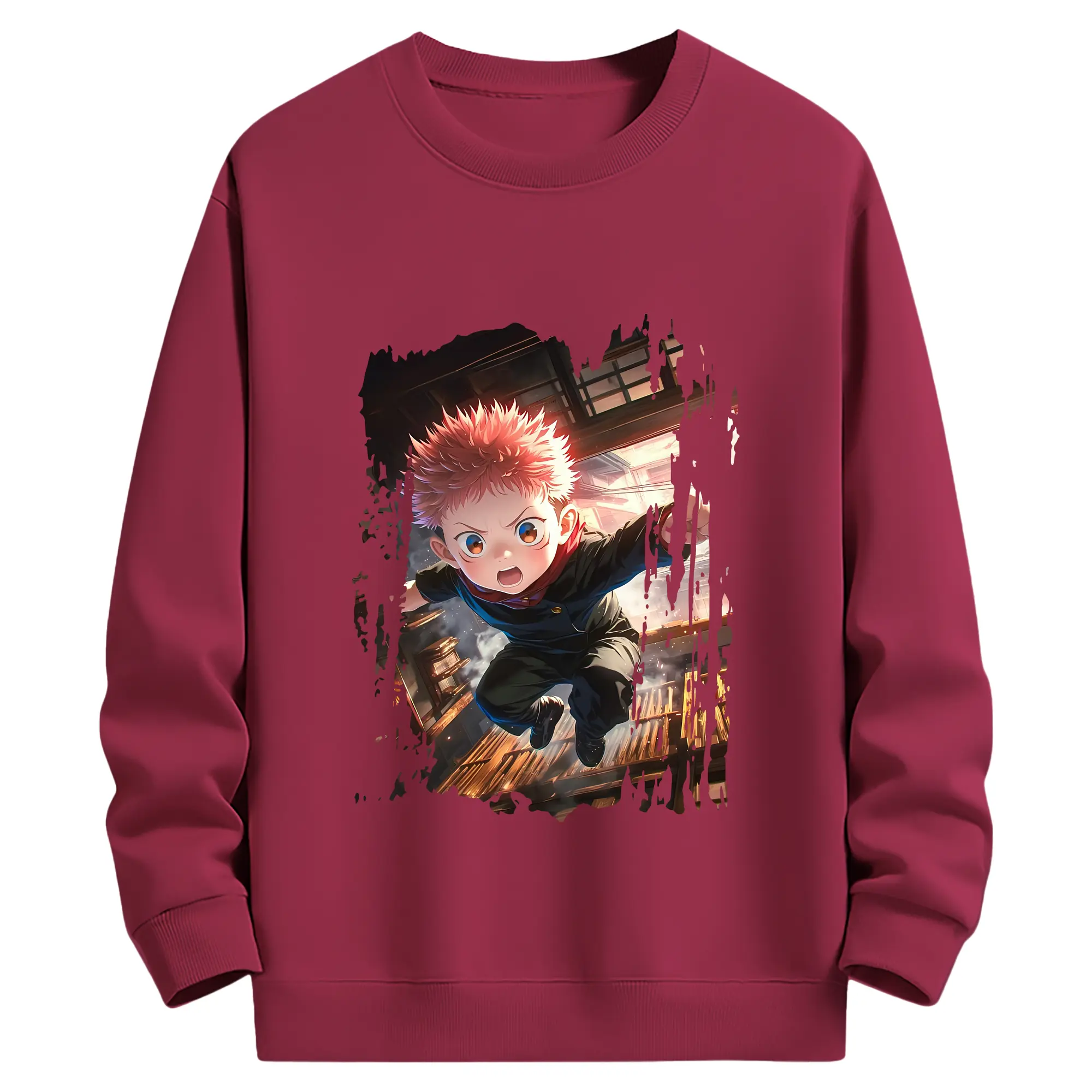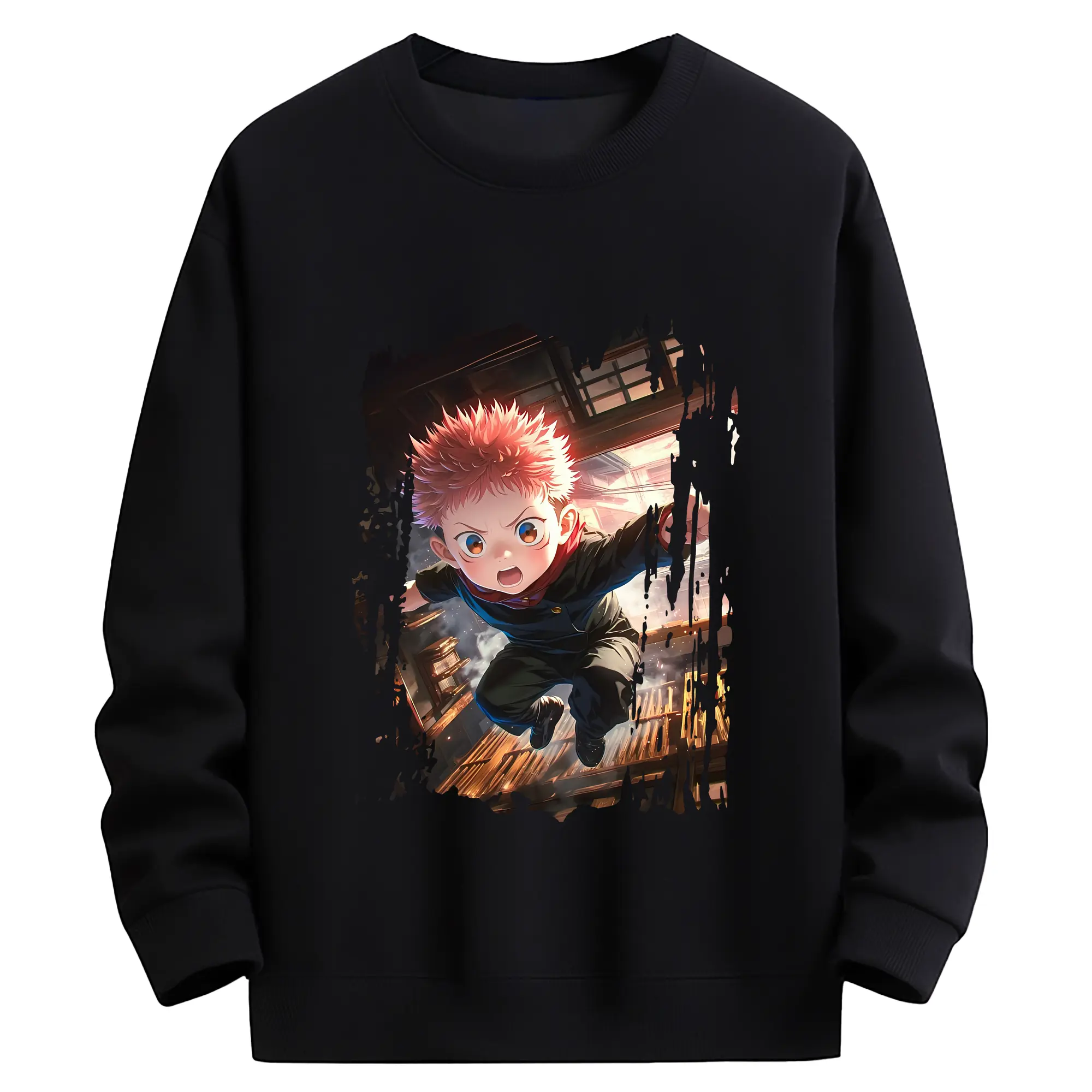 呪術廻戦 グッズ,虎杖 悠仁 - 薄手 クルーネック スウェット 裏毛260g · ポリエステル 春秋向け カジュアル 男女兼用 · トレーナー デイリー スポーツ 散歩に最適