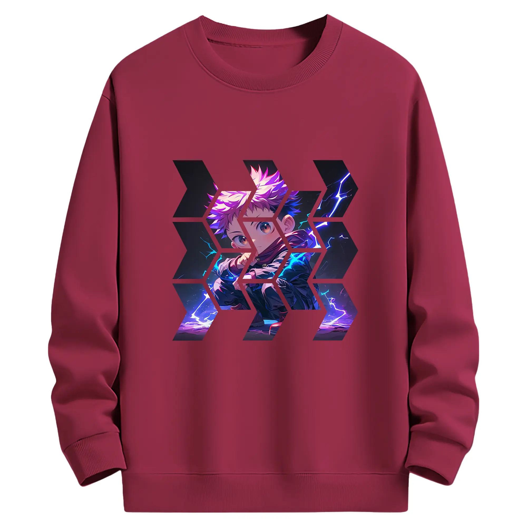 呪術廻戦 グッズ,虎杖 悠仁 - キッズ クルーネックスウェットシャツ ・ フロントプリント ・ 綿80% ポリエステル20% ・ 快適 通学 スポーツ 日常使い お散歩用