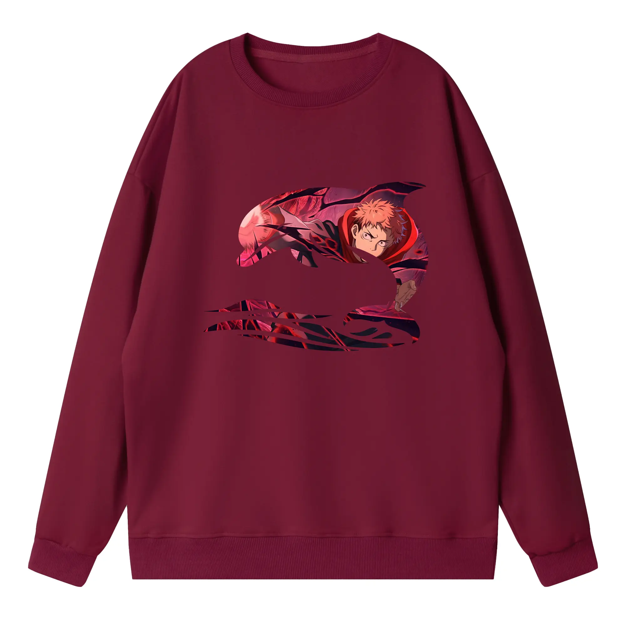 呪術廻戦 グッズ,虎杖 悠仁 - 高品質 クルーネック スウェット ・ コットン59% ポリエステル41% ・ ユニセックス 長袖 トレーナー ・ カジュアル デイリー スポーツ 散歩用