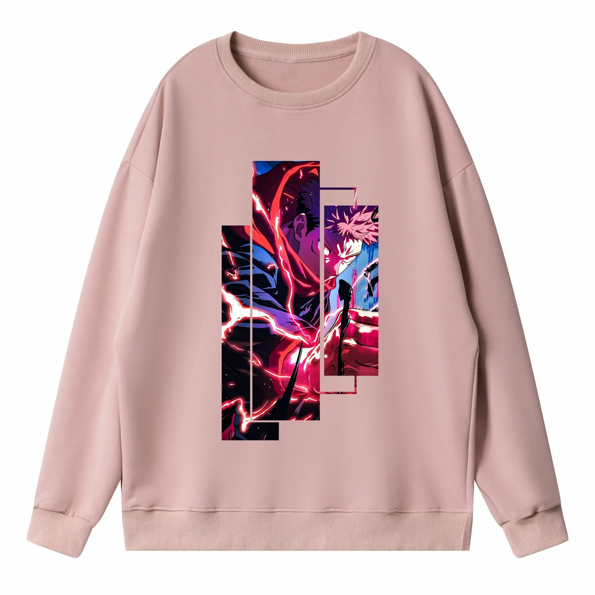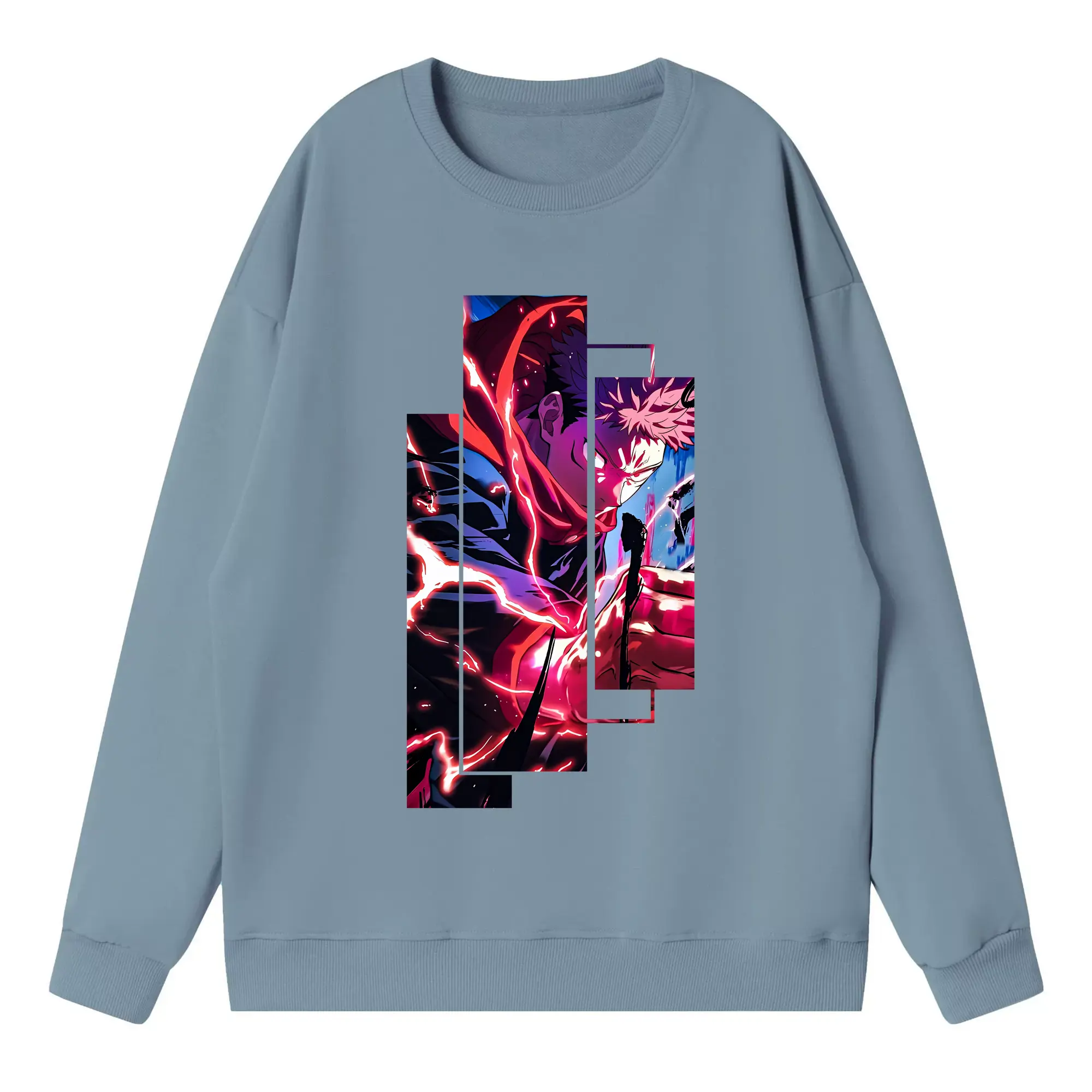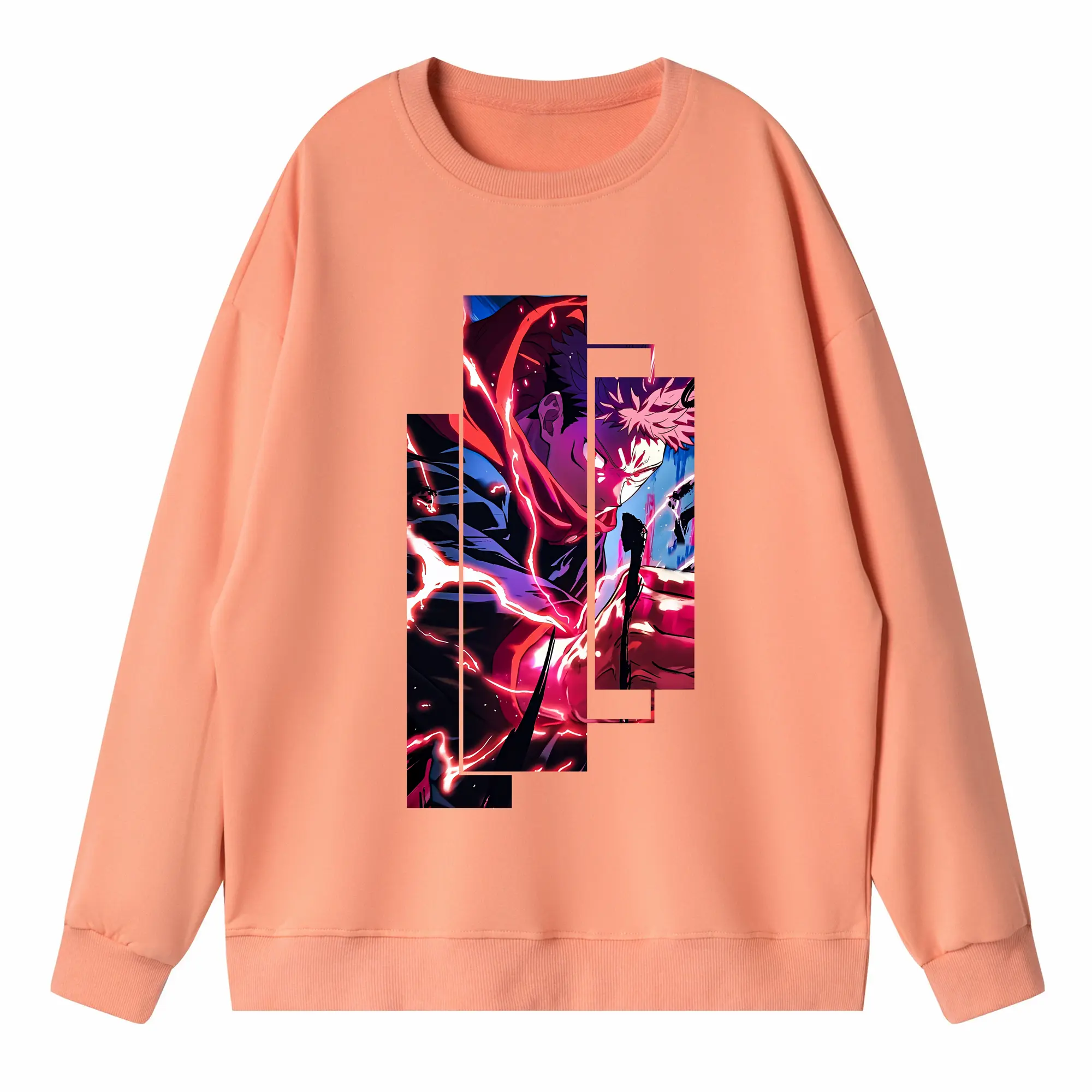 呪術廻戦 グッズ,虎杖 悠仁 - 高品質 クルーネック スウェット ・ コットン59% ポリエステル41% ・ ユニセックス 長袖 トレーナー ・ カジュアル デイリー スポーツ 散歩用