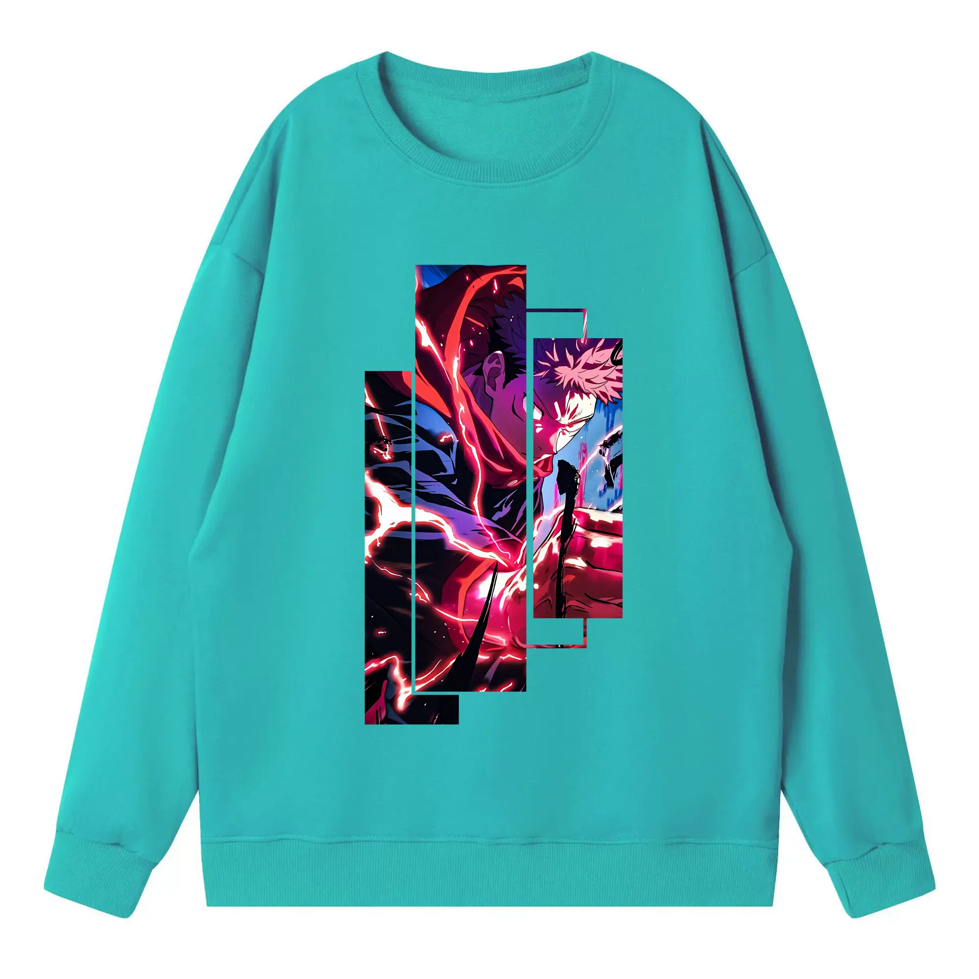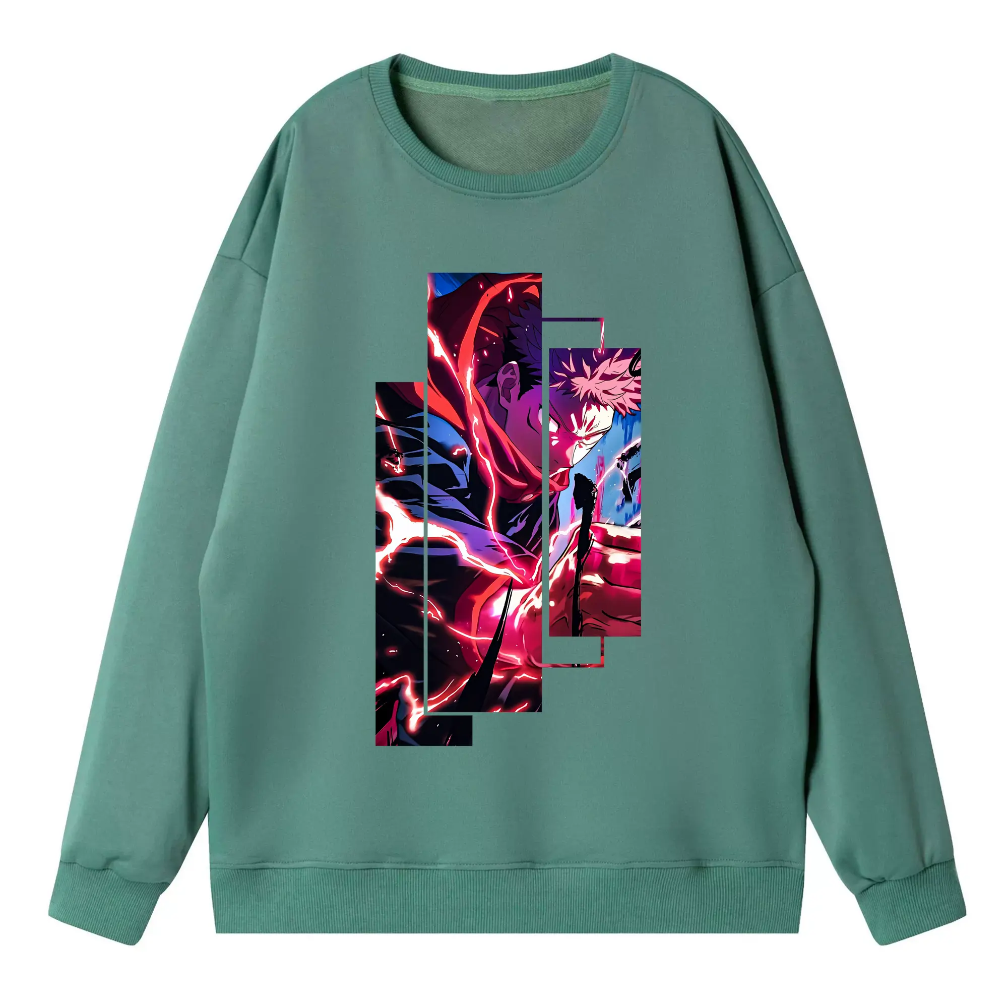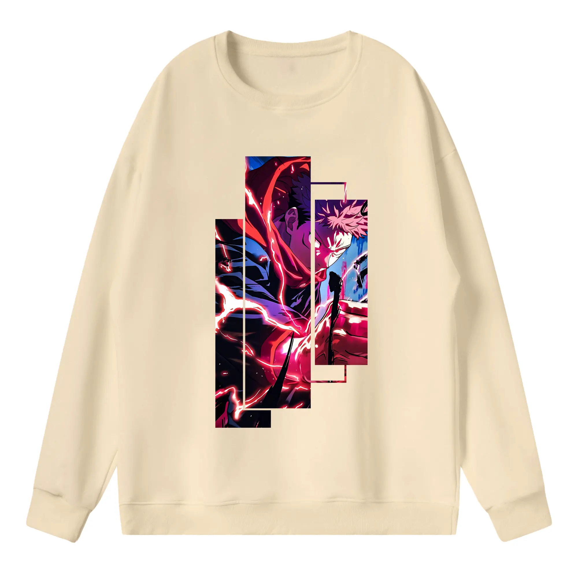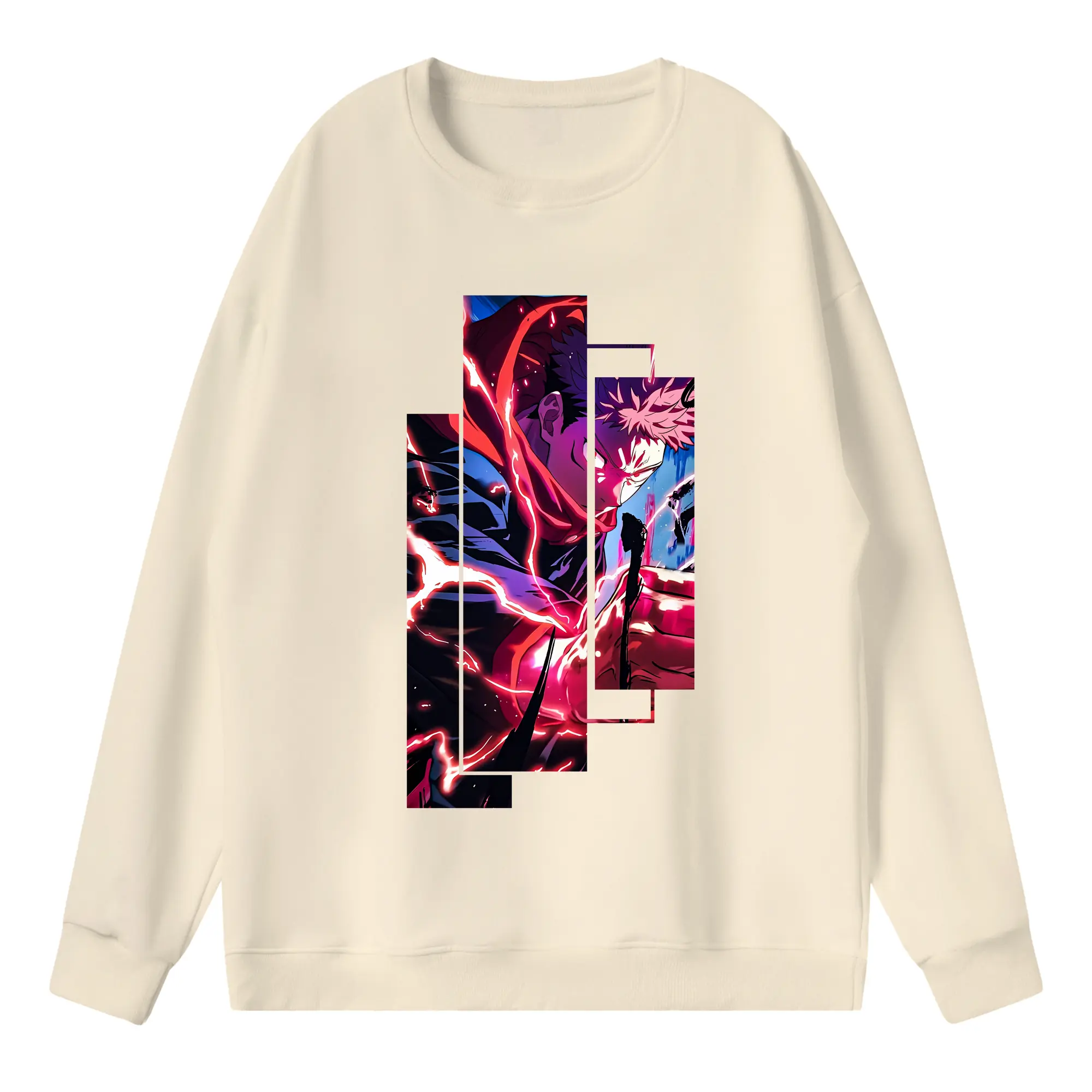 呪術廻戦 グッズ,虎杖 悠仁 - 高品質 クルーネック スウェット ・ コットン59% ポリエステル41% ・ ユニセックス 長袖 トレーナー ・ カジュアル デイリー スポーツ 散歩用