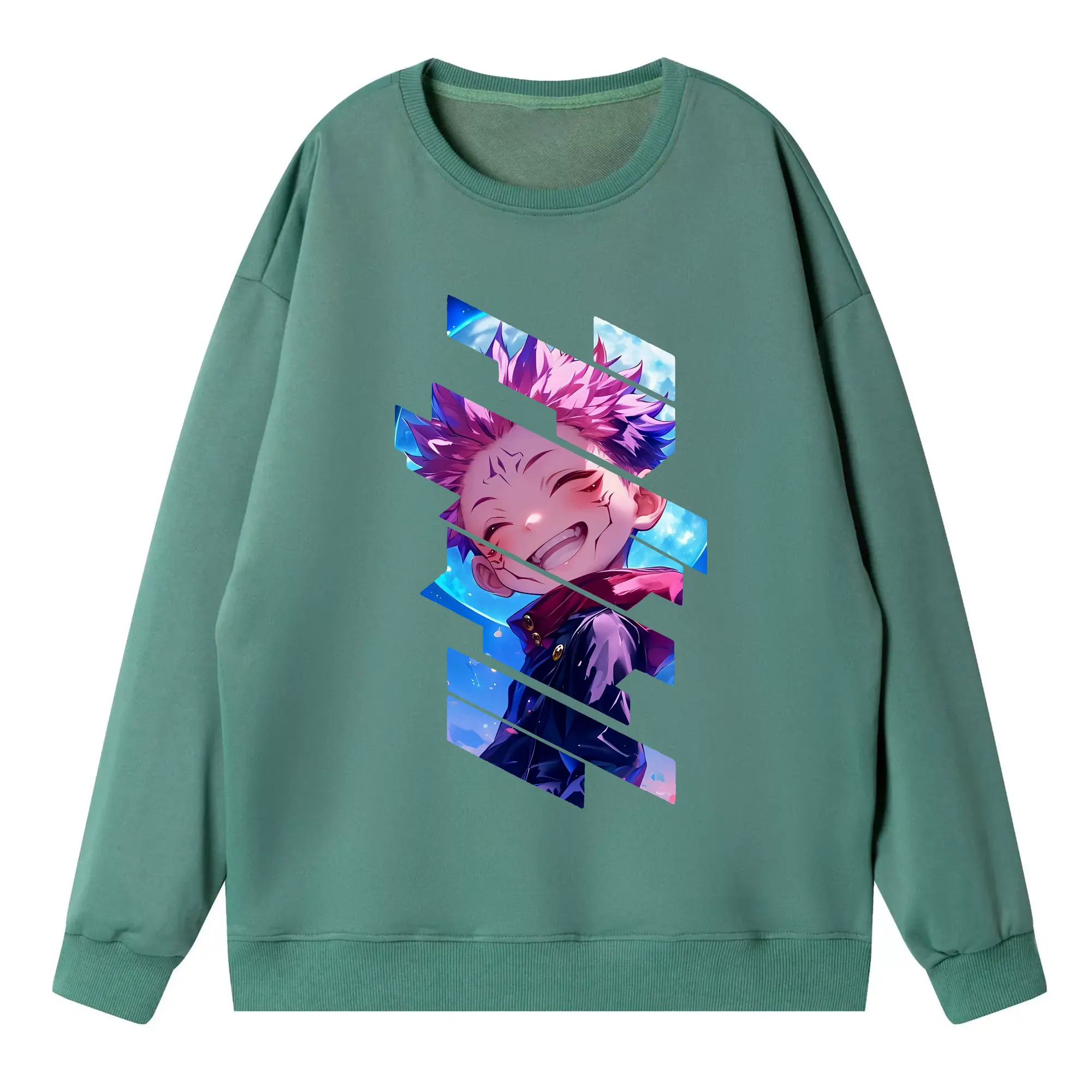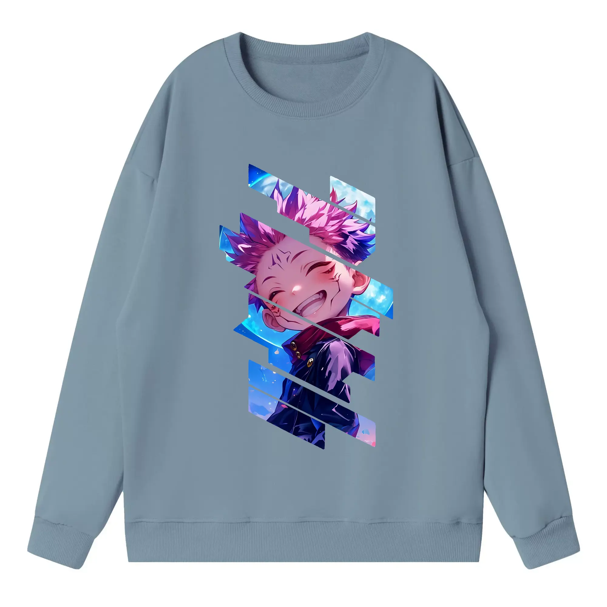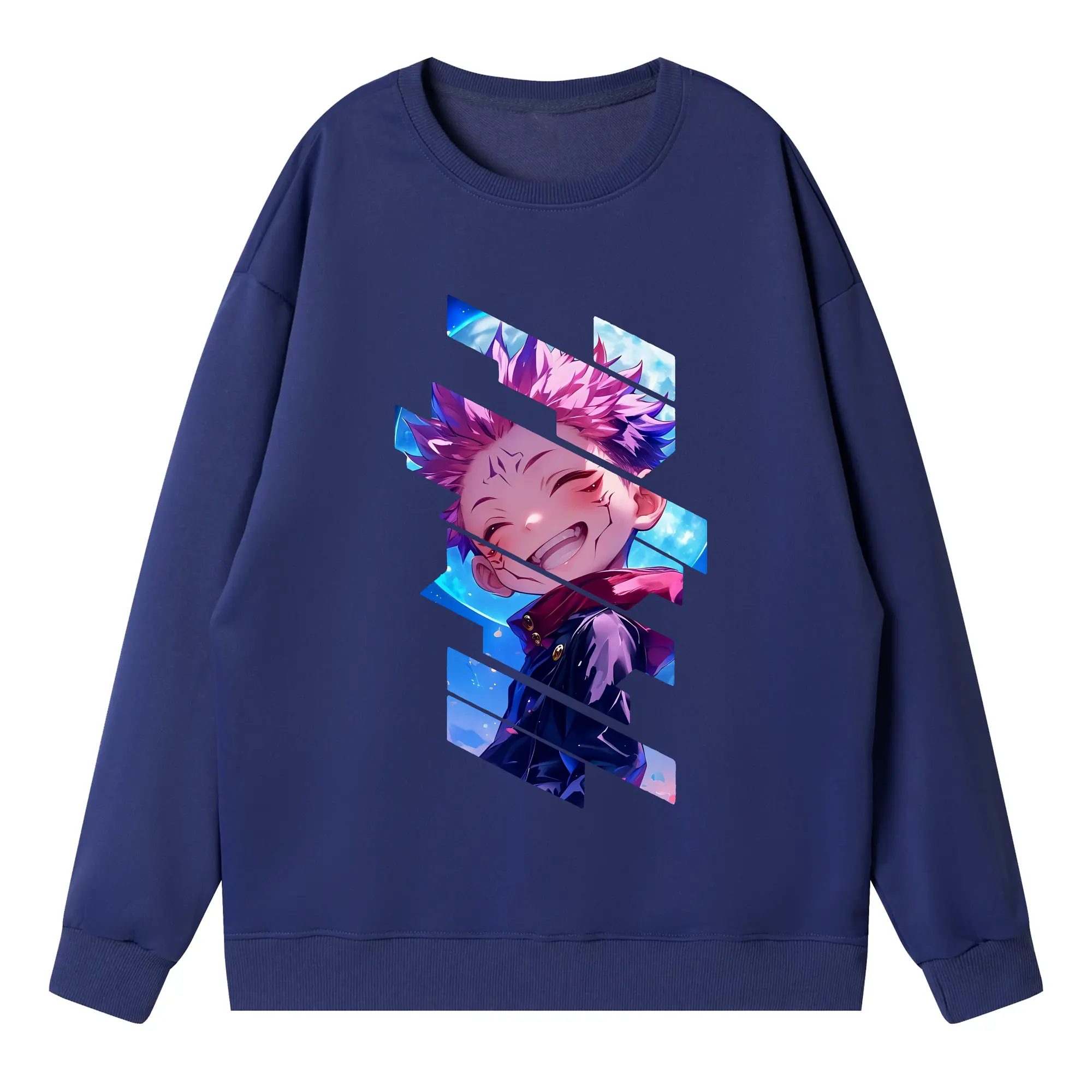 呪術廻戦 グッズ,虎杖 悠仁 - 高品質 クルーネック スウェット ・ コットン59% ポリエステル41% ・ ユニセックス 長袖 トレーナー ・ カジュアル デイリー スポーツ 散歩用