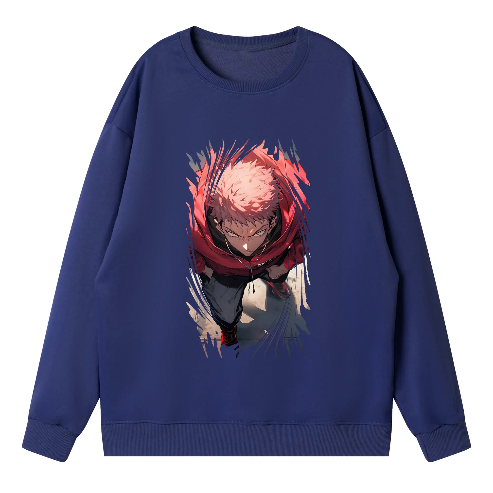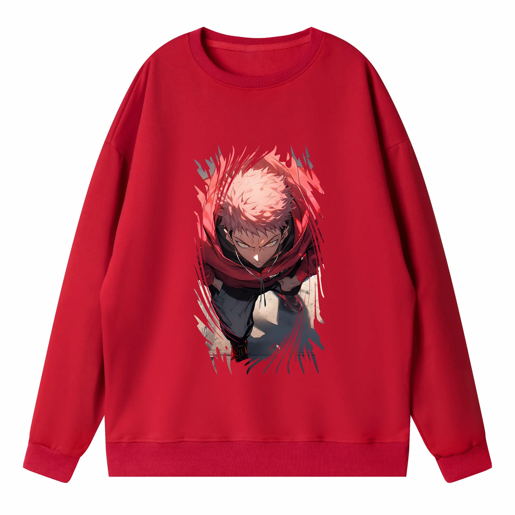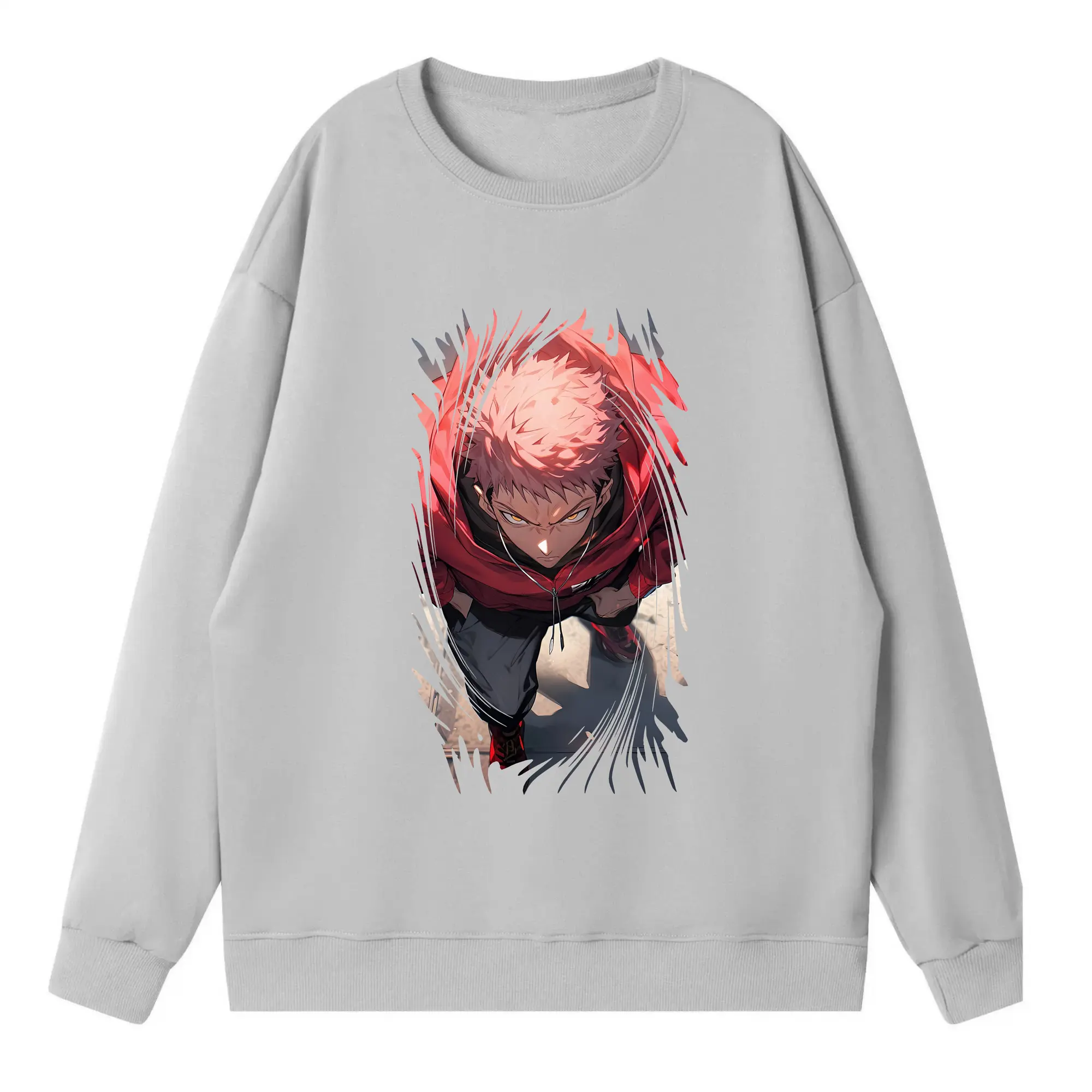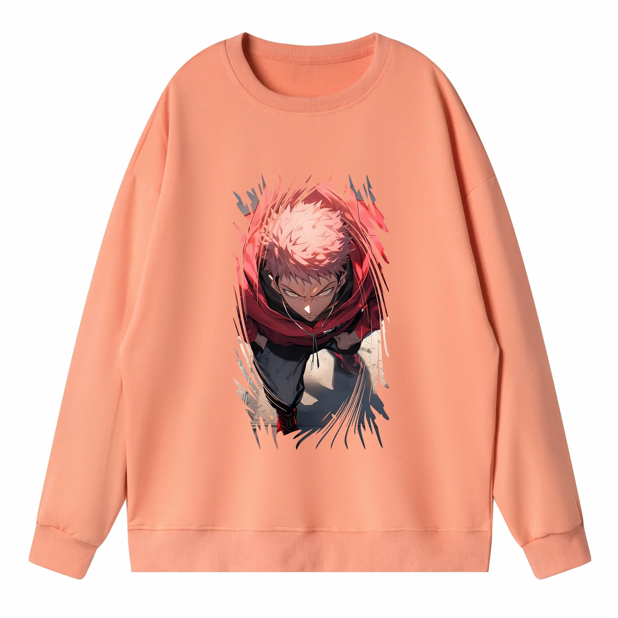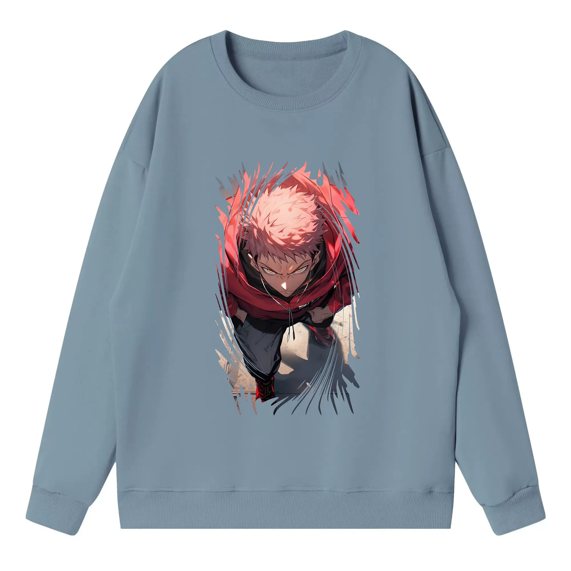 呪術廻戦 グッズ,虎杖 悠仁 - 高品質 クルーネック スウェット ・ コットン59% ポリエステル41% ・ ユニセックス 長袖 トレーナー ・ カジュアル デイリー スポーツ 散歩用