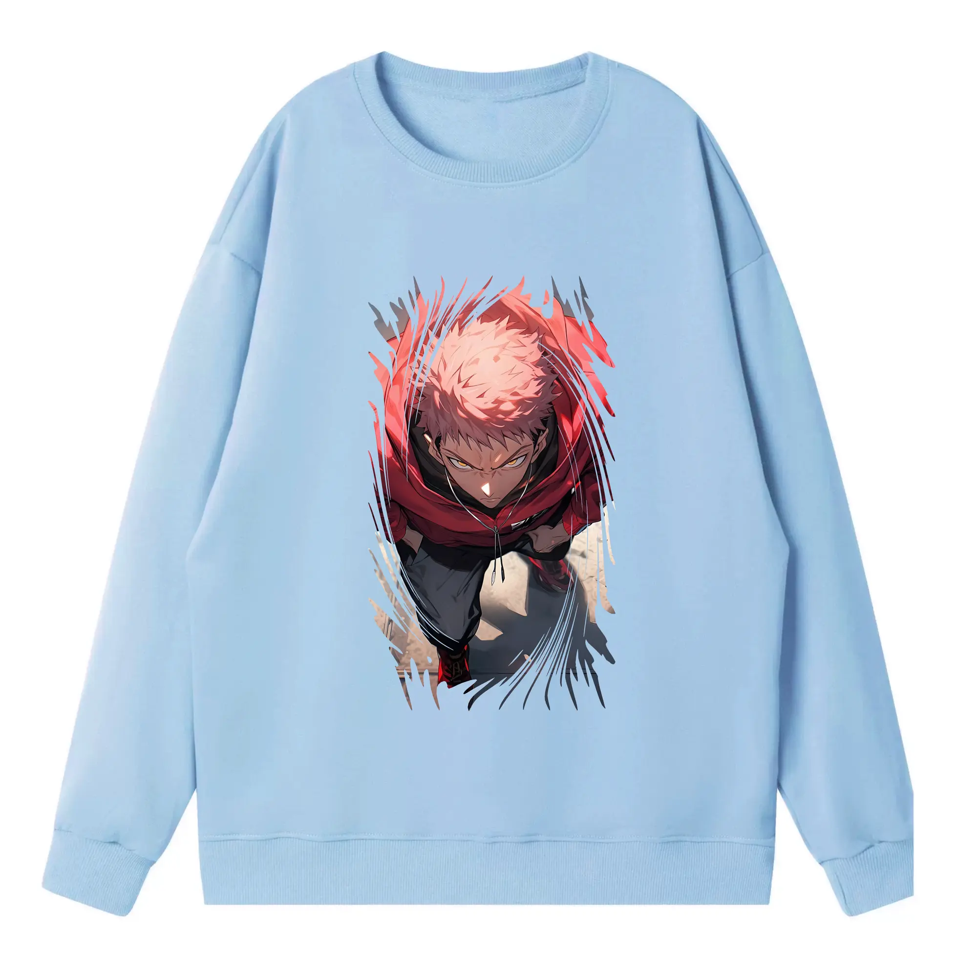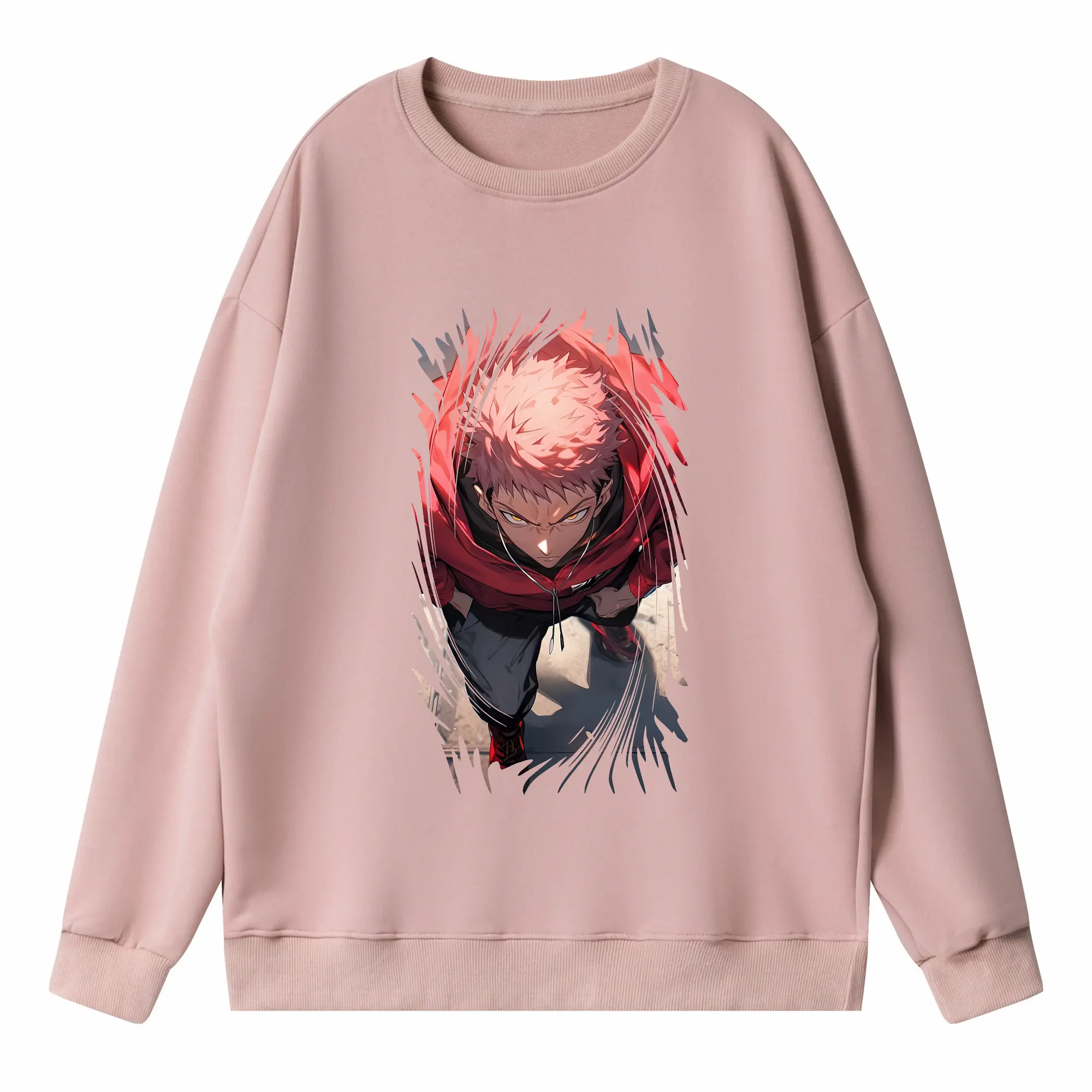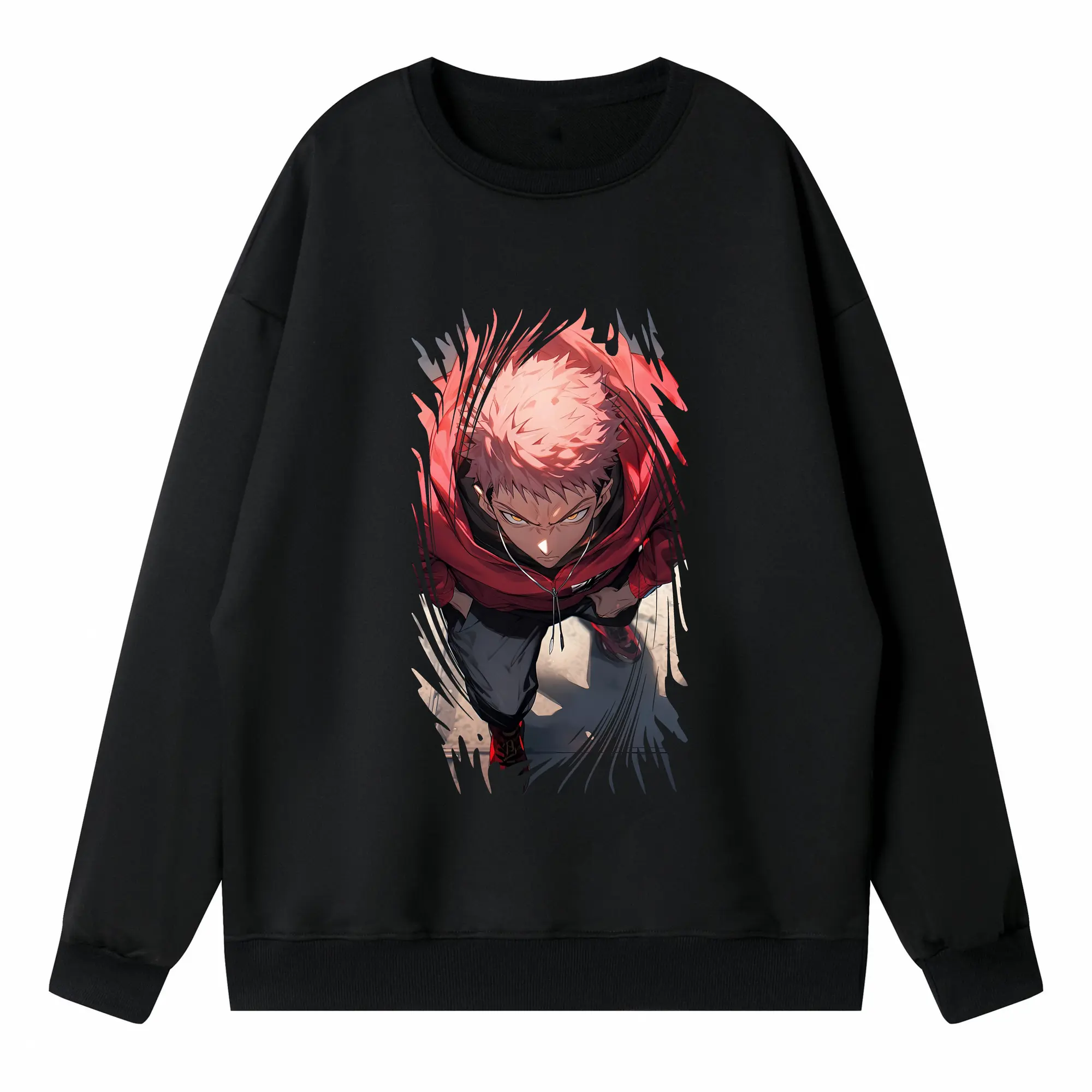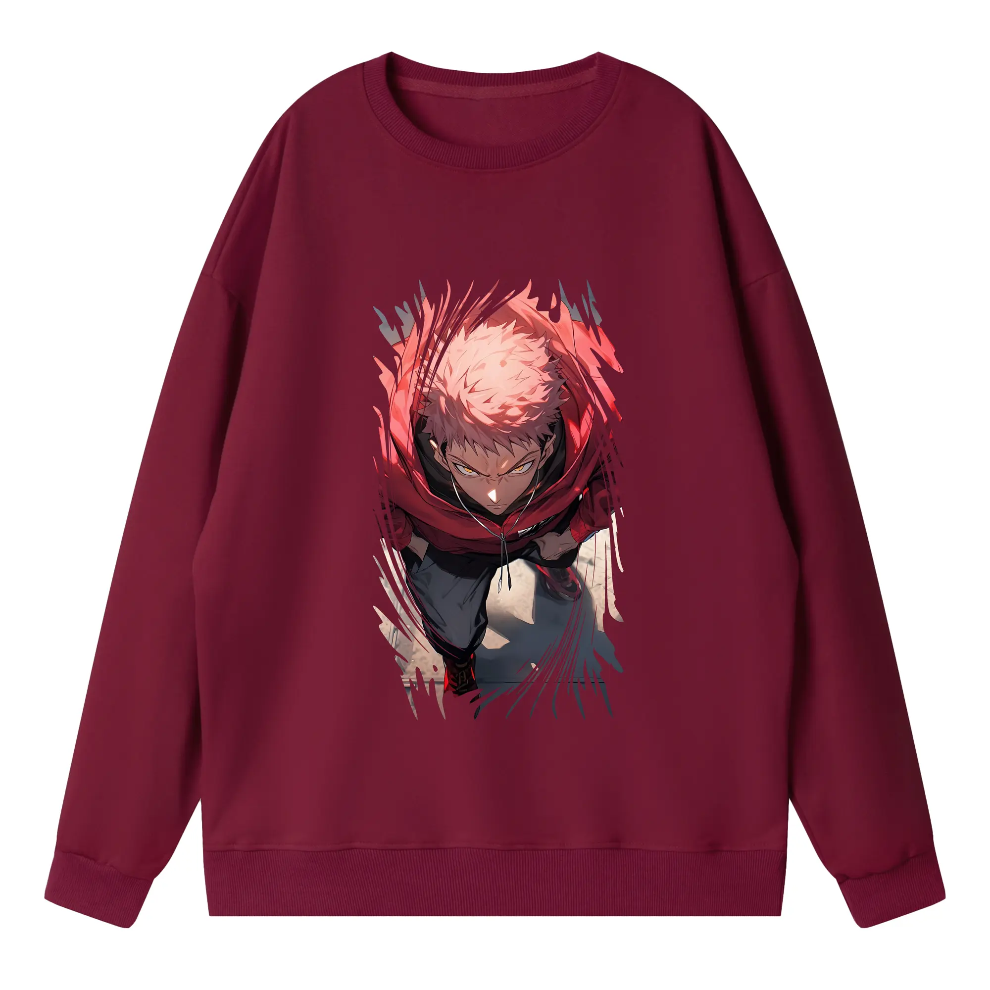 呪術廻戦 グッズ,虎杖 悠仁 - 高品質 クルーネック スウェット ・ コットン59% ポリエステル41% ・ ユニセックス 長袖 トレーナー ・ カジュアル デイリー スポーツ 散歩用