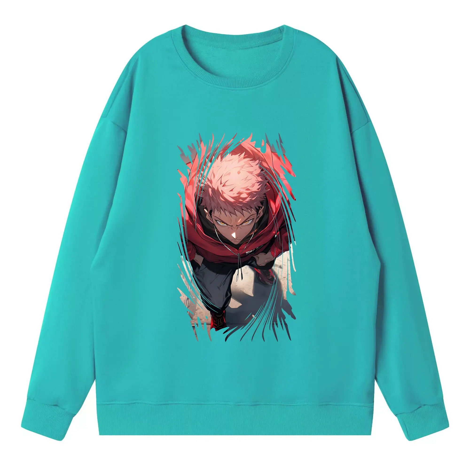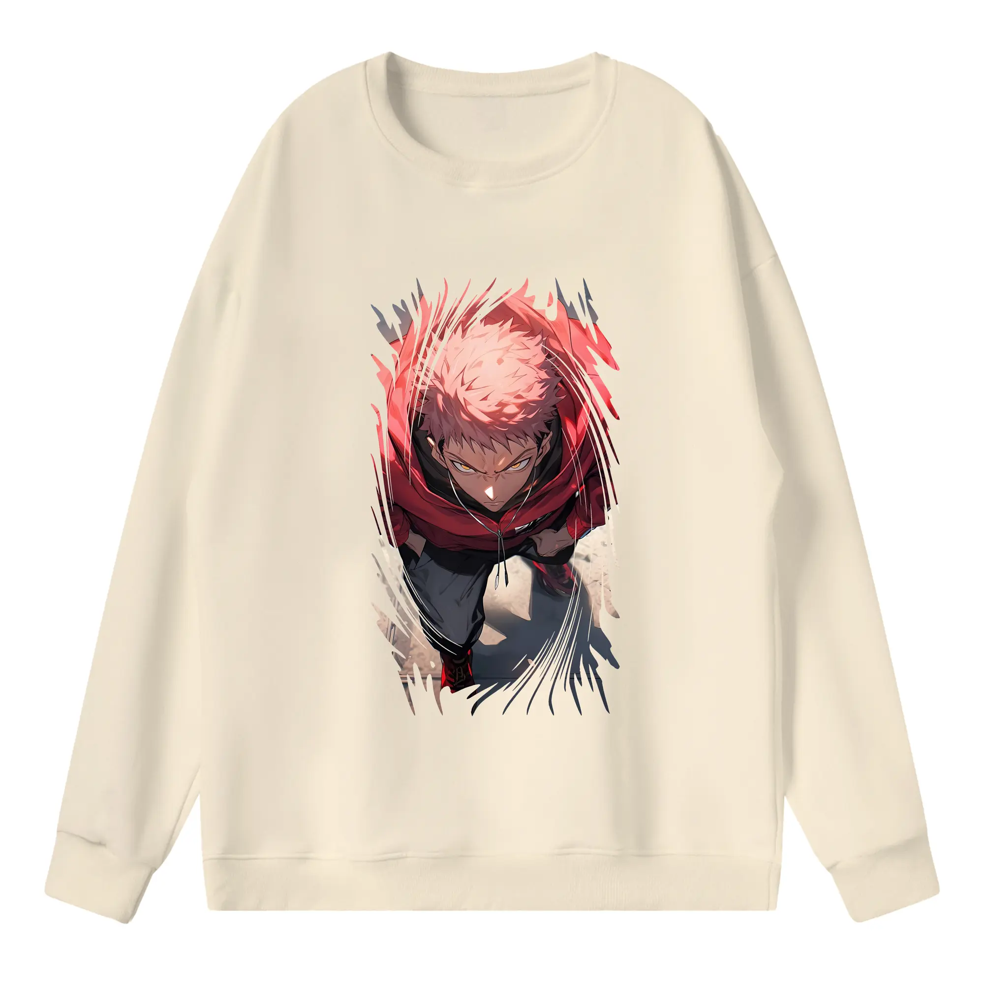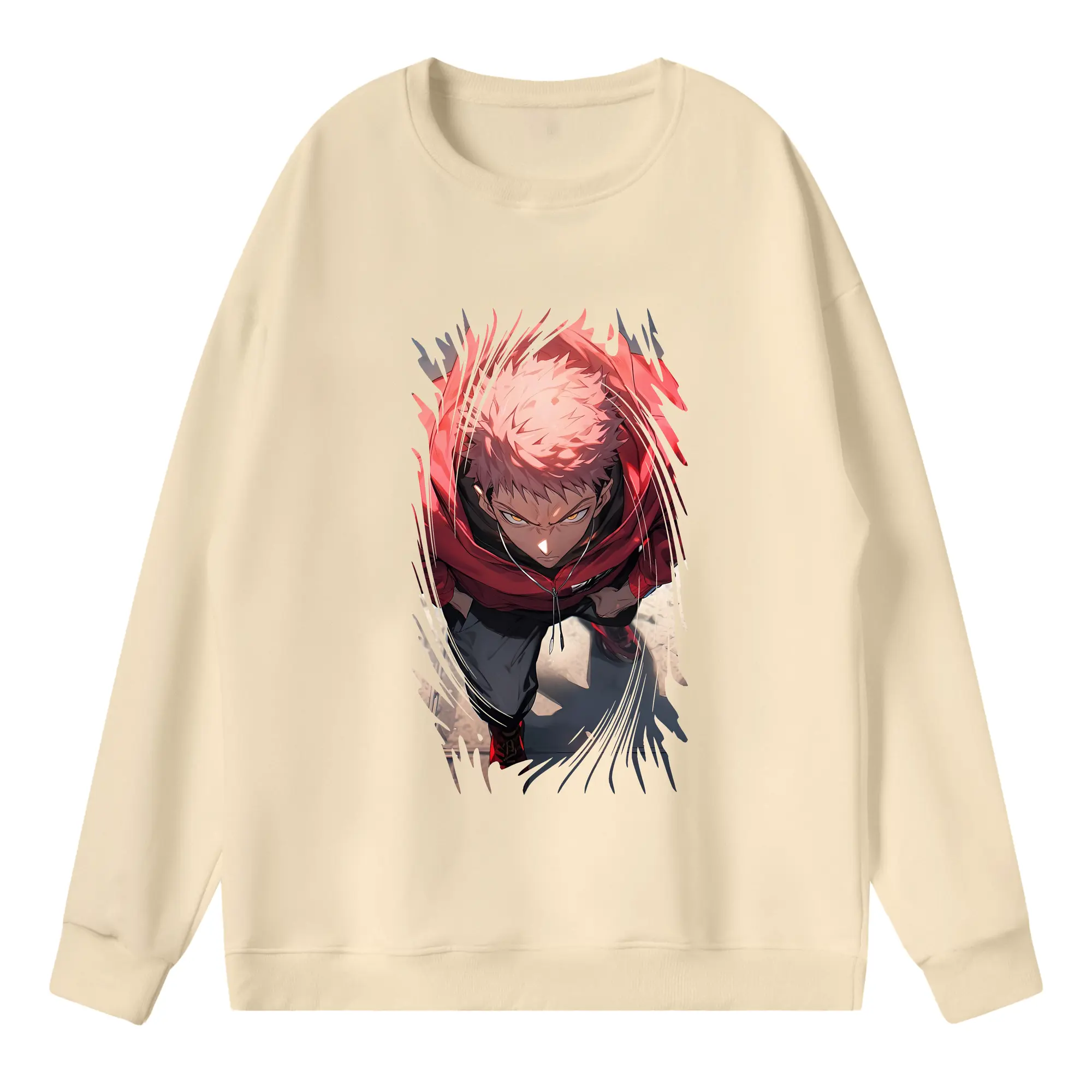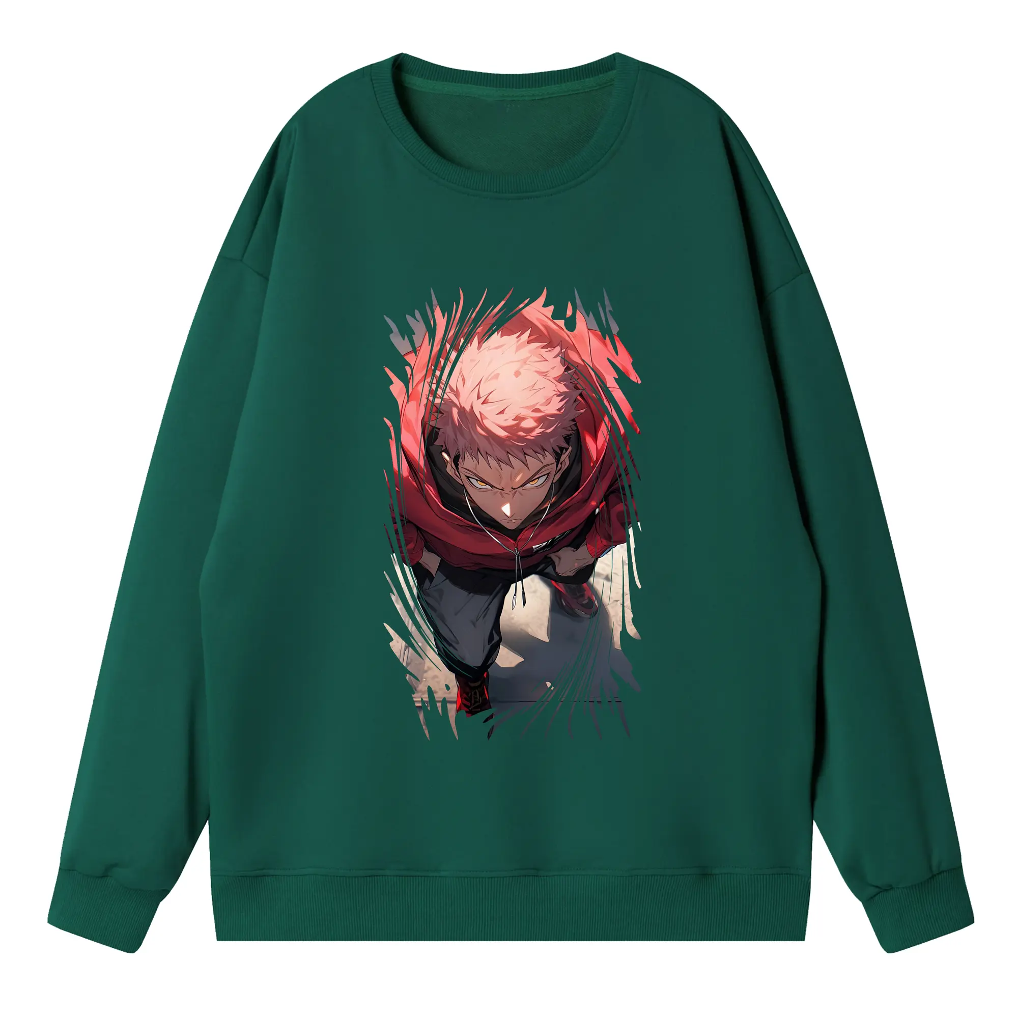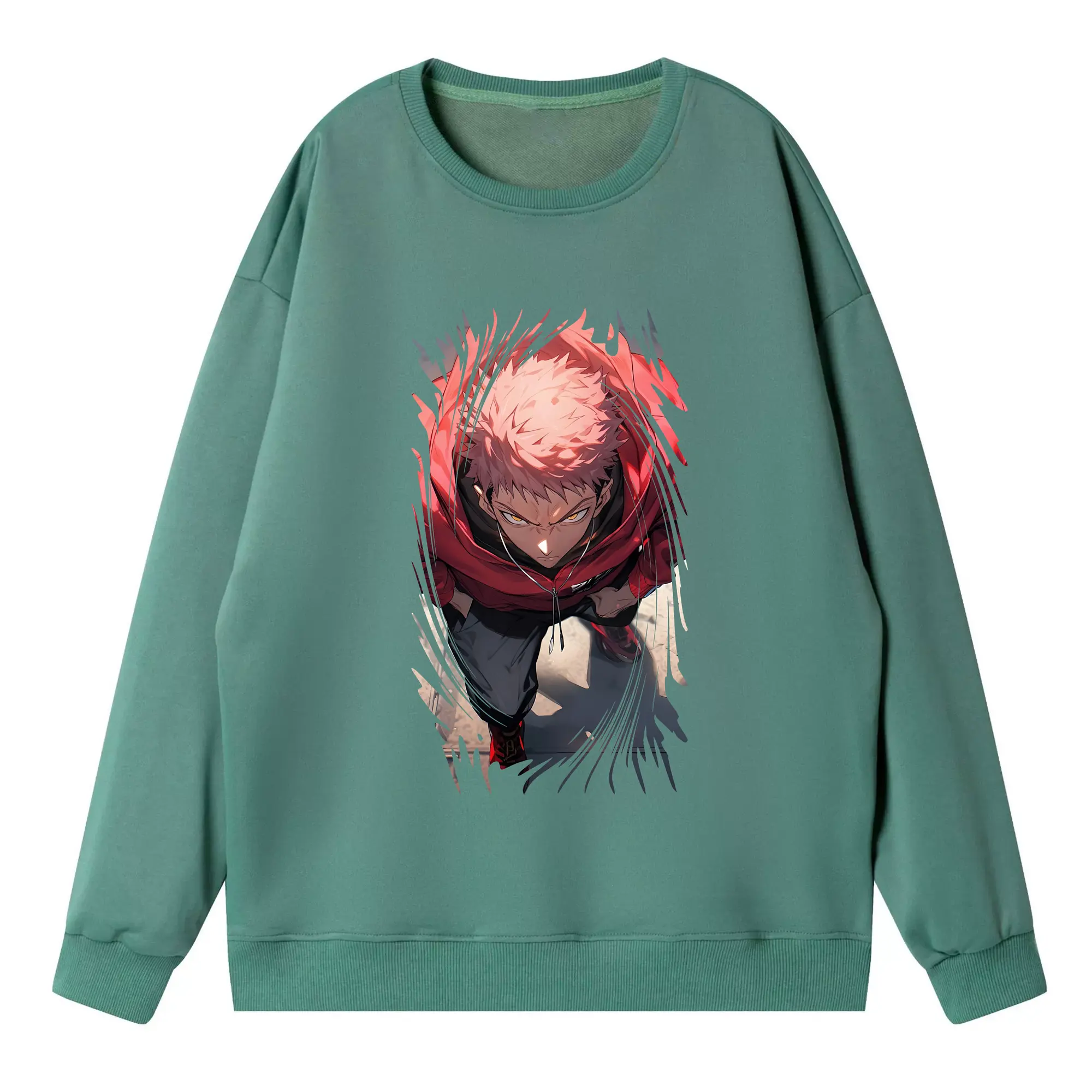 呪術廻戦 グッズ,虎杖 悠仁 - 高品質 クルーネック スウェット ・ コットン59% ポリエステル41% ・ ユニセックス 長袖 トレーナー ・ カジュアル デイリー スポーツ 散歩用