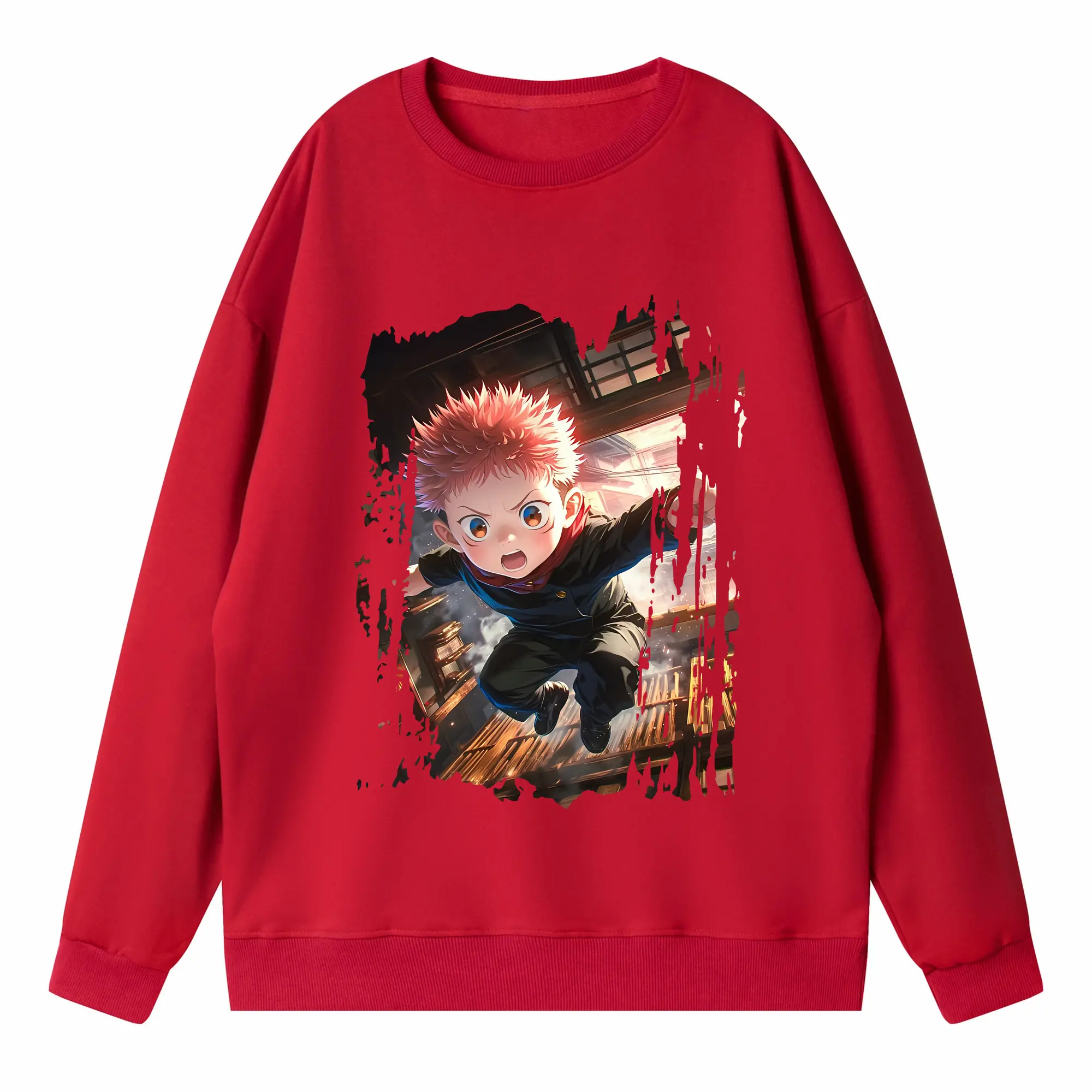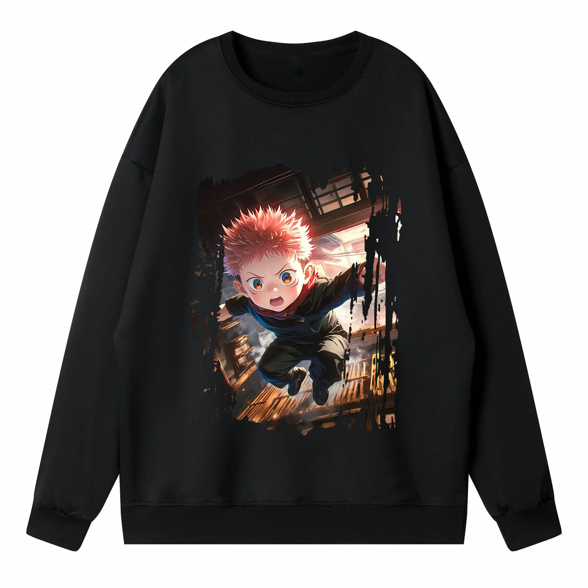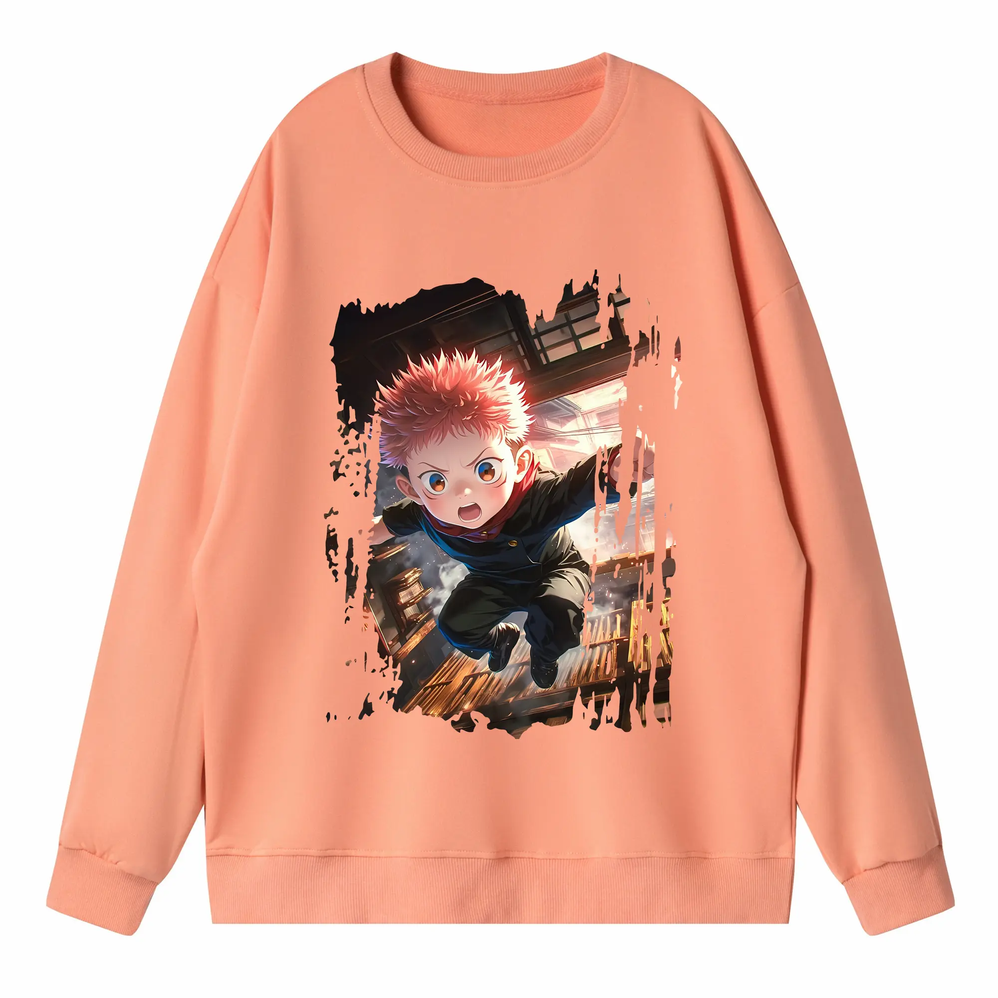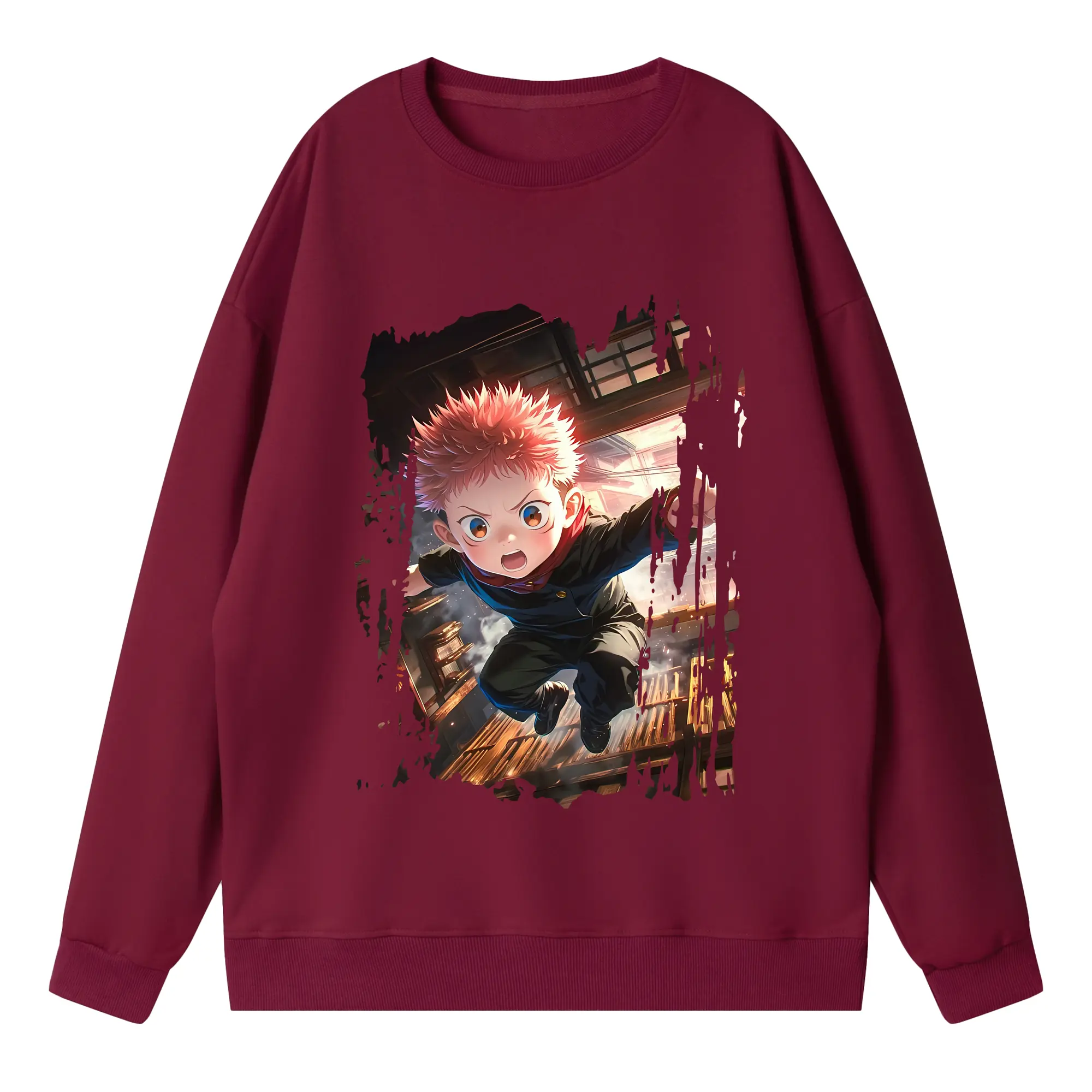 呪術廻戦 グッズ,虎杖 悠仁 - 高品質 クルーネック スウェット ・ コットン59% ポリエステル41% ・ ユニセックス 長袖 トレーナー ・ カジュアル デイリー スポーツ 散歩用