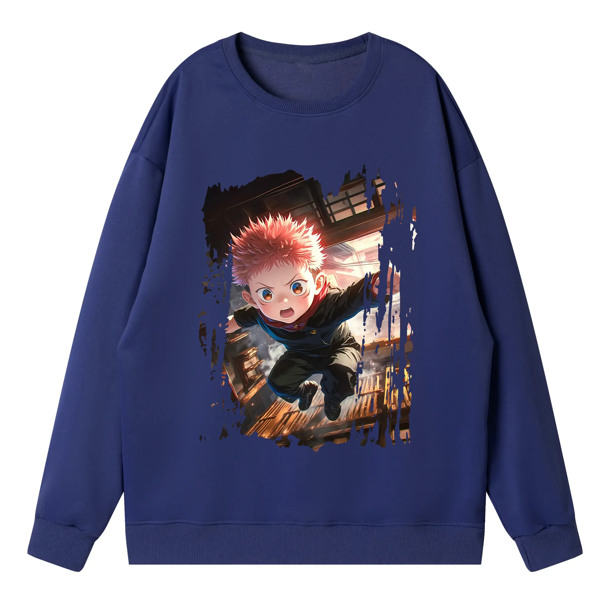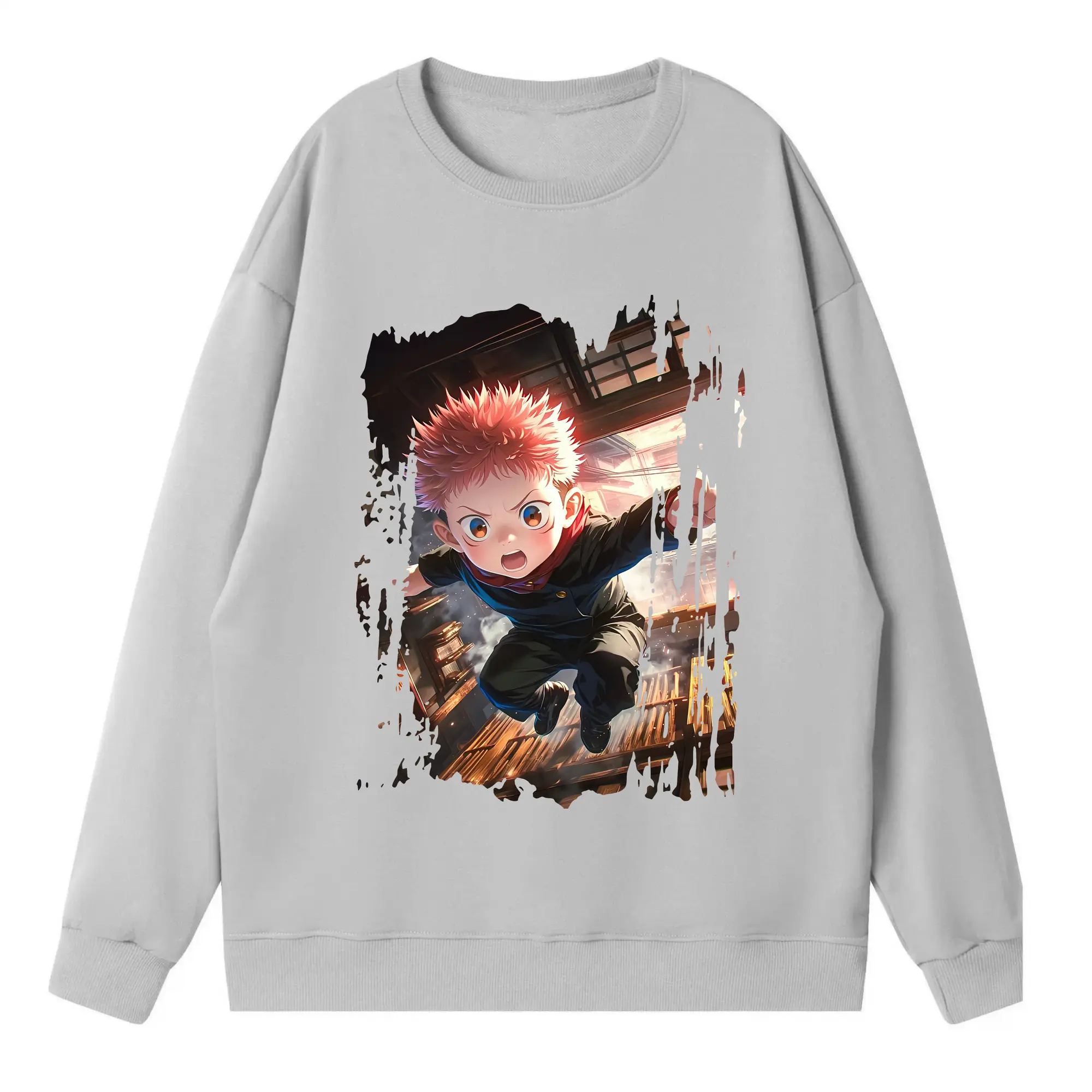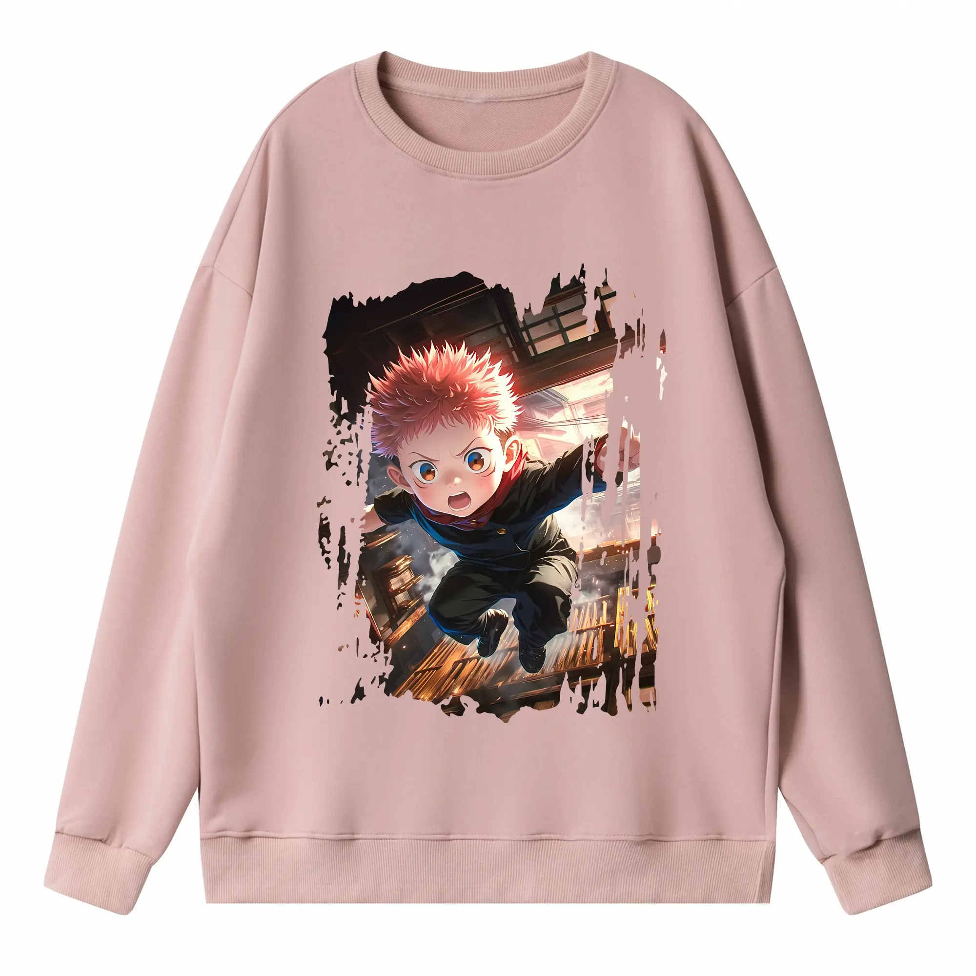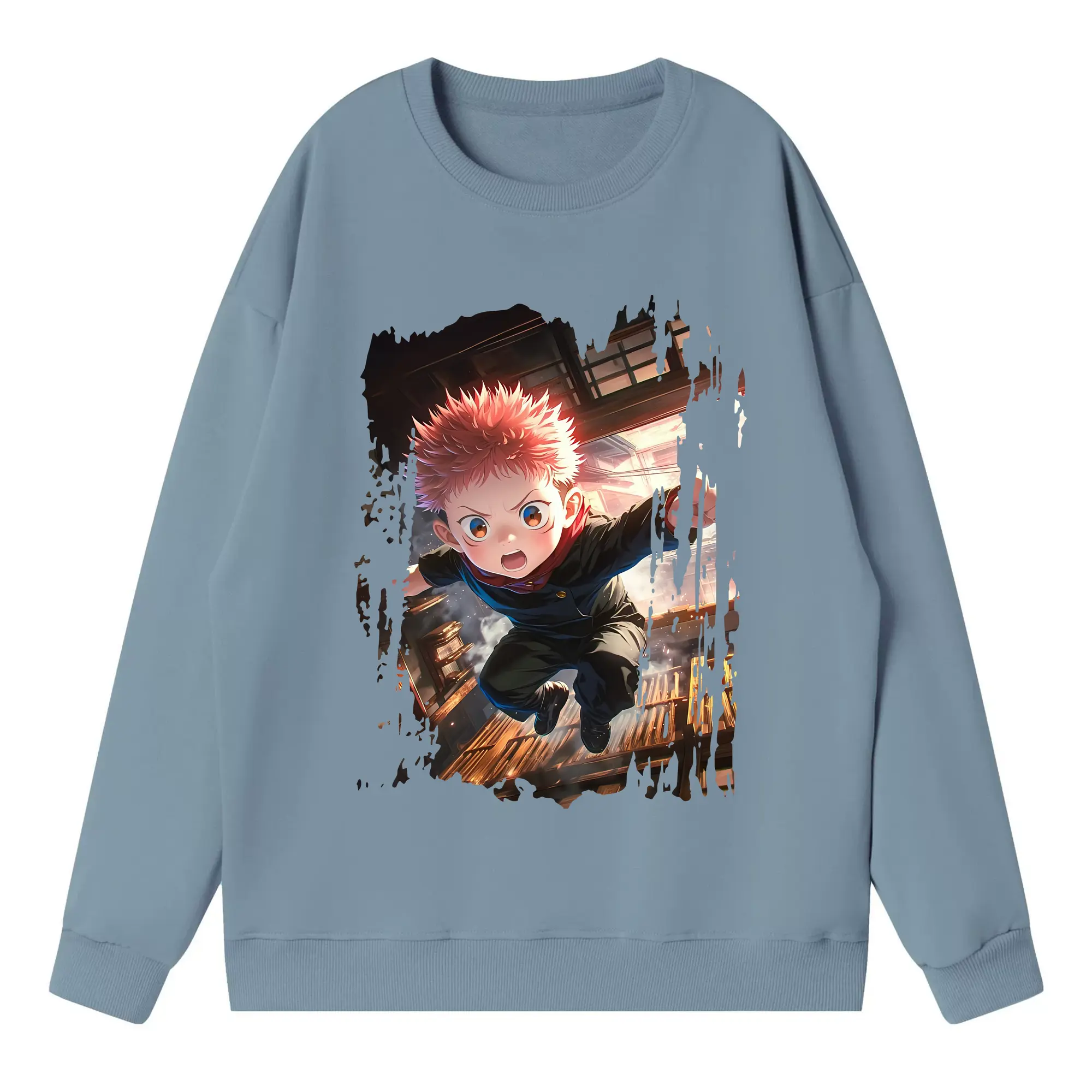 呪術廻戦 グッズ,虎杖 悠仁 - 高品質 クルーネック スウェット ・ コットン59% ポリエステル41% ・ ユニセックス 長袖 トレーナー ・ カジュアル デイリー スポーツ 散歩用