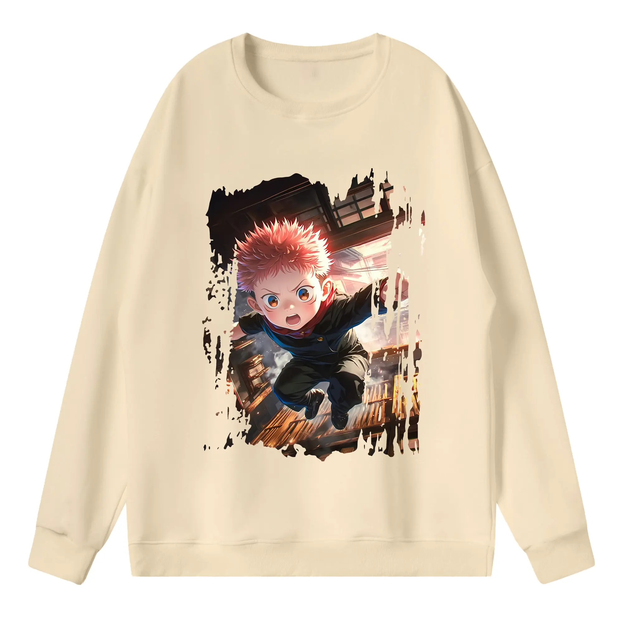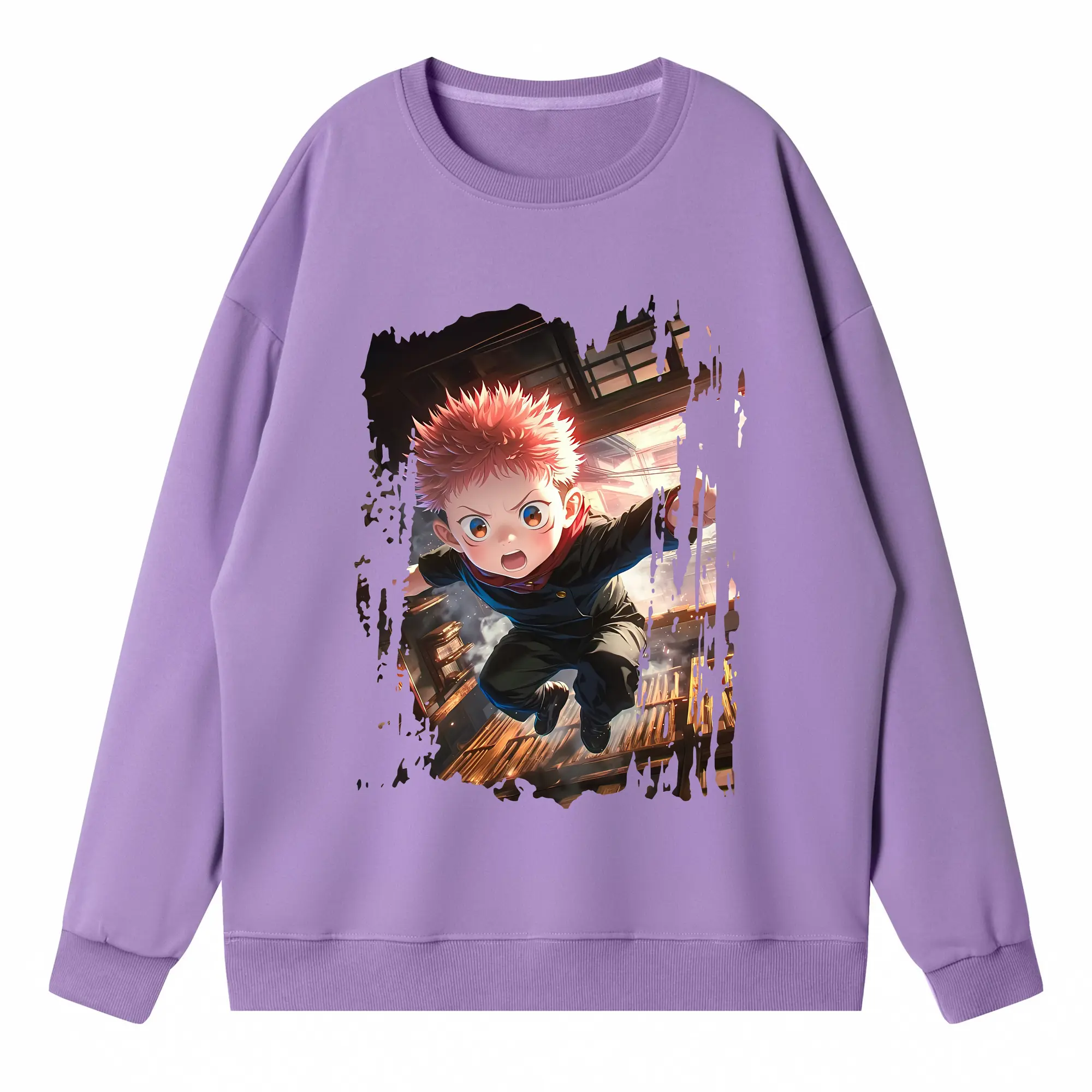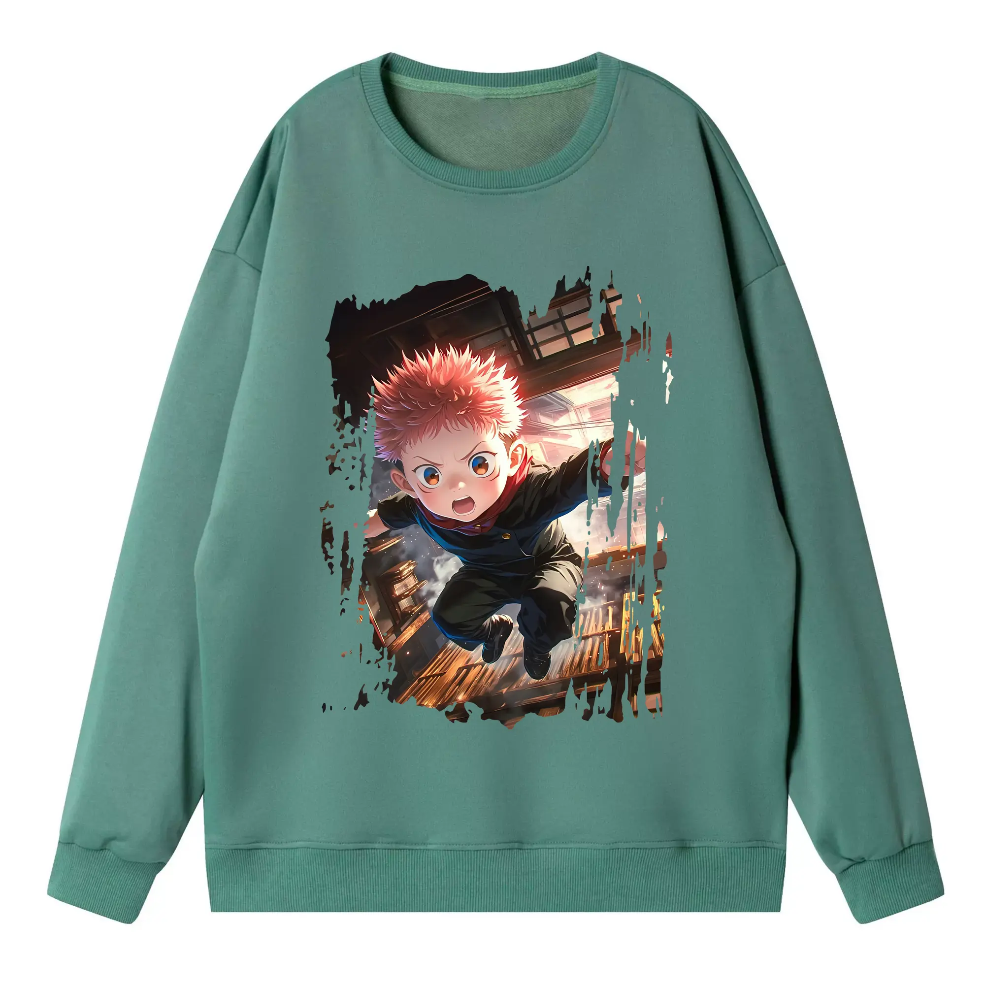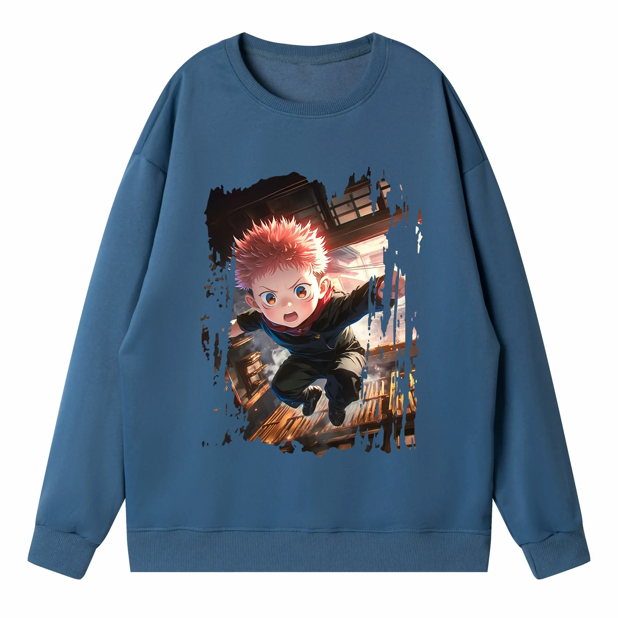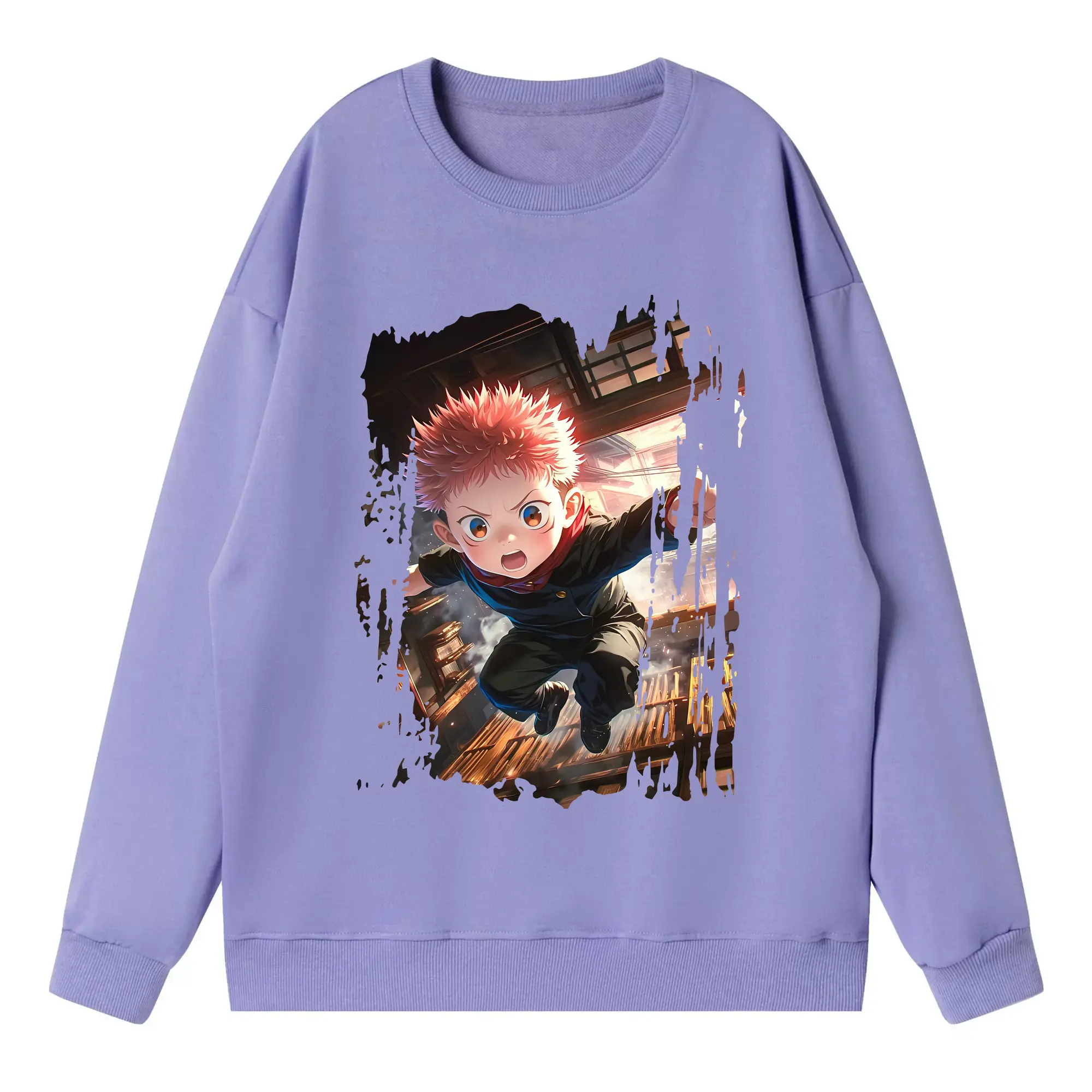 呪術廻戦 グッズ,虎杖 悠仁 - 高品質 クルーネック スウェット ・ コットン59% ポリエステル41% ・ ユニセックス 長袖 トレーナー ・ カジュアル デイリー スポーツ 散歩用