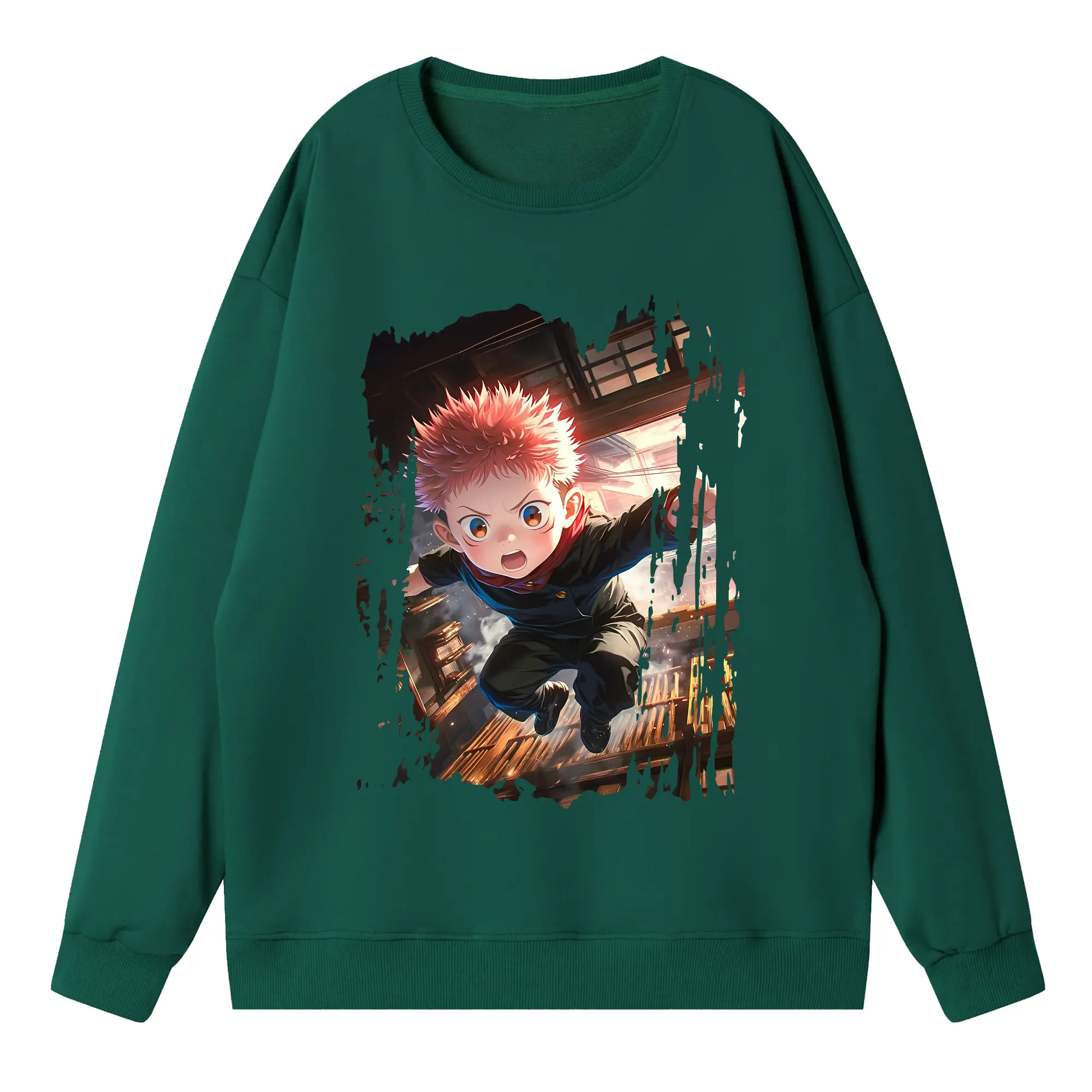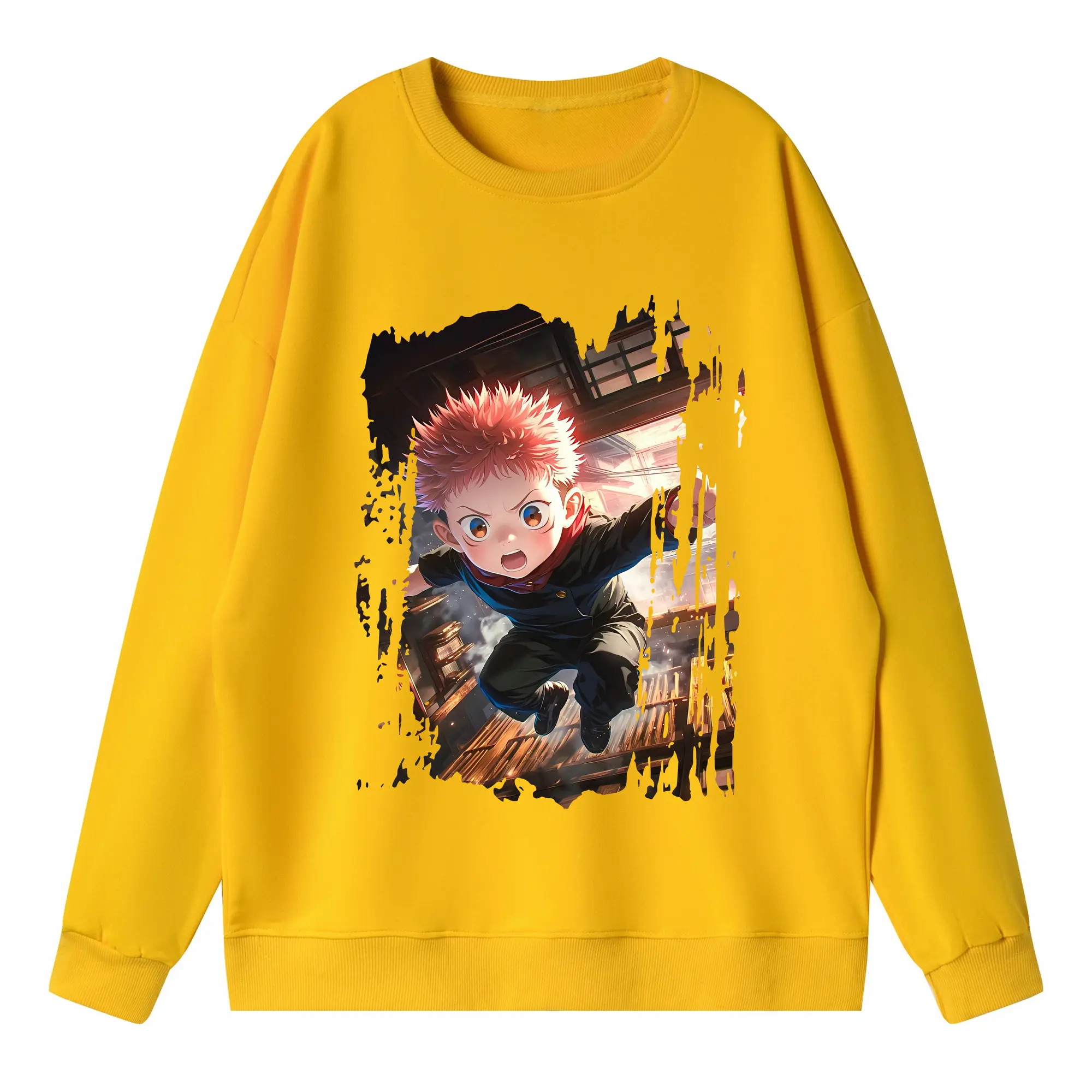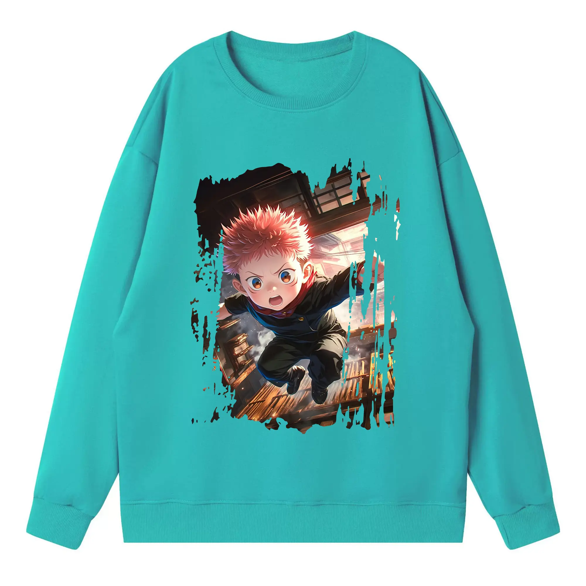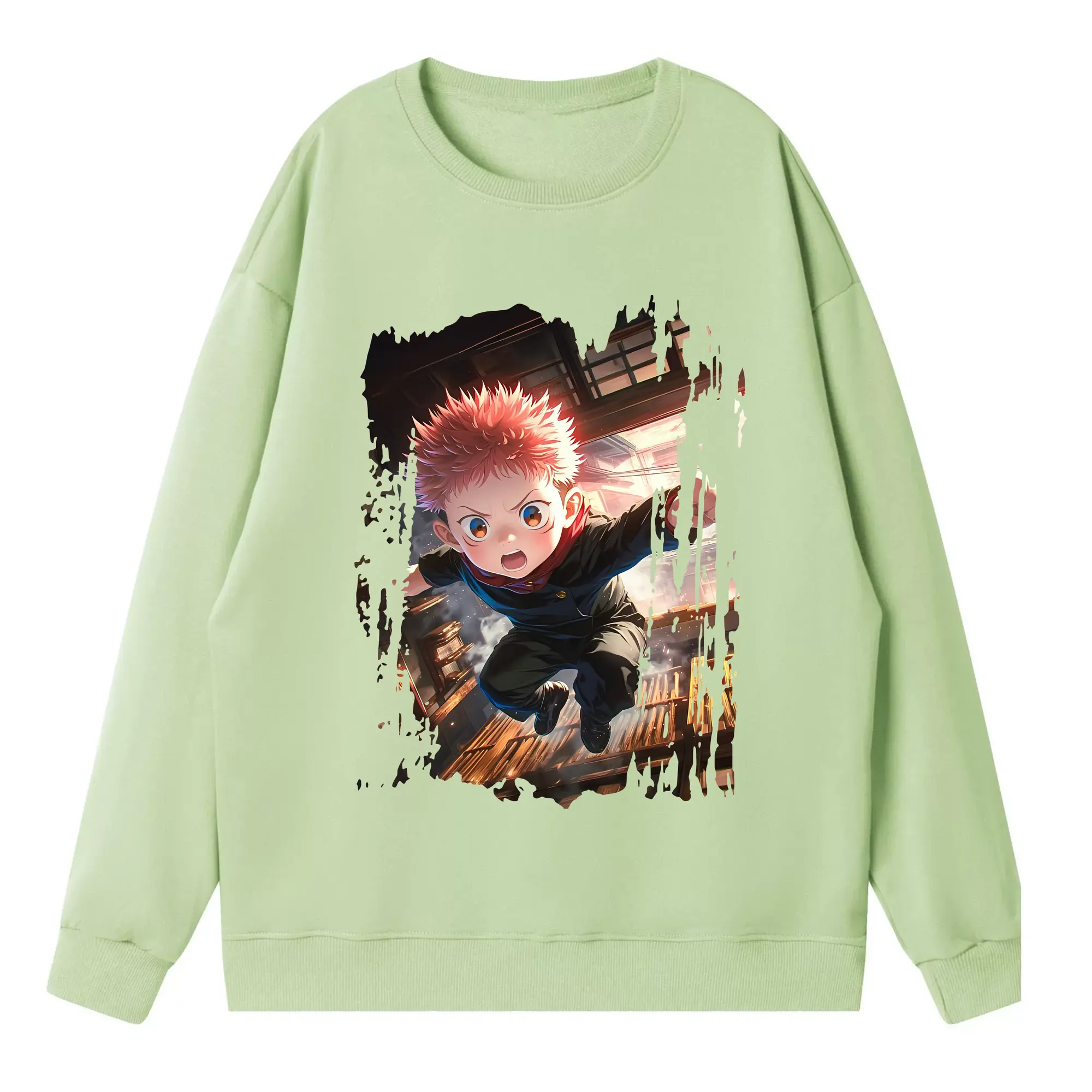 呪術廻戦 グッズ,虎杖 悠仁 - 高品質 クルーネック スウェット ・ コットン59% ポリエステル41% ・ ユニセックス 長袖 トレーナー ・ カジュアル デイリー スポーツ 散歩用