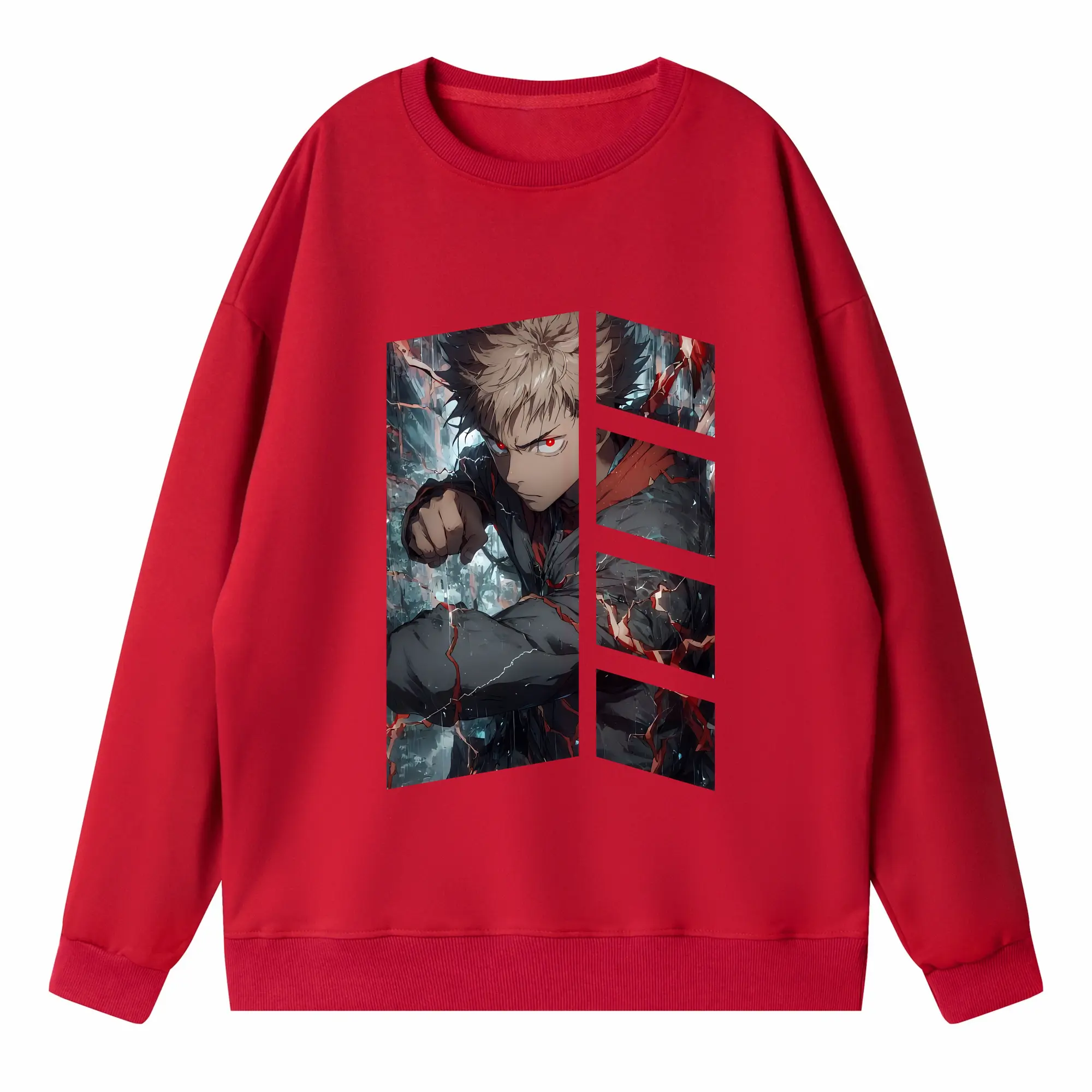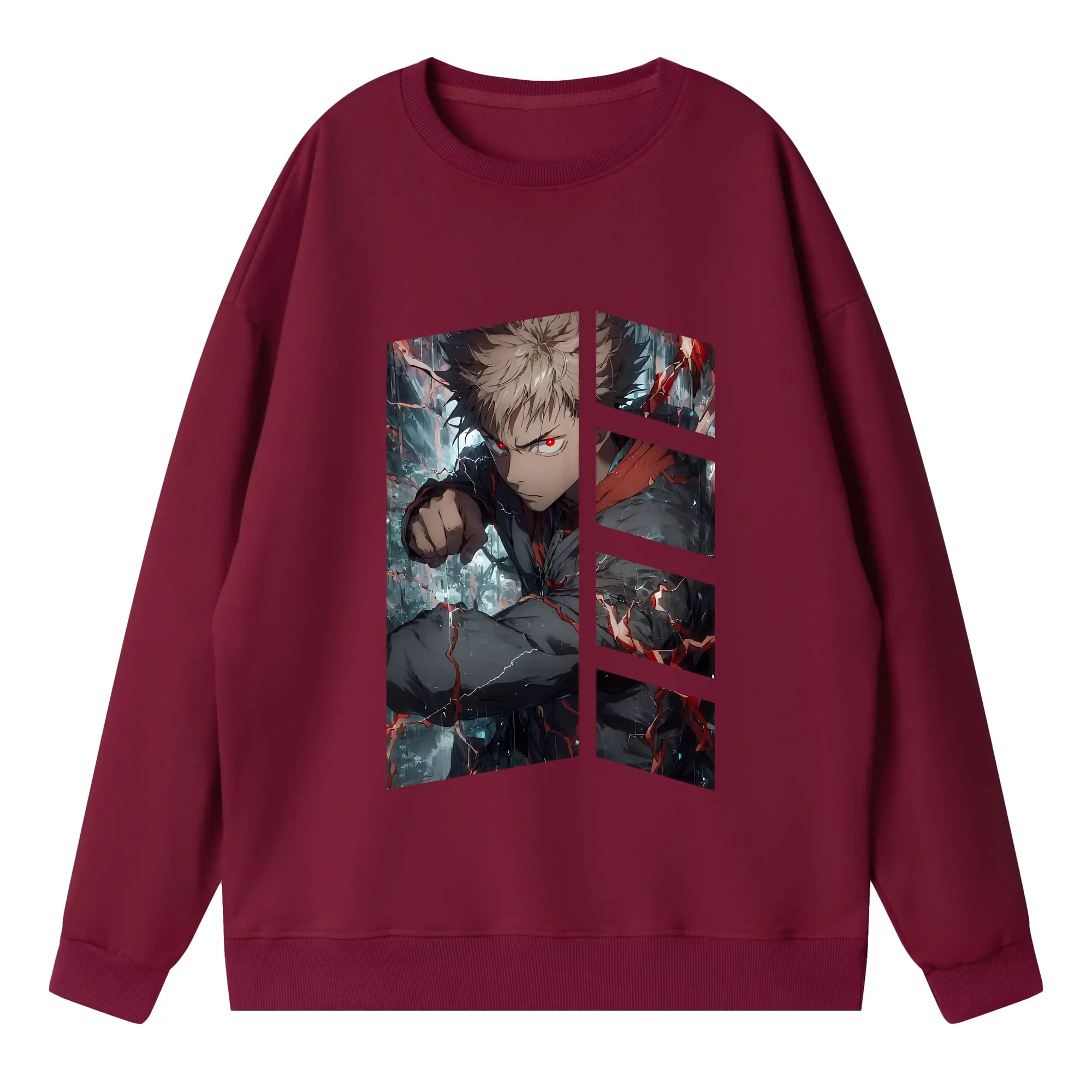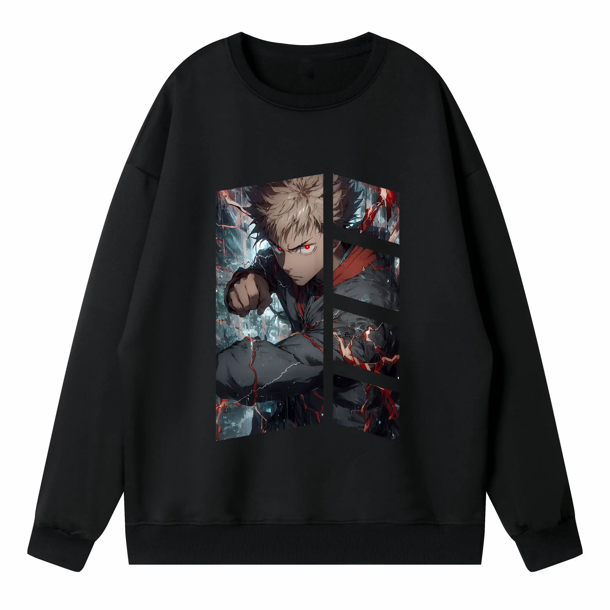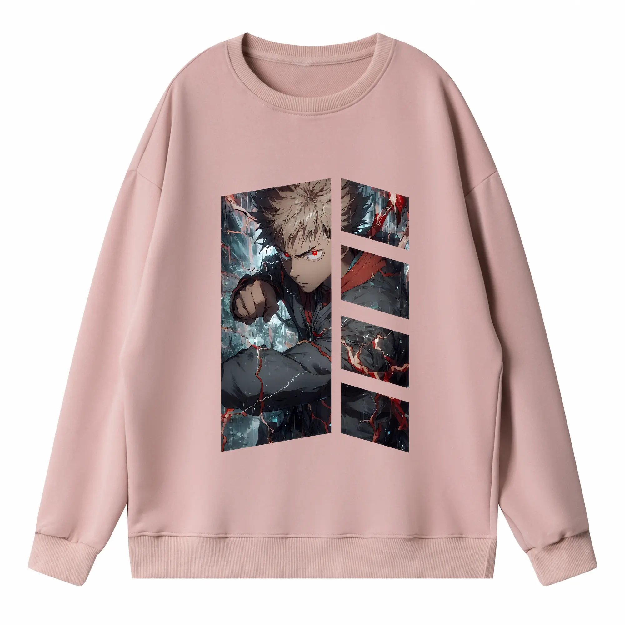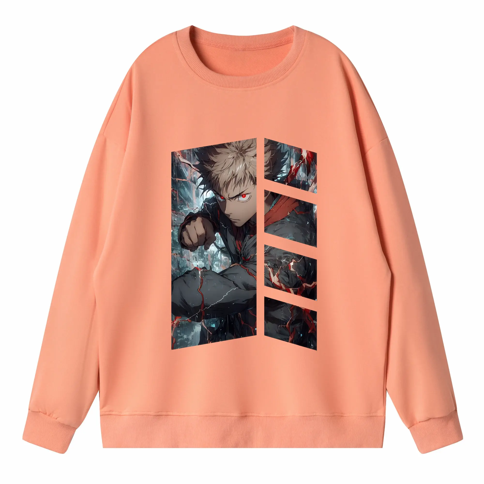 呪術廻戦 グッズ,虎杖 悠仁 - 高品質 クルーネック スウェット ・ コットン59% ポリエステル41% ・ ユニセックス 長袖 トレーナー ・ カジュアル デイリー スポーツ 散歩用