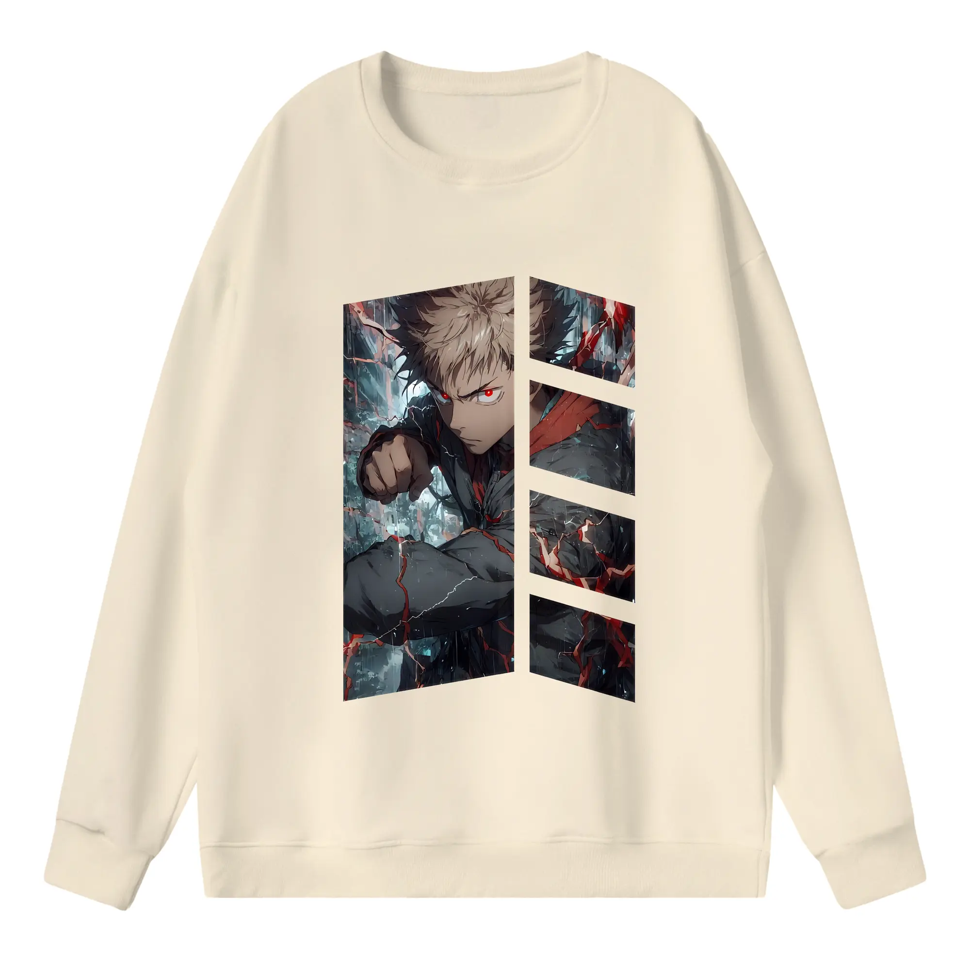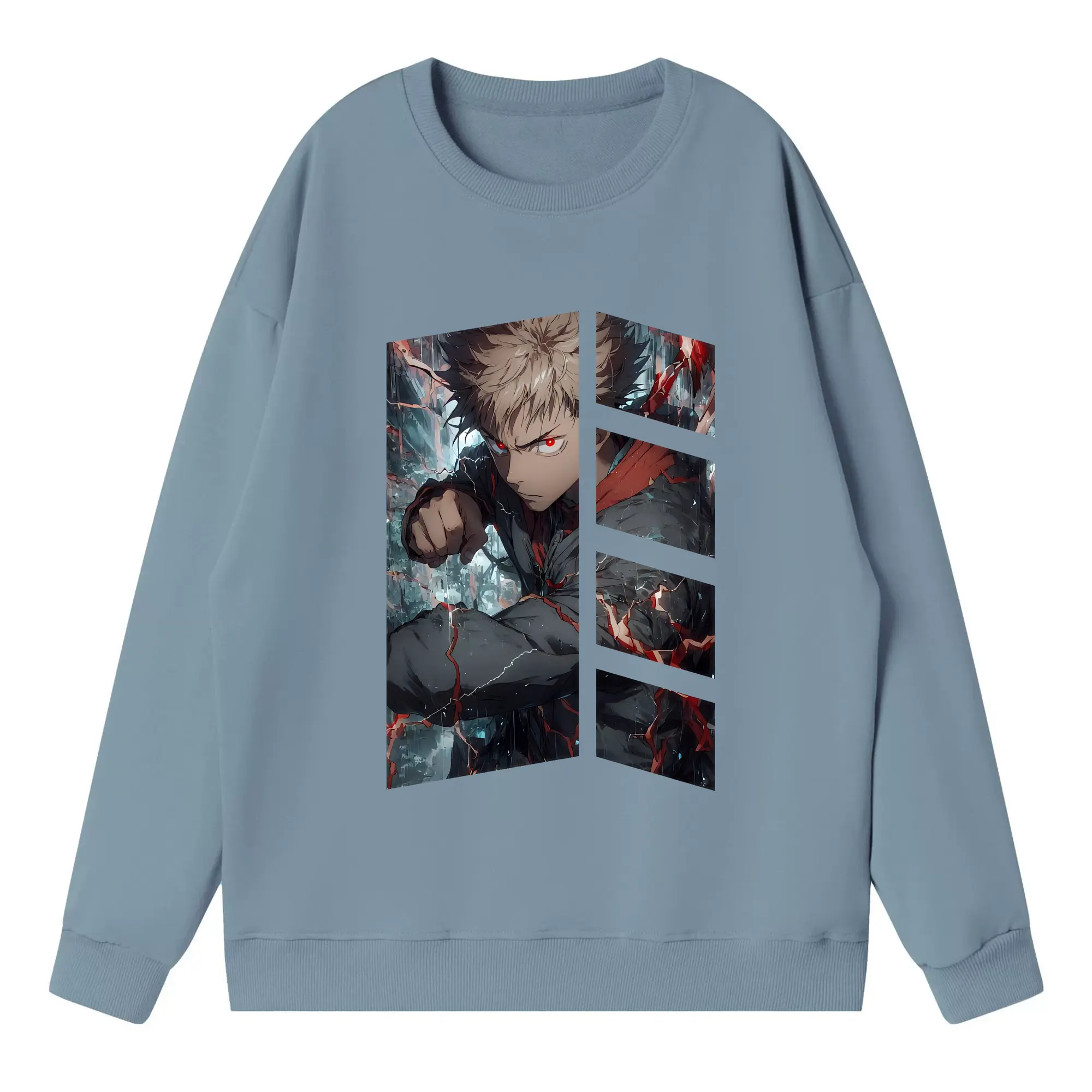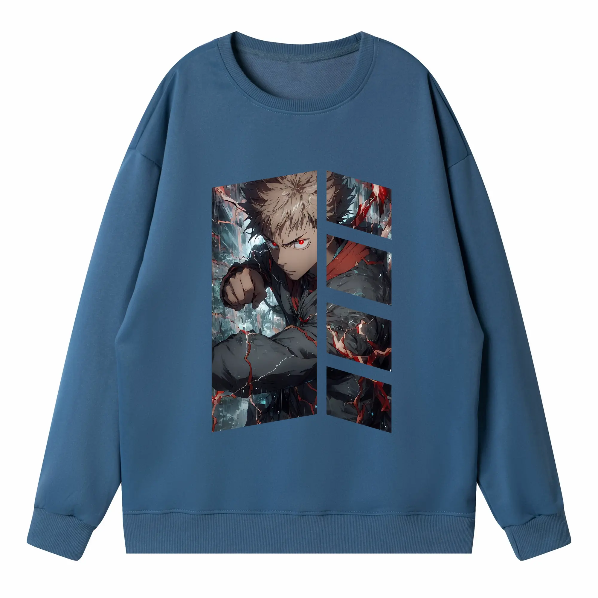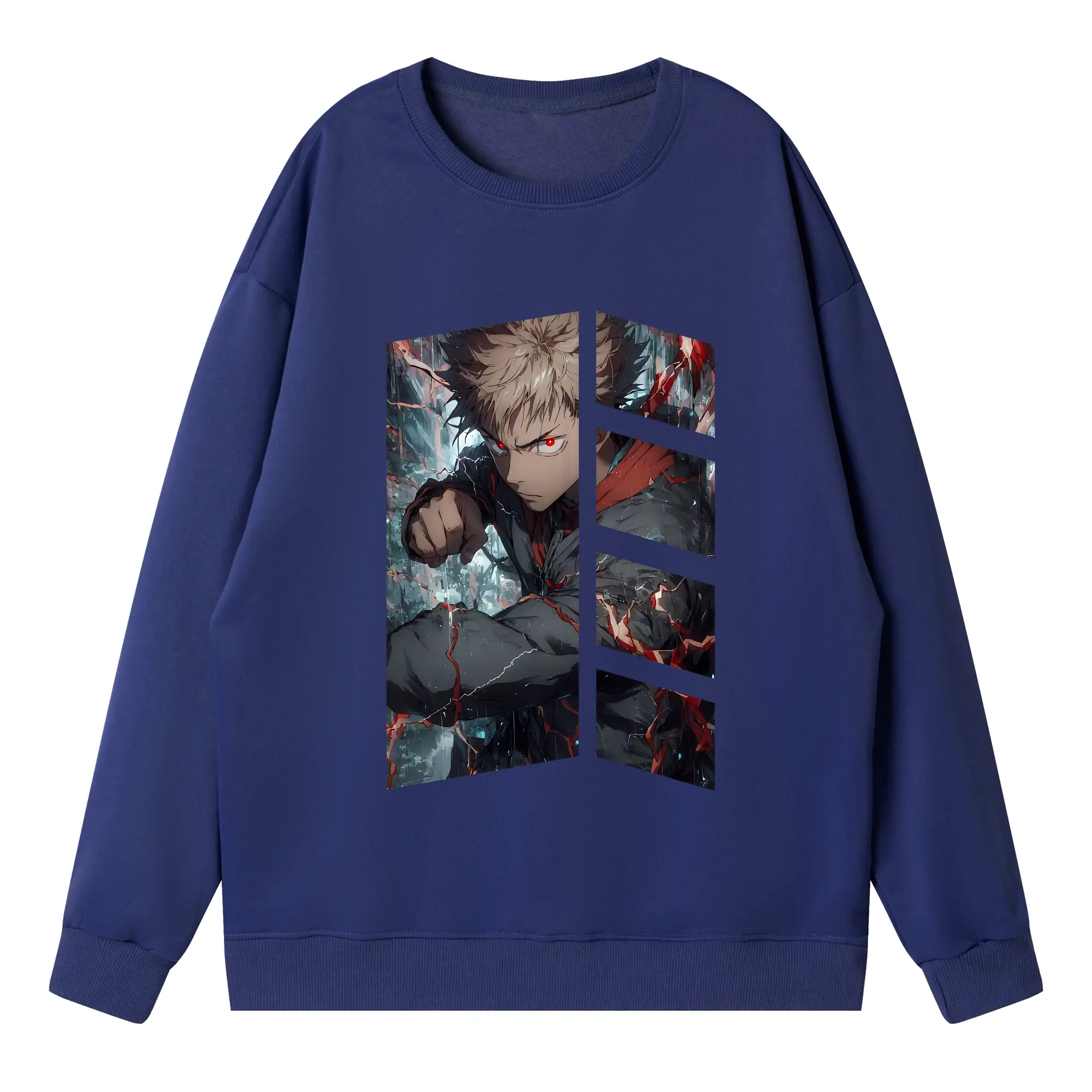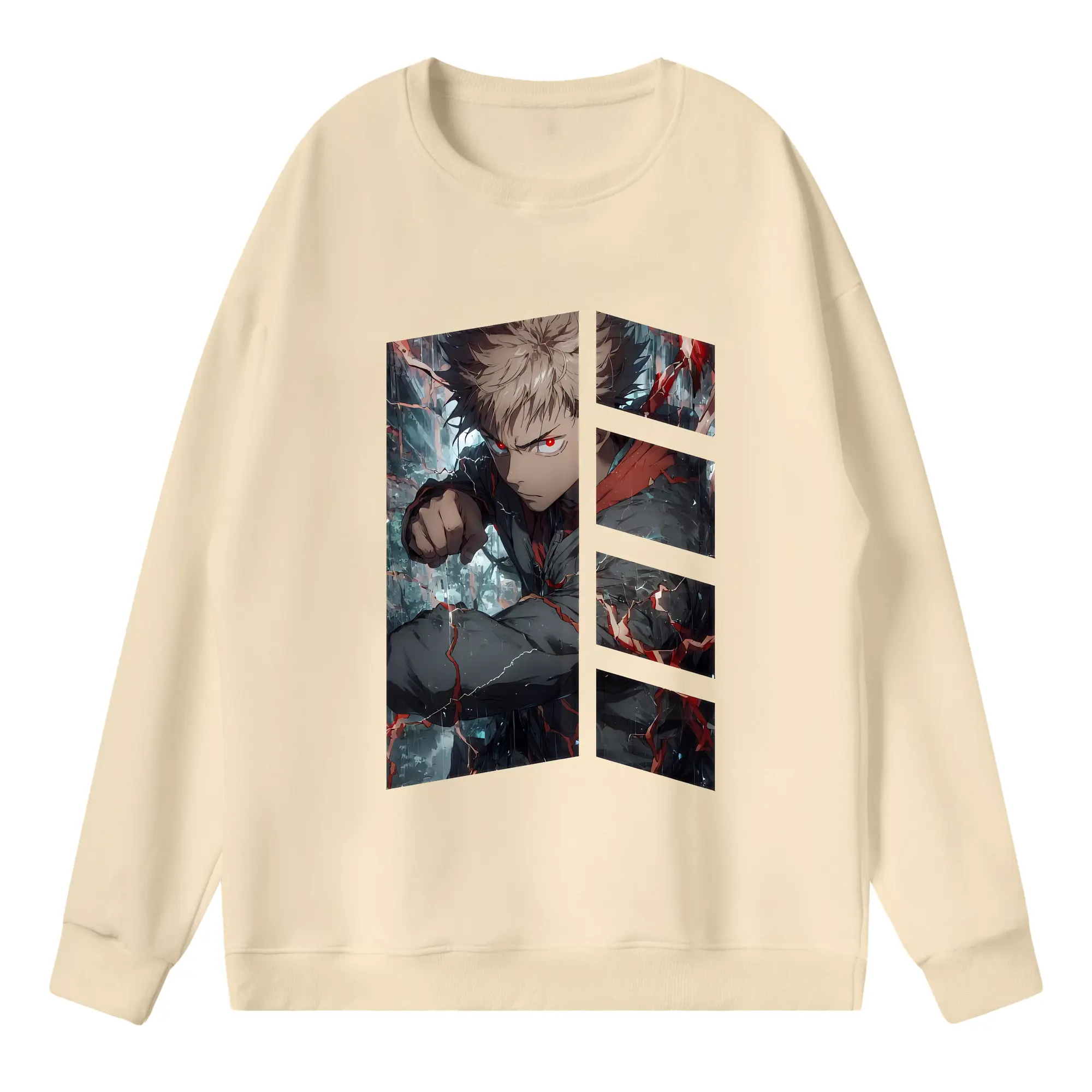呪術廻戦 グッズ,虎杖 悠仁 - 高品質 クルーネック スウェット ・ コットン59% ポリエステル41% ・ ユニセックス 長袖 トレーナー ・ カジュアル デイリー スポーツ 散歩用