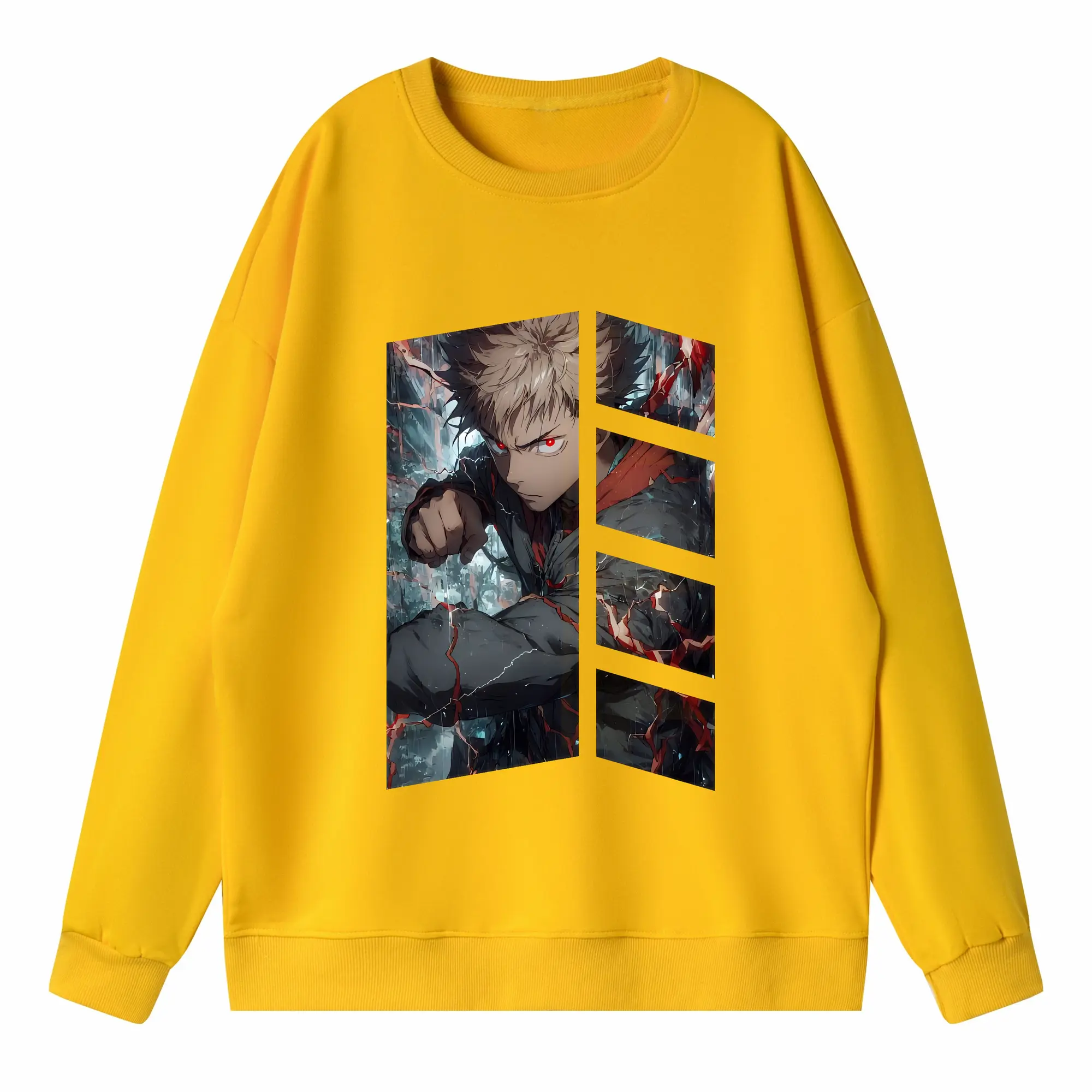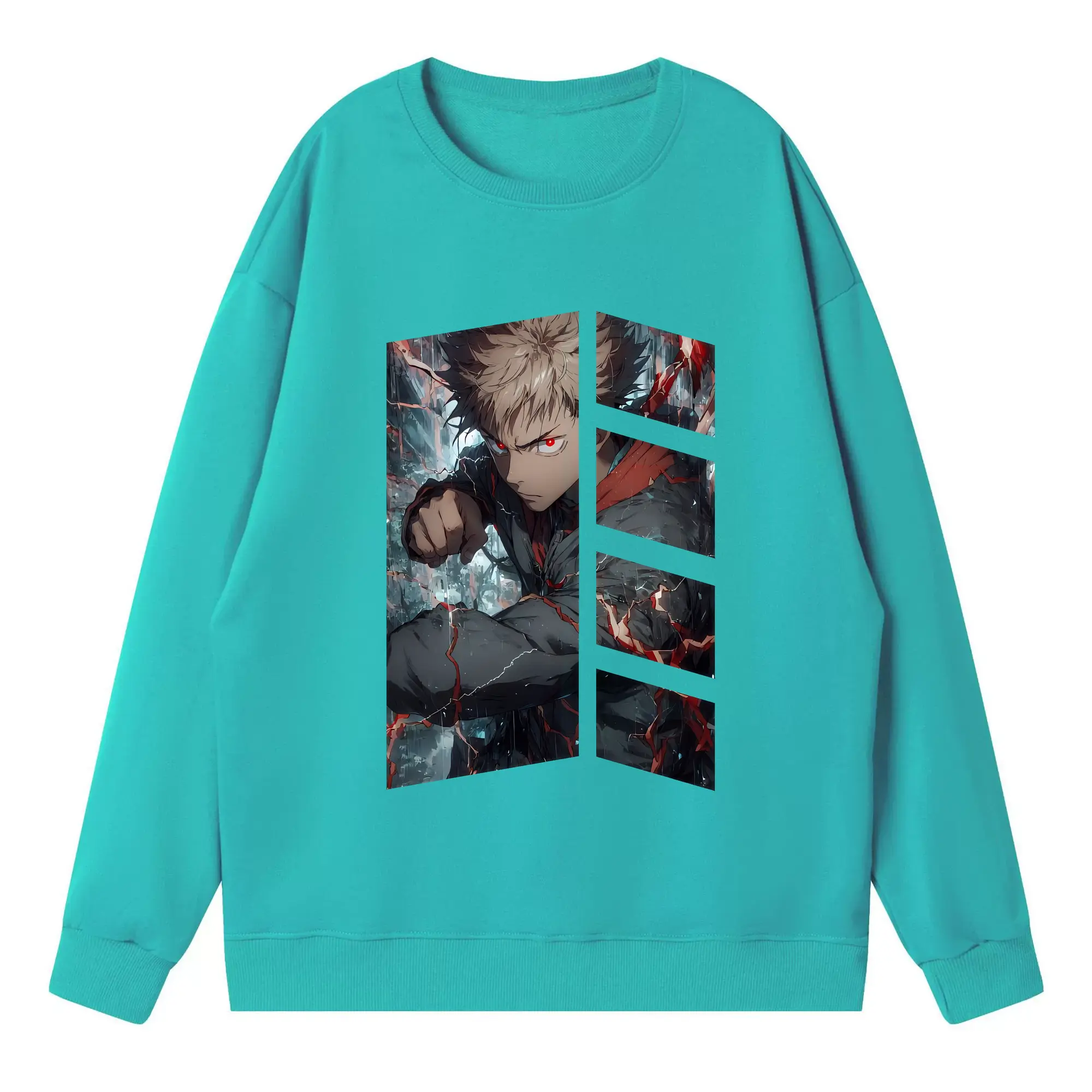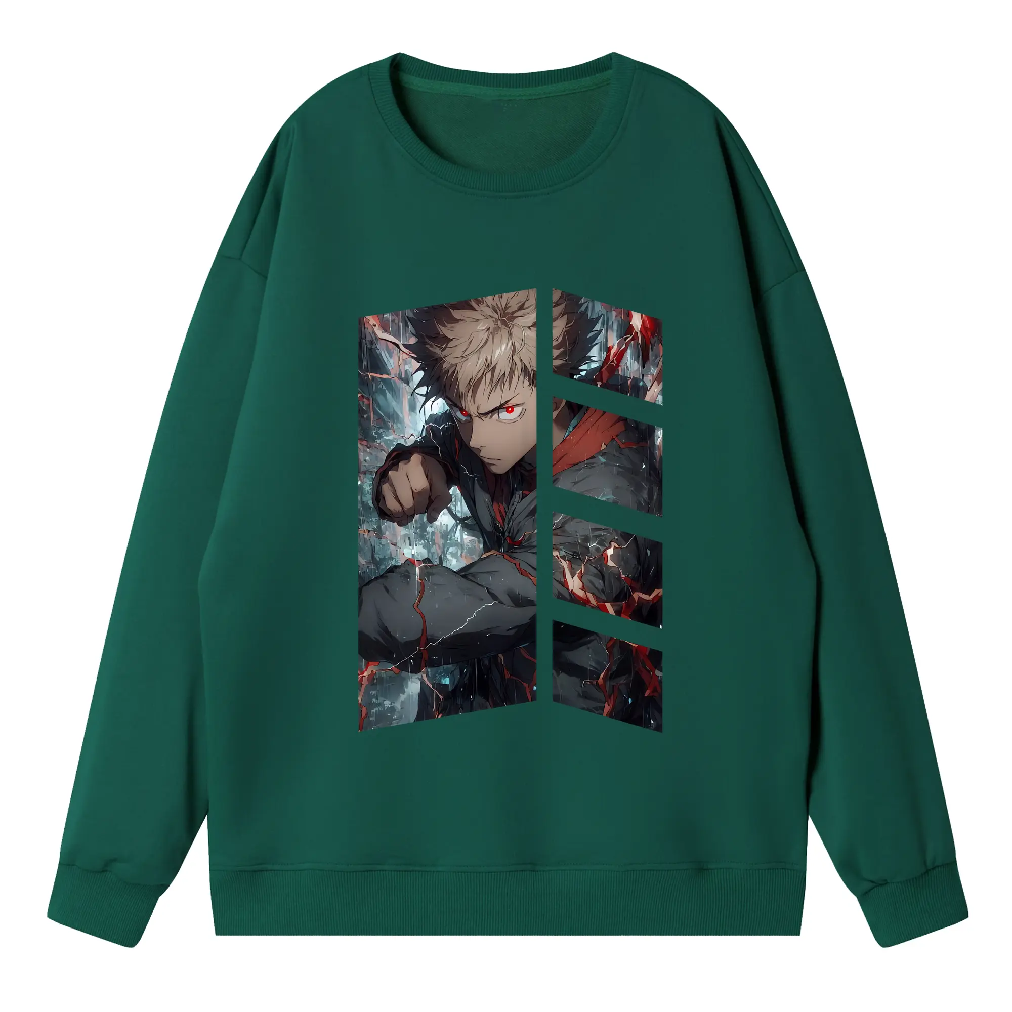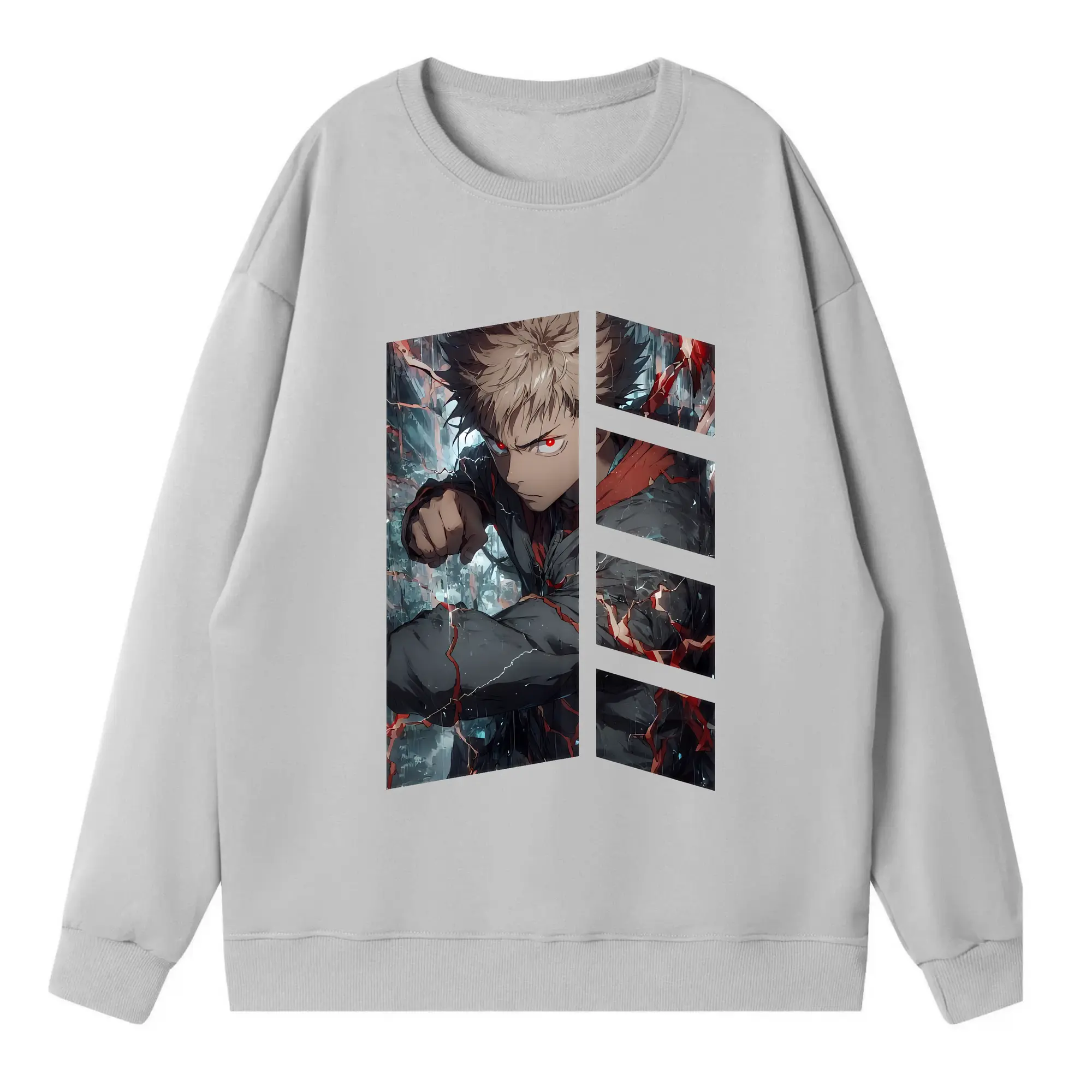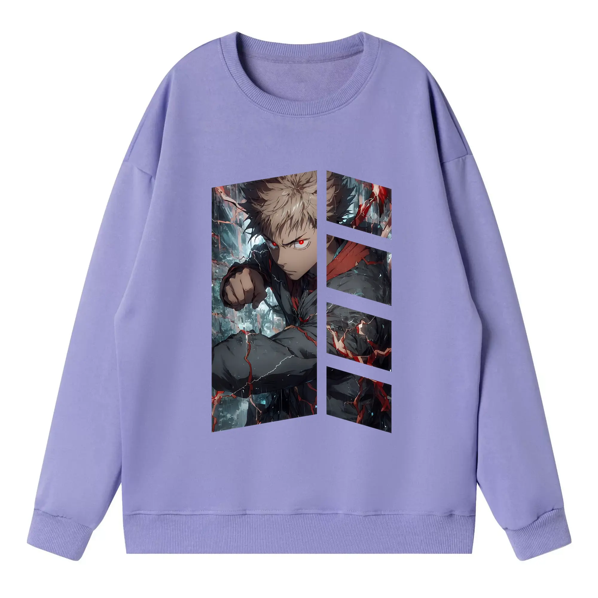 呪術廻戦 グッズ,虎杖 悠仁 - 高品質 クルーネック スウェット ・ コットン59% ポリエステル41% ・ ユニセックス 長袖 トレーナー ・ カジュアル デイリー スポーツ 散歩用