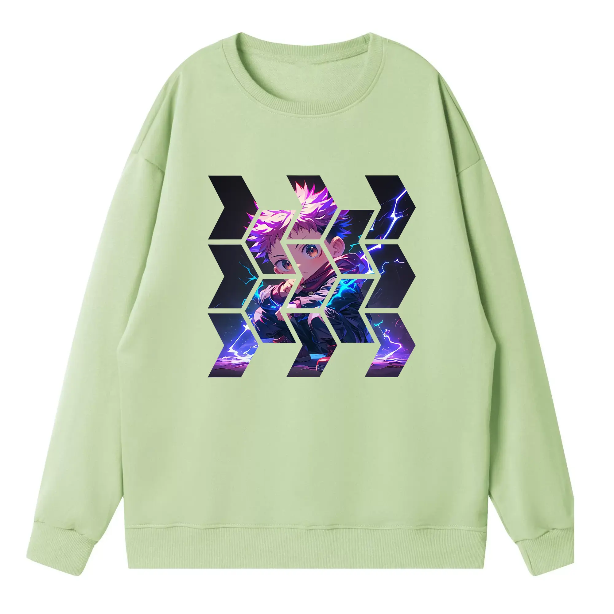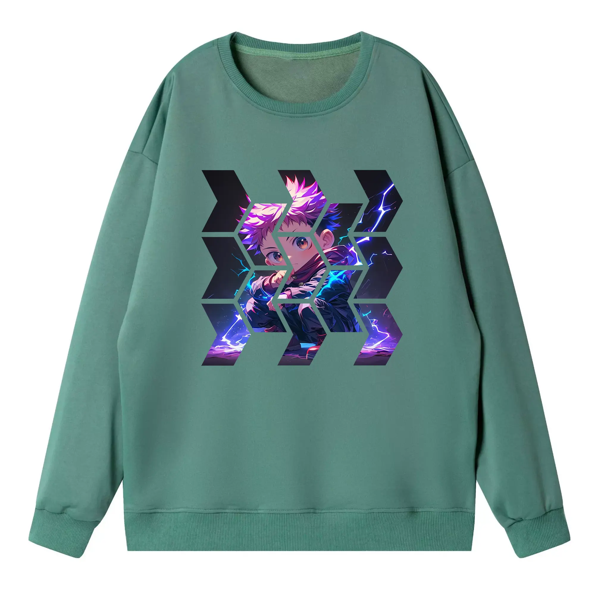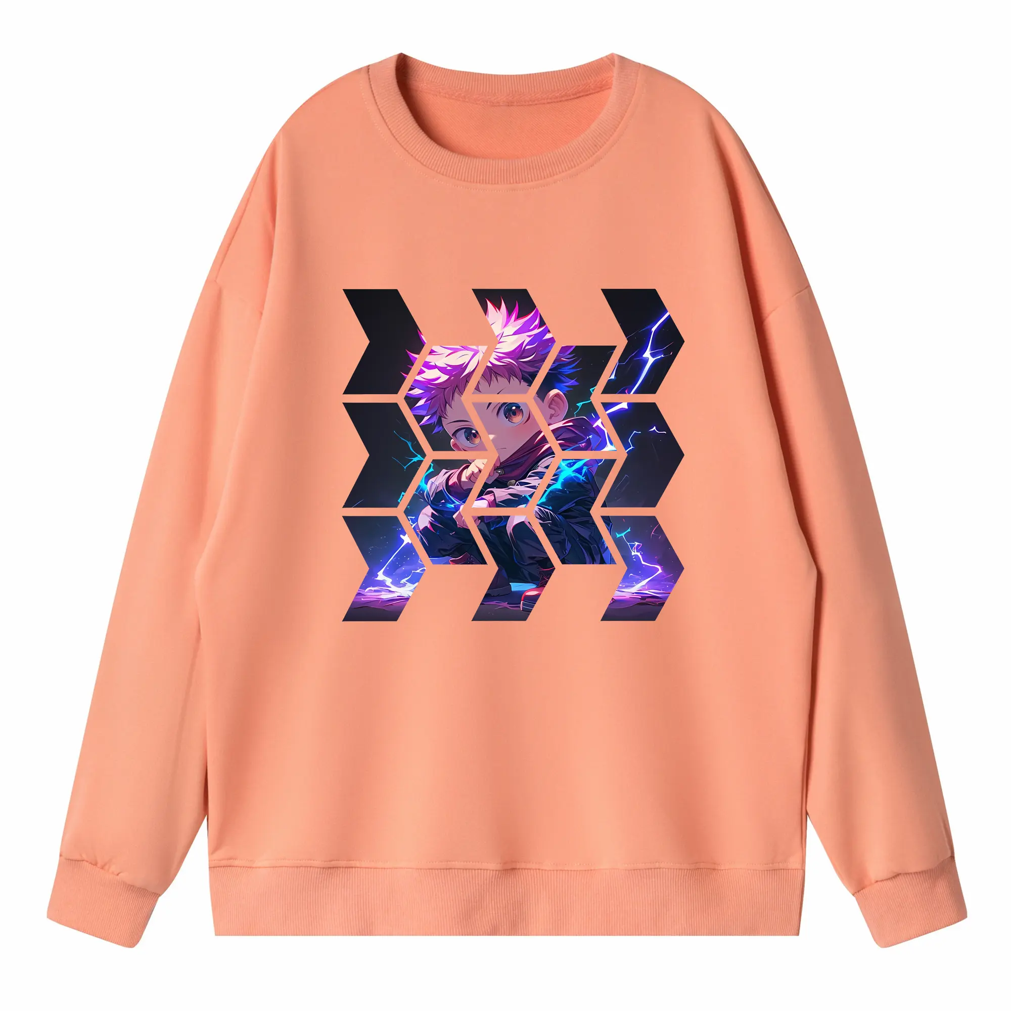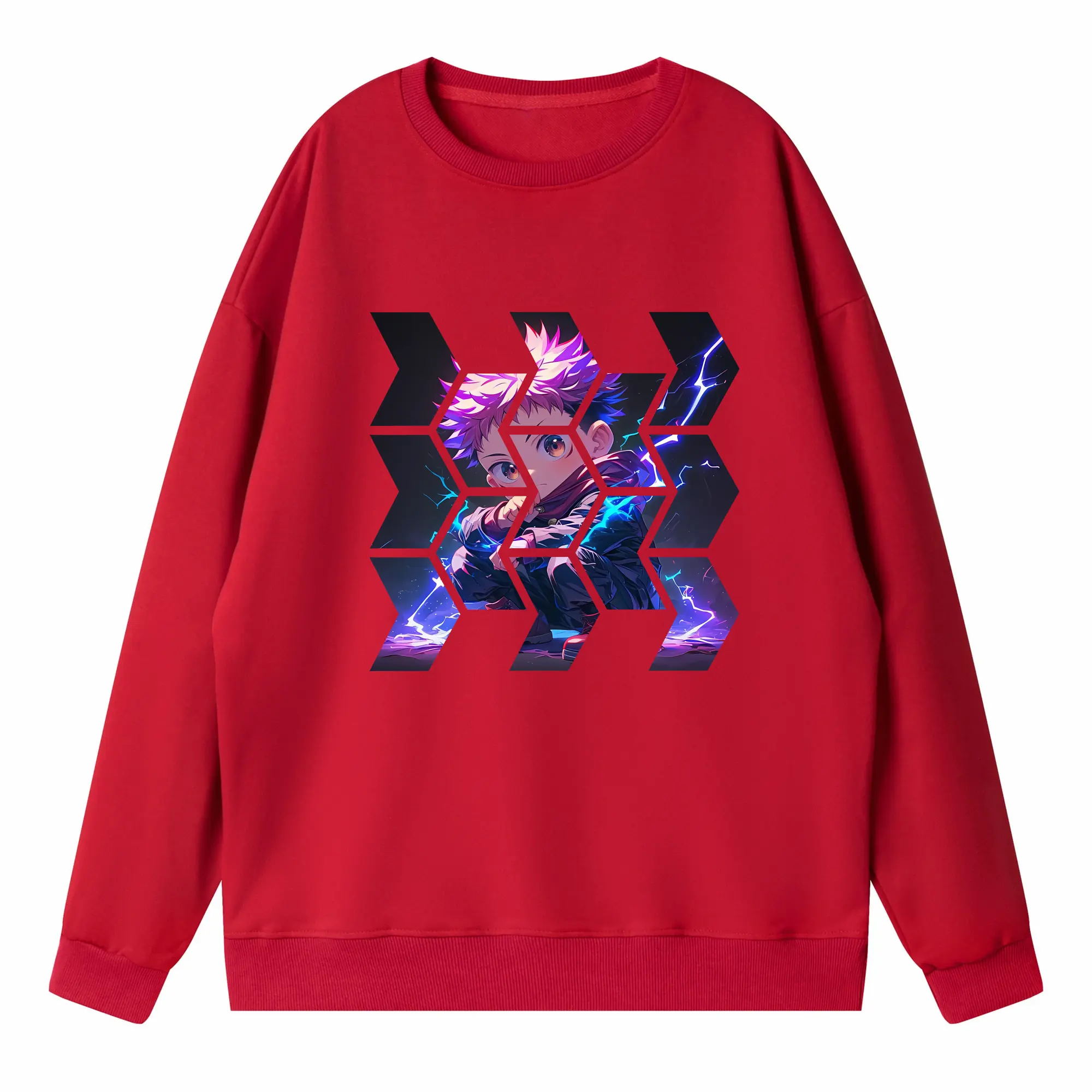 呪術廻戦 グッズ,虎杖 悠仁 - 高品質 クルーネック スウェット ・ コットン59% ポリエステル41% ・ ユニセックス 長袖 トレーナー ・ カジュアル デイリー スポーツ 散歩用