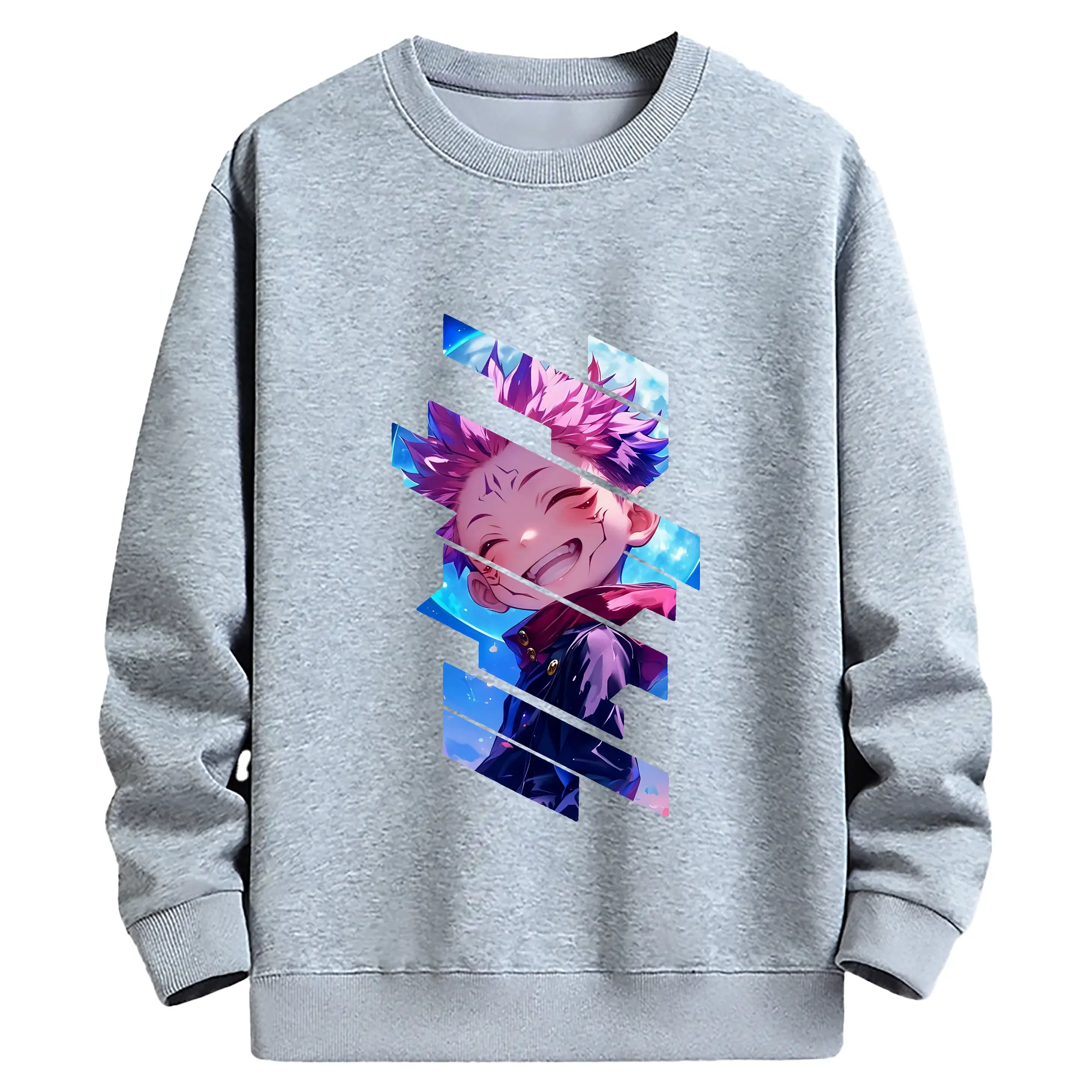 呪術廻戦 グッズ,虎杖 悠仁 - 薄手 クルーネック スウェット 裏毛260g · ポリエステル 春秋向け カジュアル 男女兼用 · トレーナー デイリー スポーツ 散歩に最適