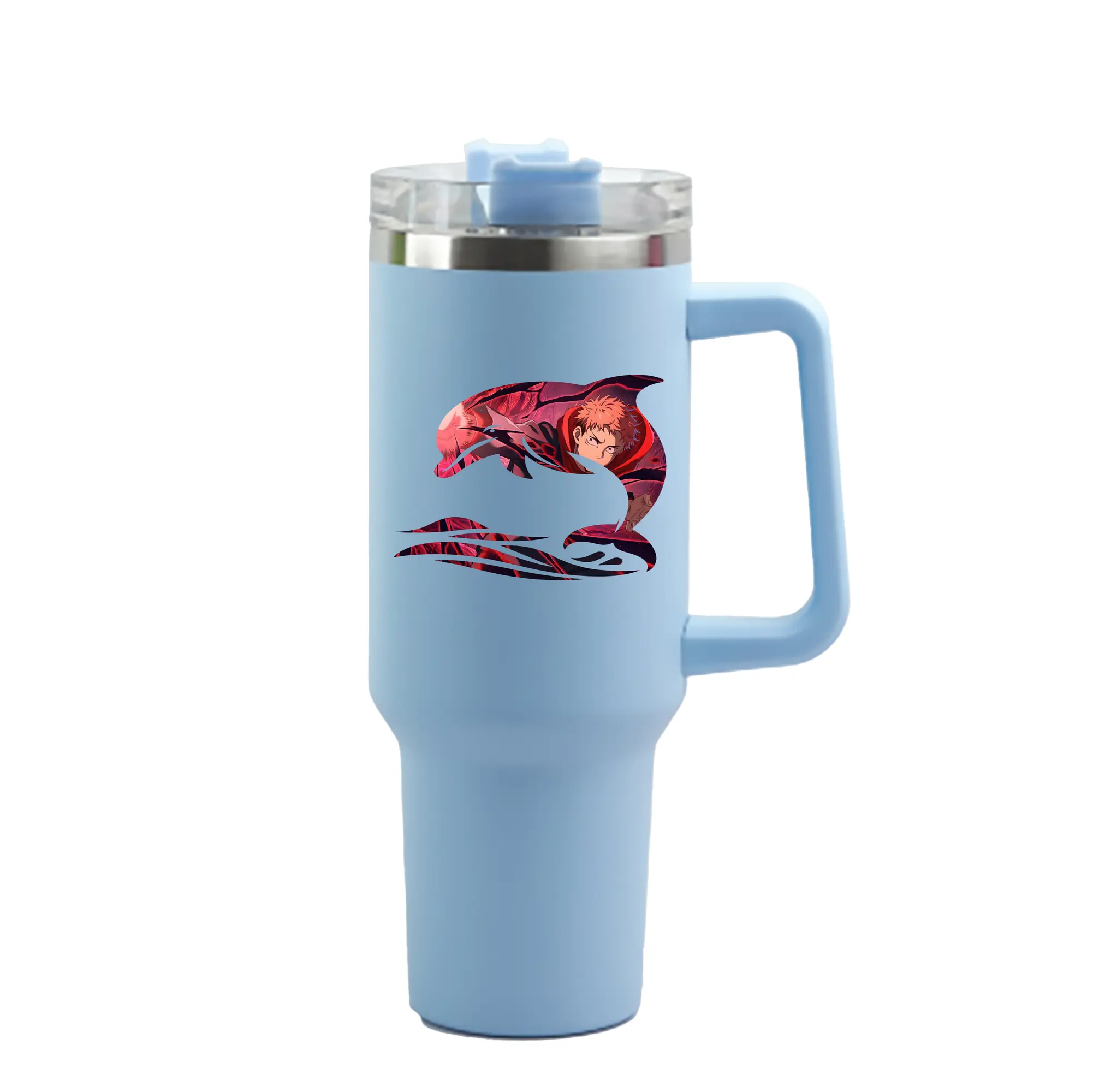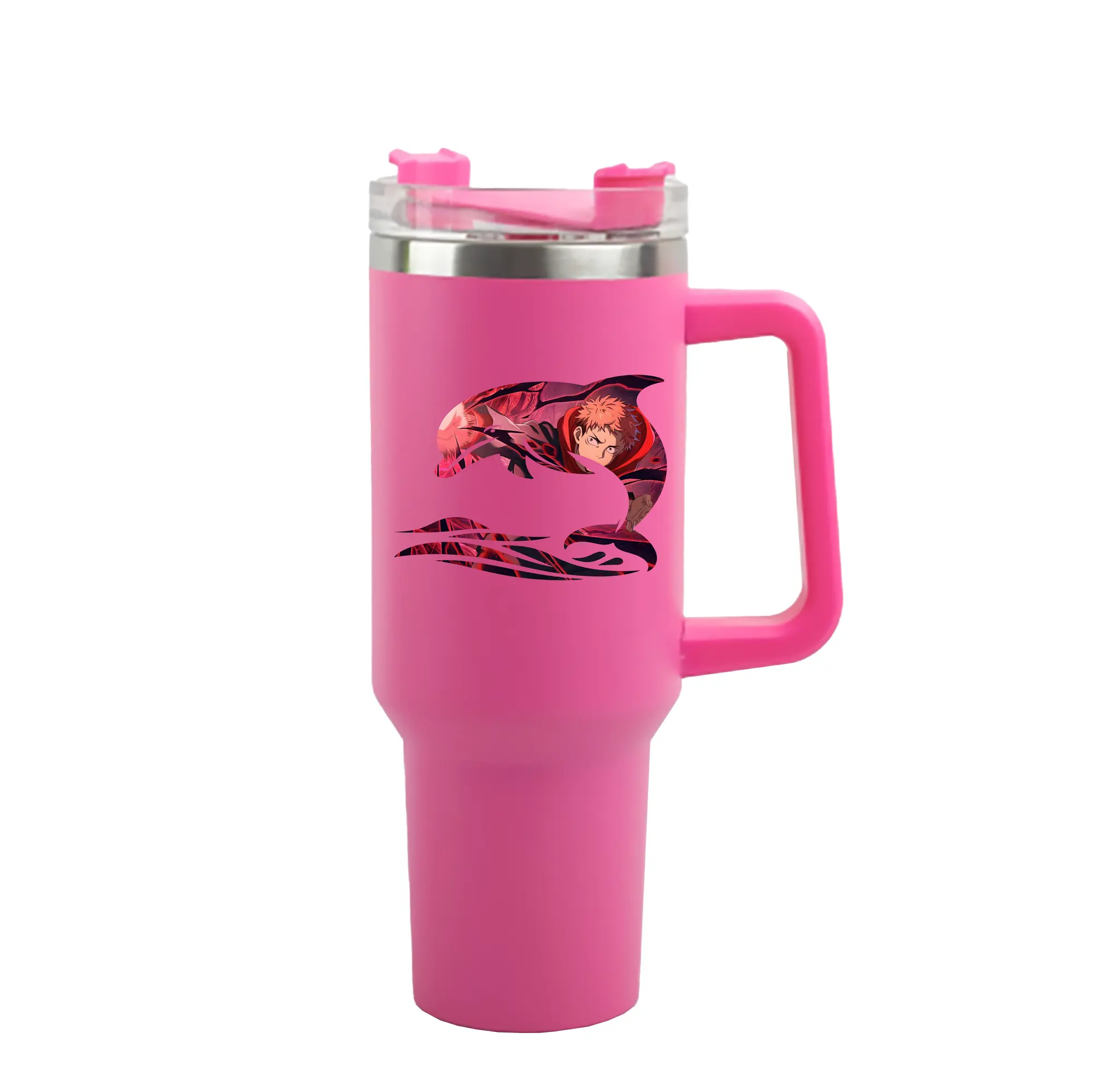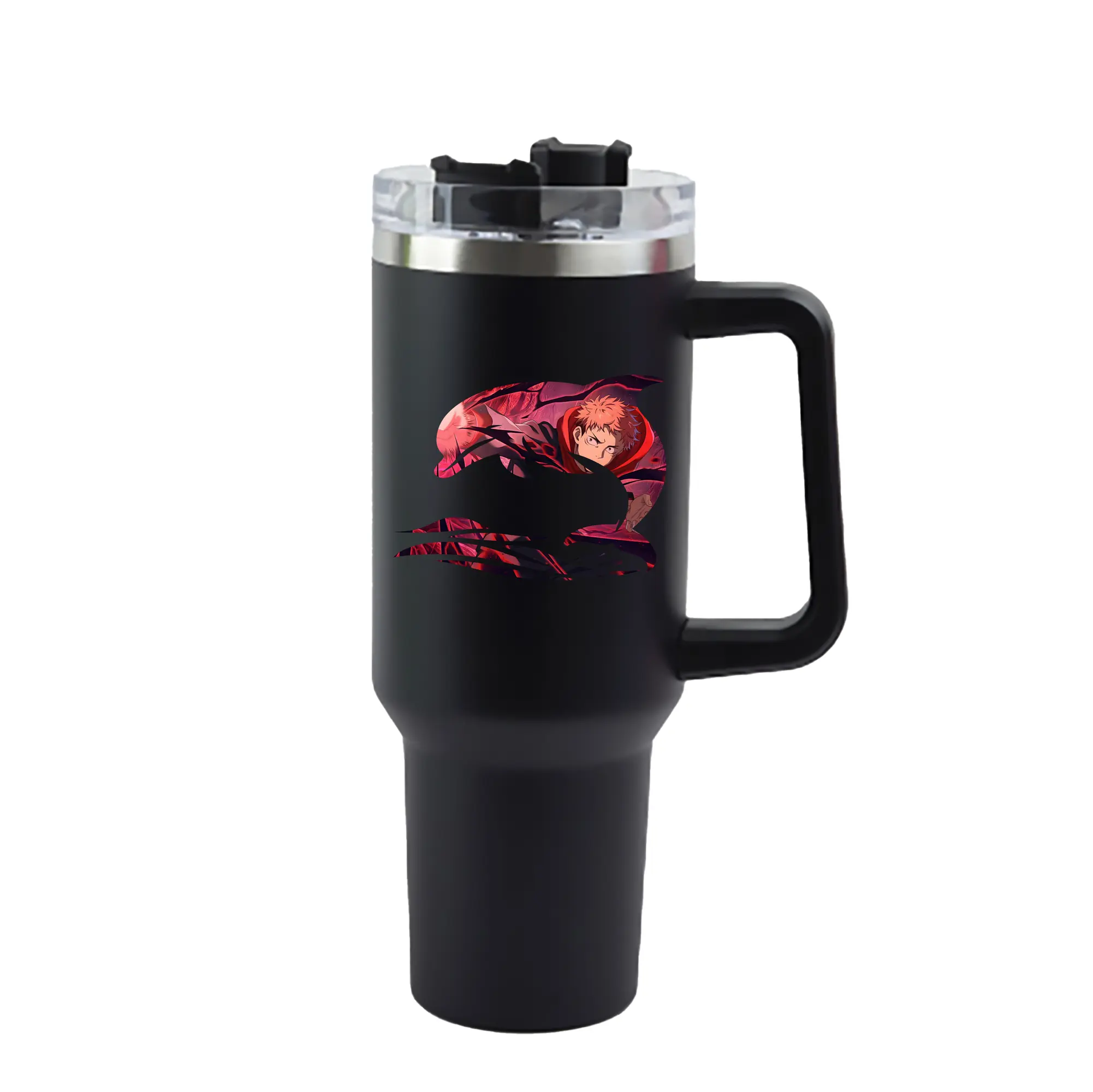 呪術廻戦 グッズ,虎杖 悠仁 - 1200mL 車用タンブラー ・ クリスタルステッカー ・ 304ステンレス 内側 ・ 201ステンレス 外側 ・ 保温 保冷 ・ ハンドル&ストロー付き ・ 通勤 ドライブ アウトドア用