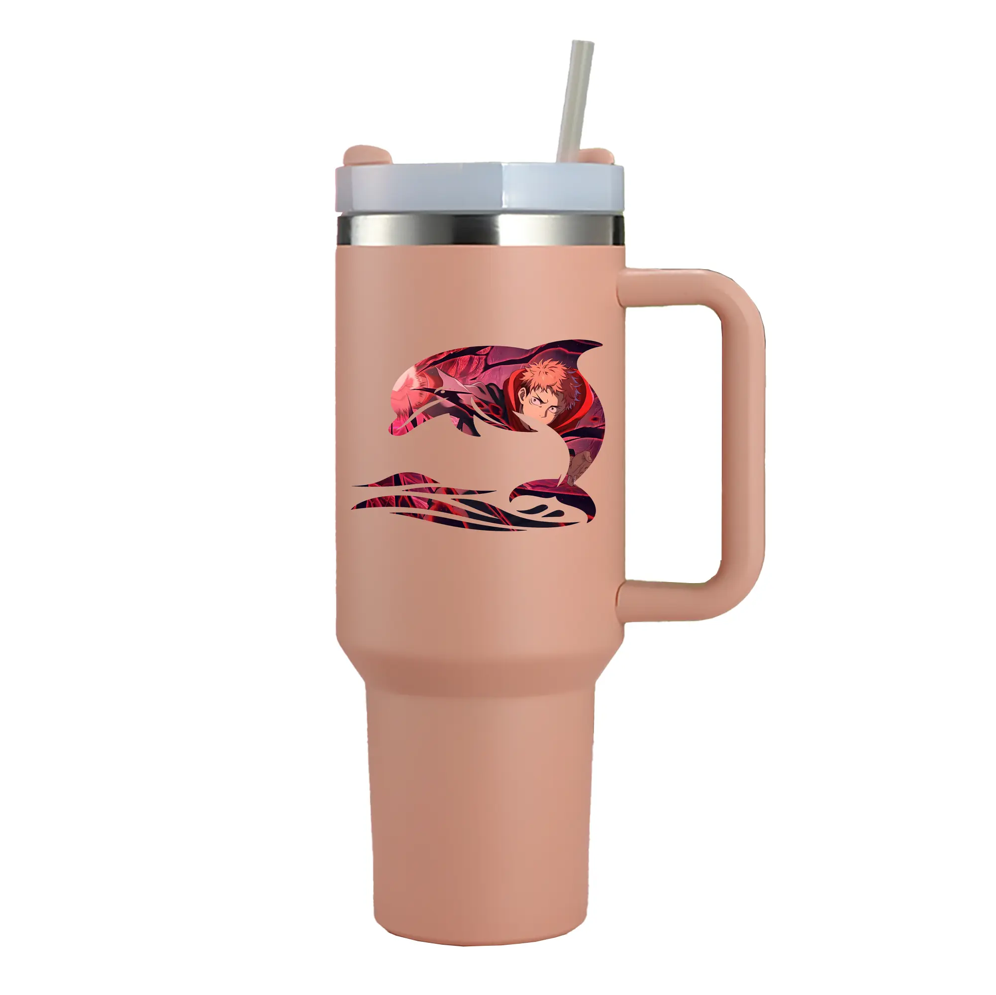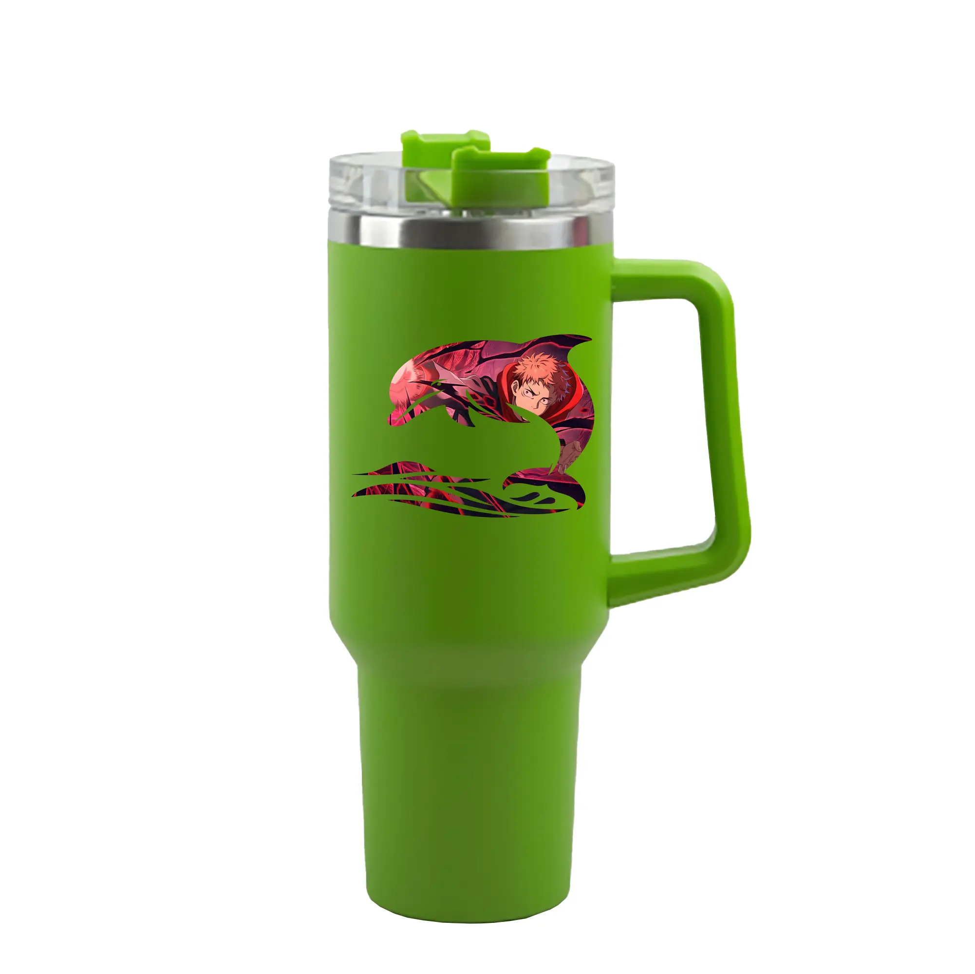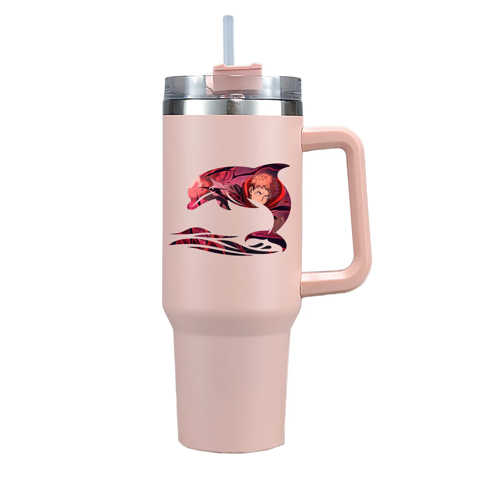 呪術廻戦 グッズ,虎杖 悠仁 - 1200mL 車用タンブラー ・ クリスタルステッカー ・ 304ステンレス 内側 ・ 201ステンレス 外側 ・ 保温 保冷 ・ ハンドル&ストロー付き ・ 通勤 ドライブ アウトドア用