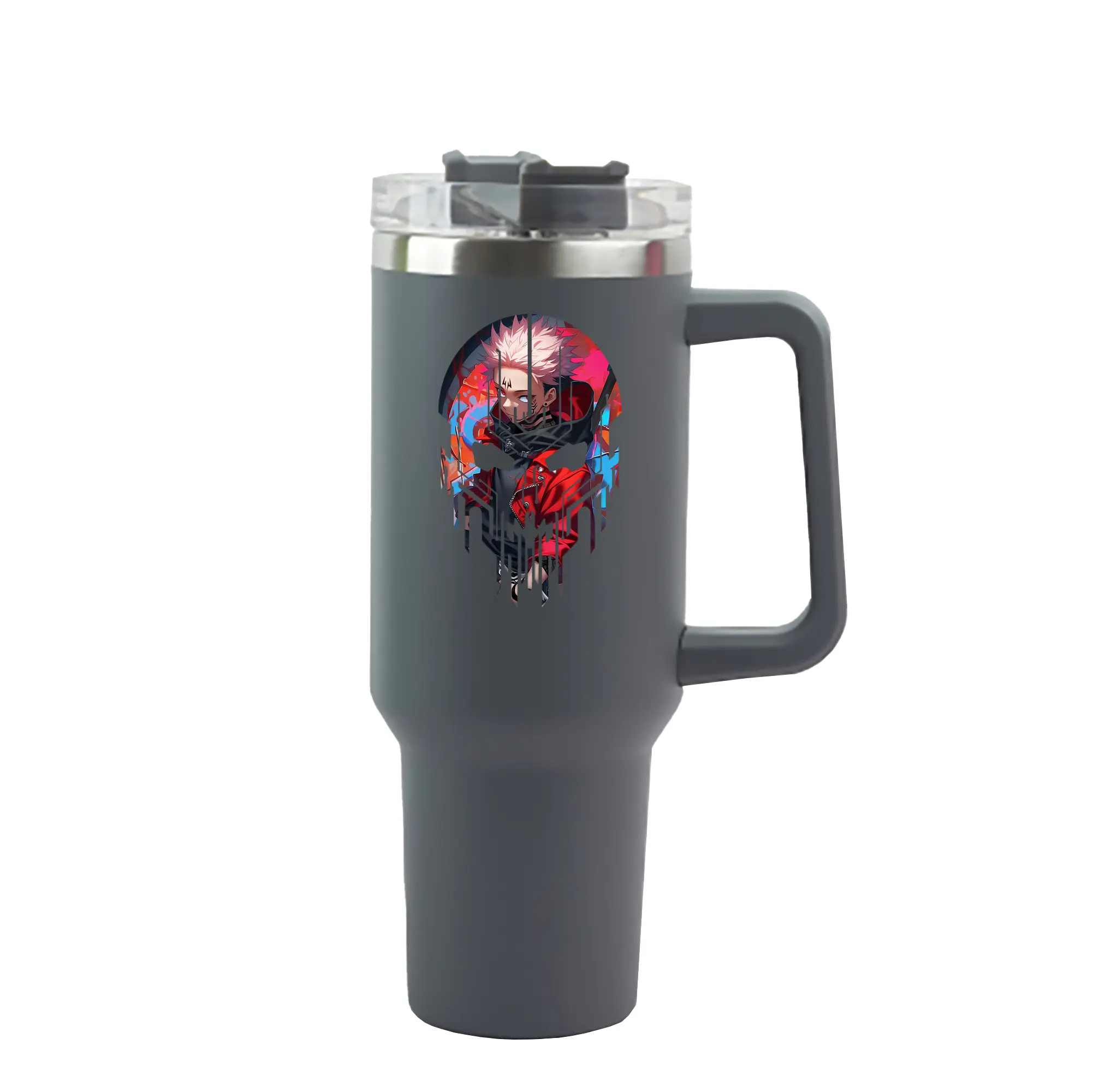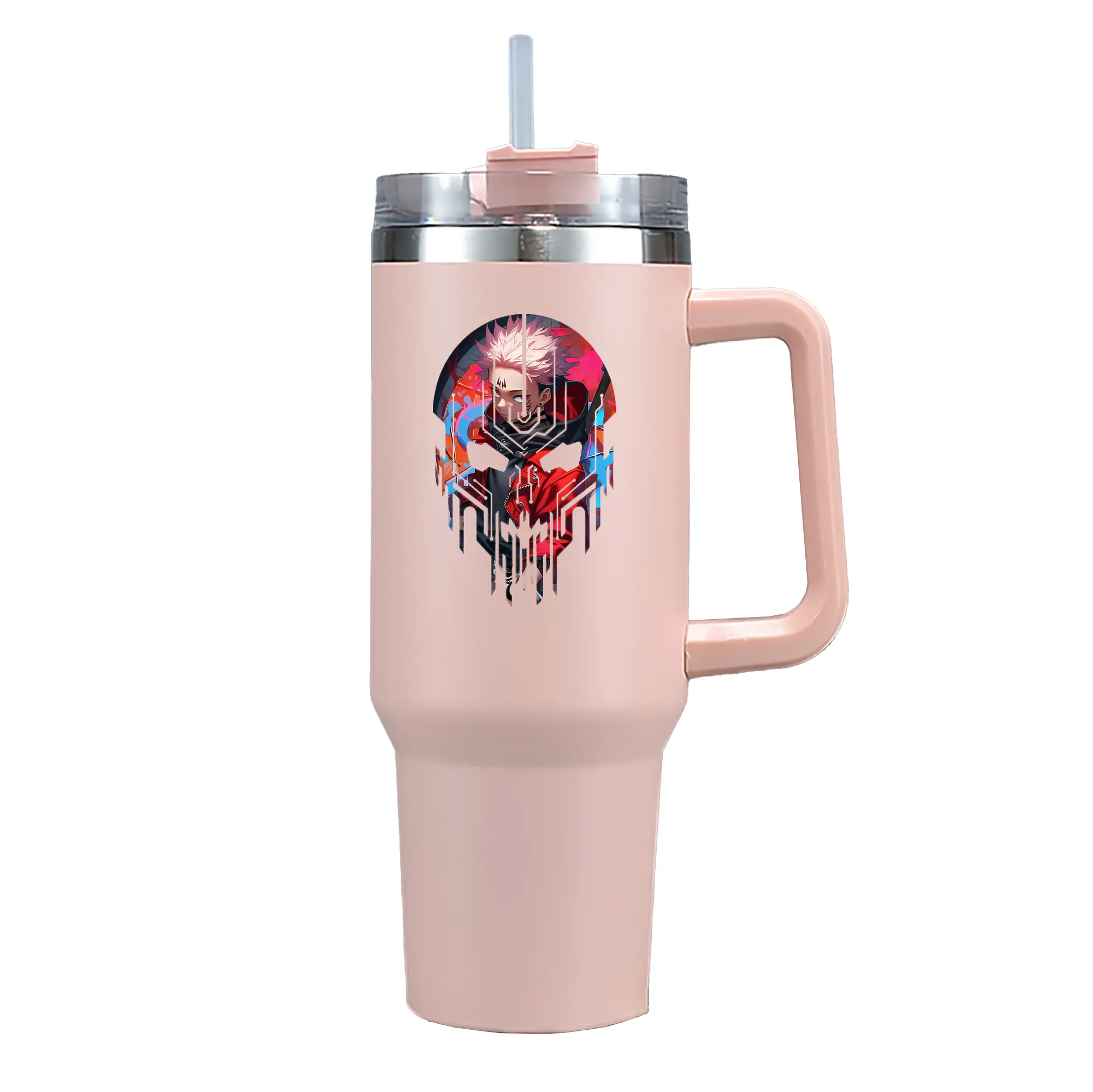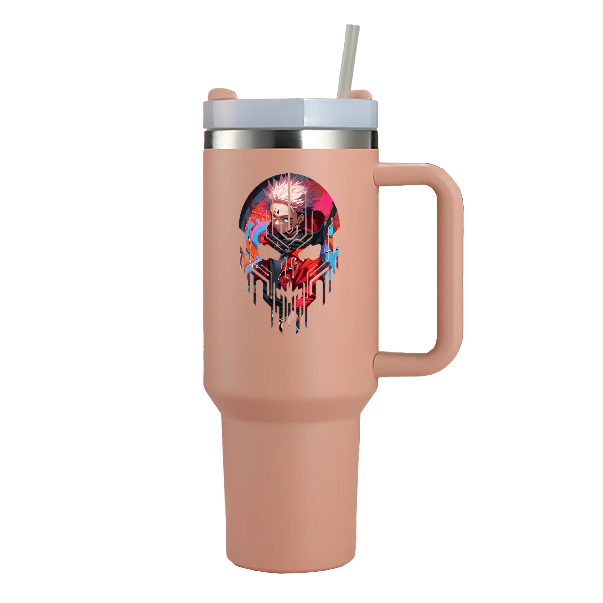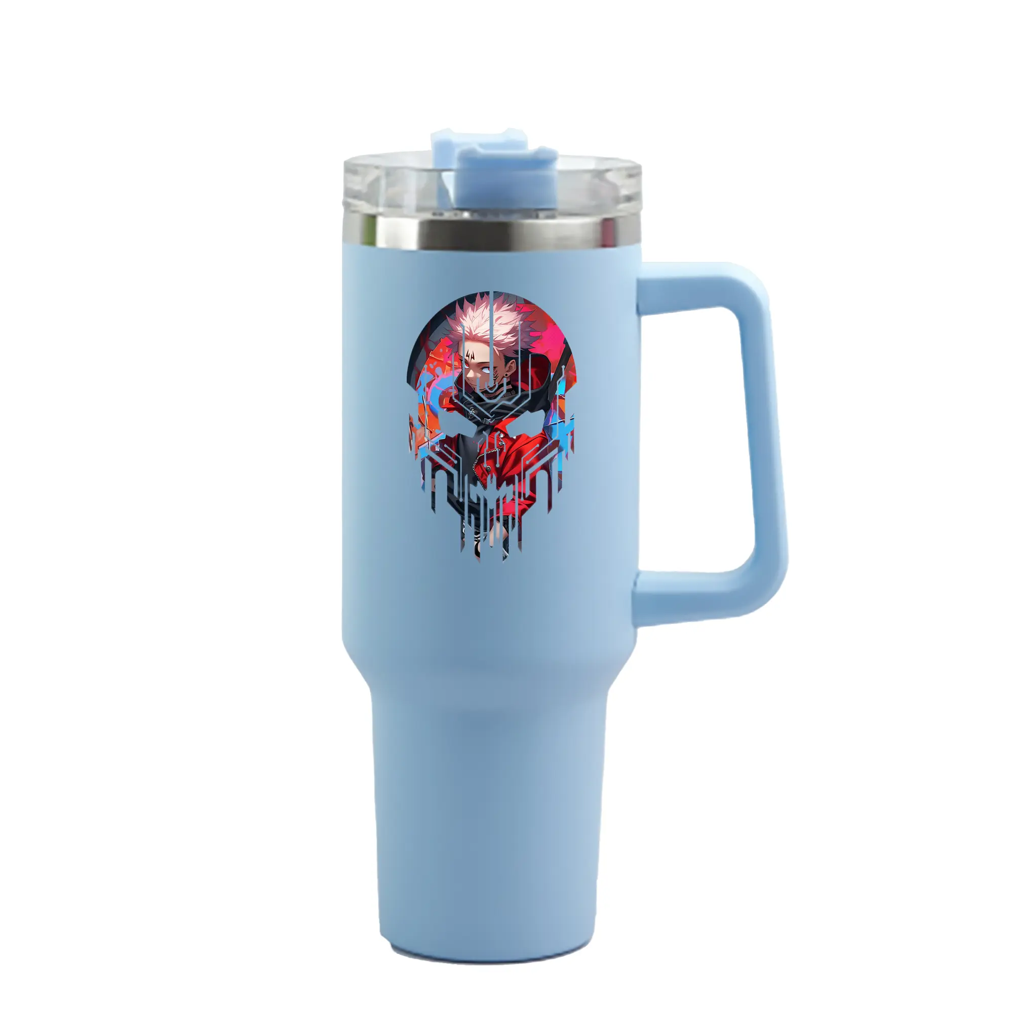 呪術廻戦 グッズ,虎杖 悠仁 - 1200mL 車用タンブラー ・ クリスタルステッカー ・ 304ステンレス 内側 ・ 201ステンレス 外側 ・ 保温 保冷 ・ ハンドル&ストロー付き ・ 通勤 ドライブ アウトドア用