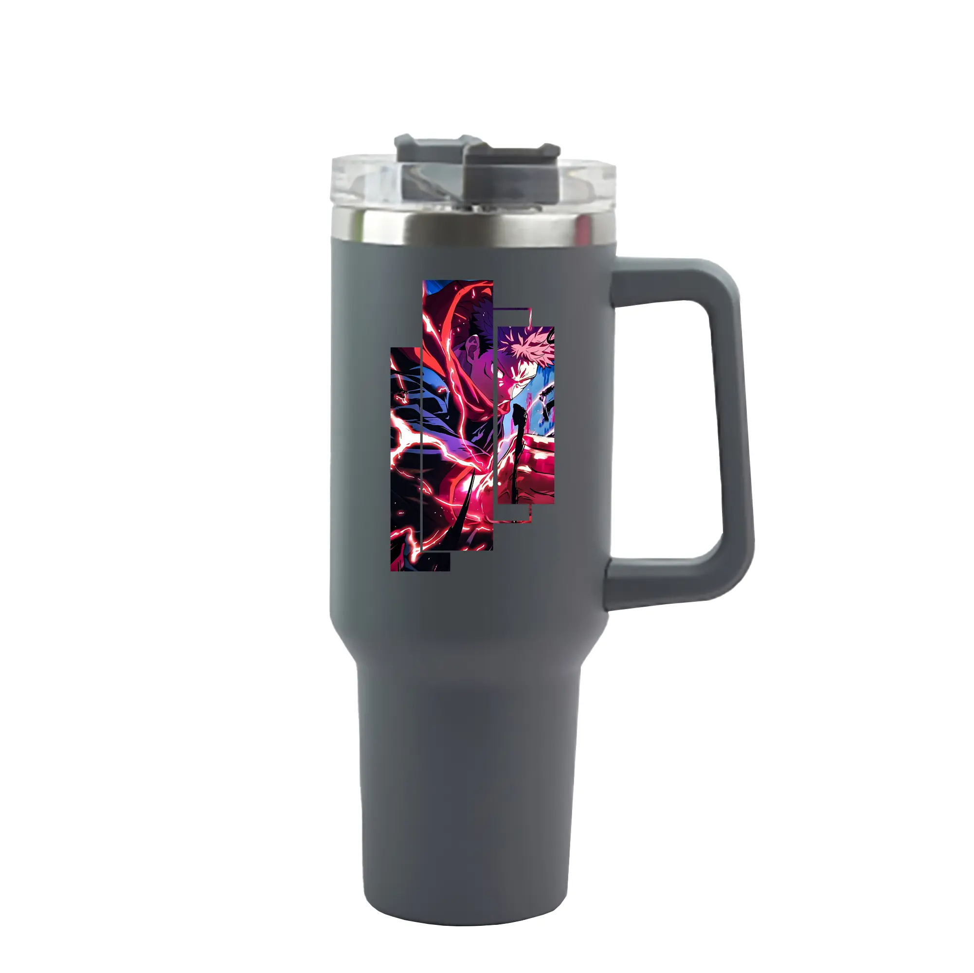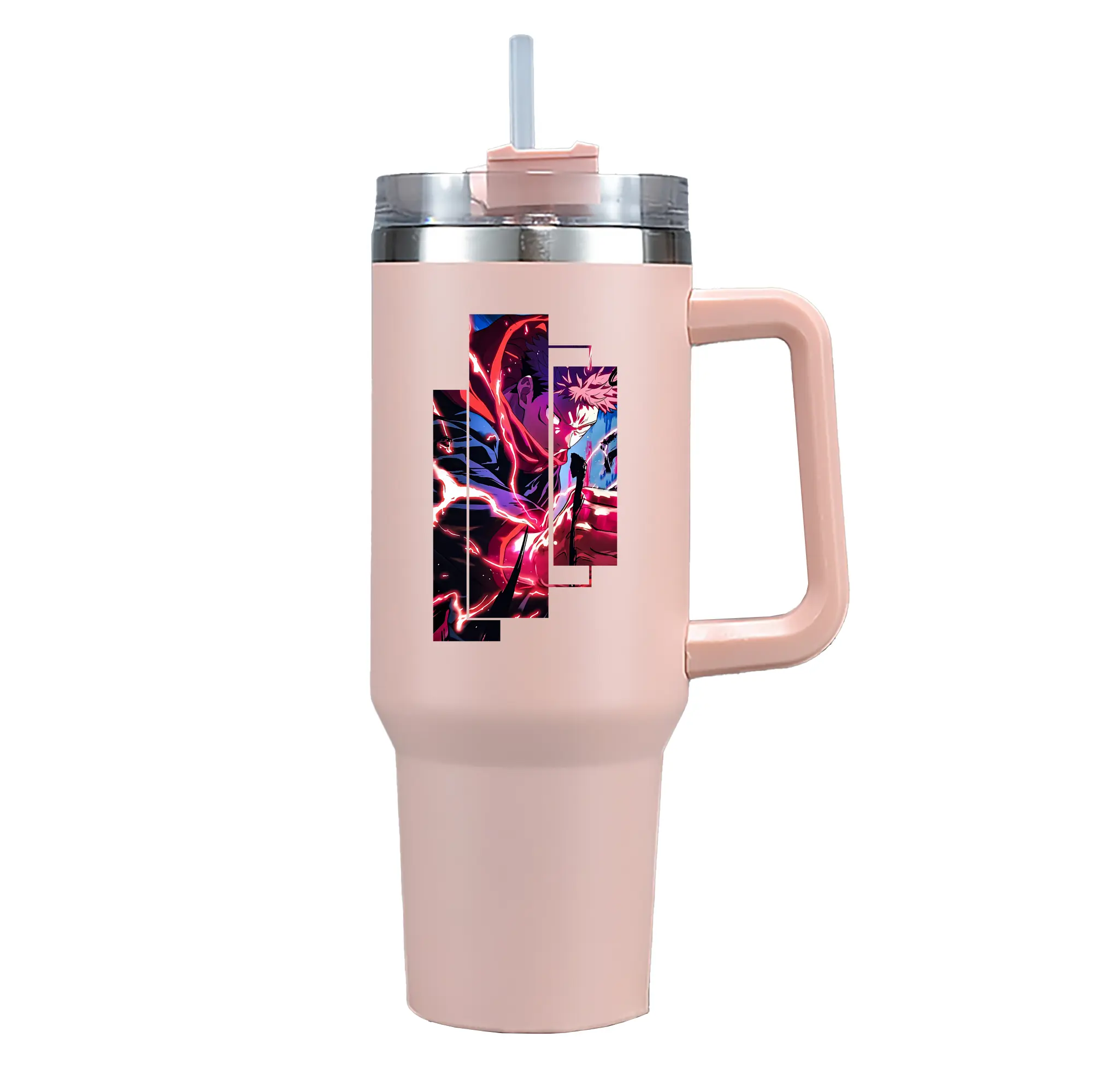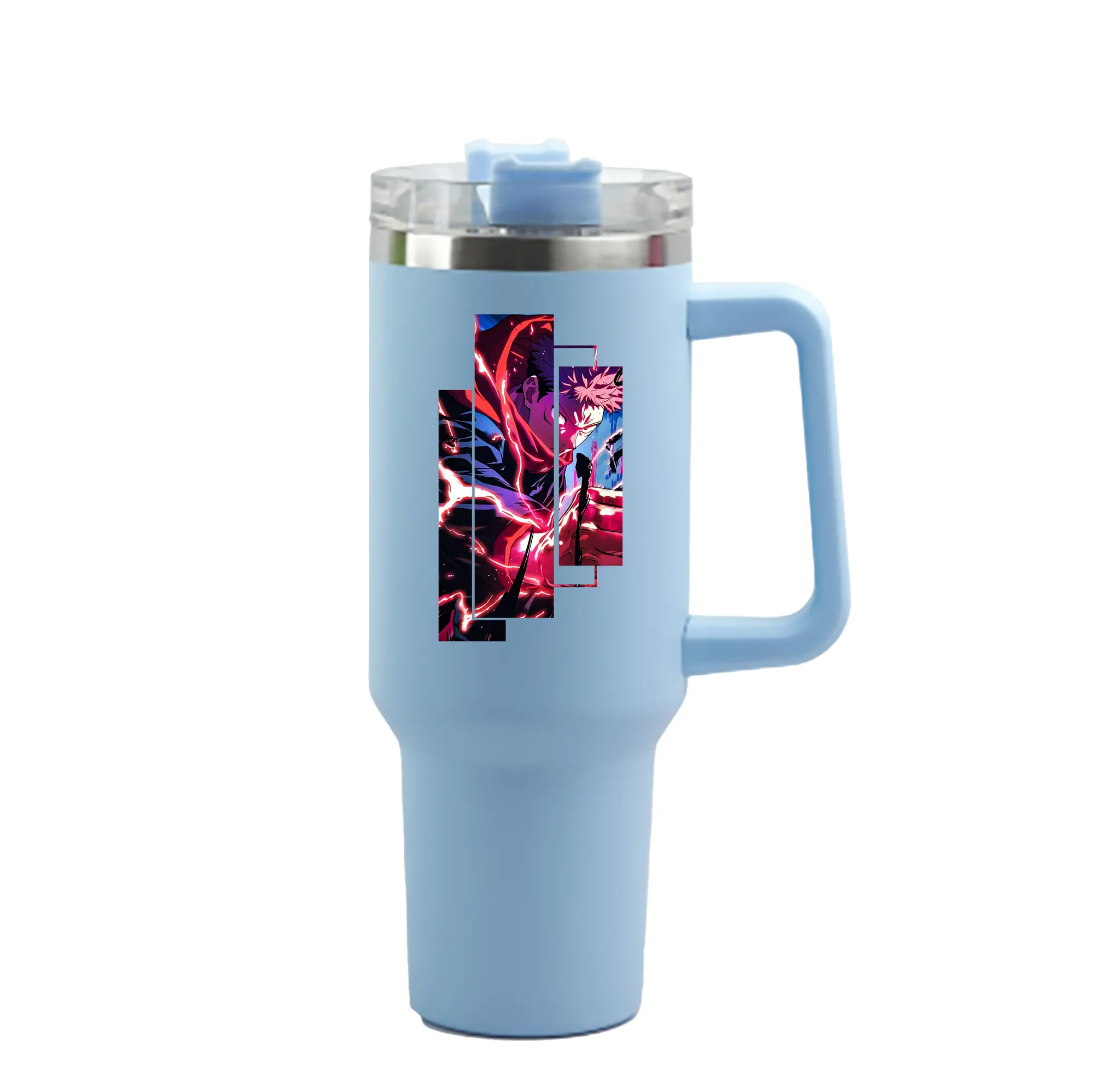 呪術廻戦 グッズ,虎杖 悠仁 - 1200mL 車用タンブラー ・ クリスタルステッカー ・ 304ステンレス 内側 ・ 201ステンレス 外側 ・ 保温 保冷 ・ ハンドル&ストロー付き ・ 通勤 ドライブ アウトドア用