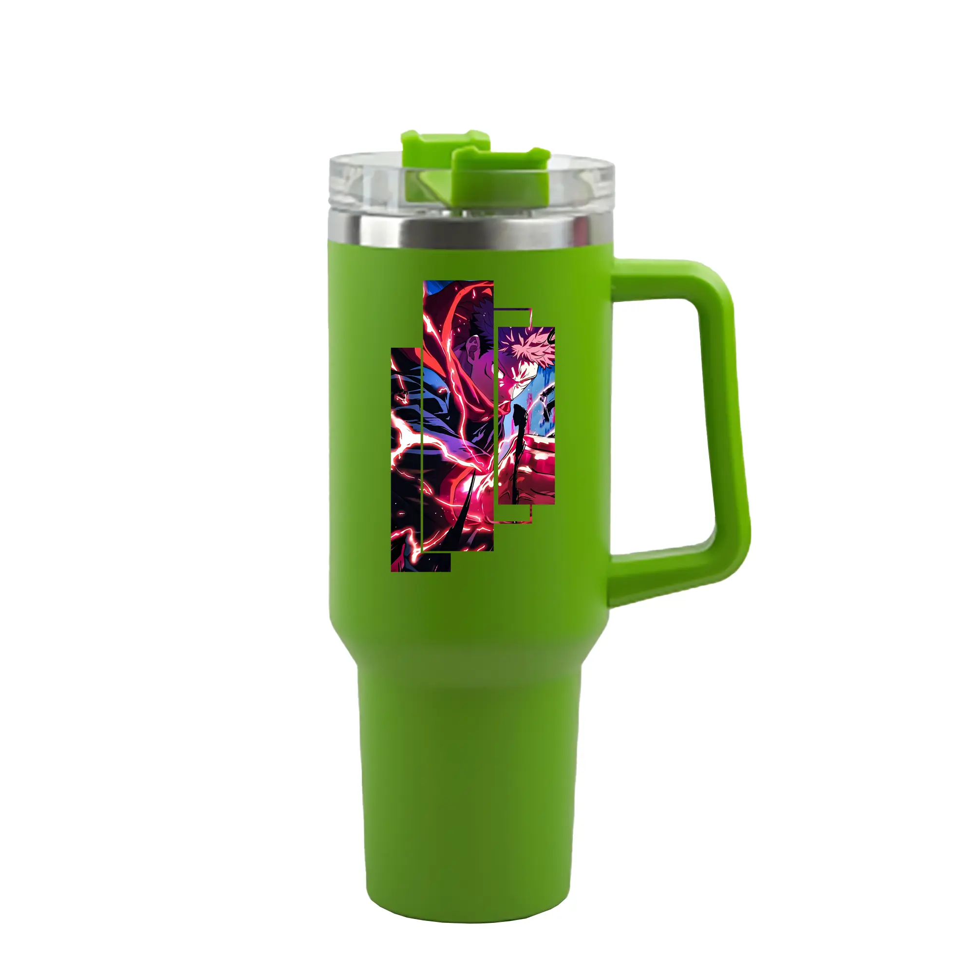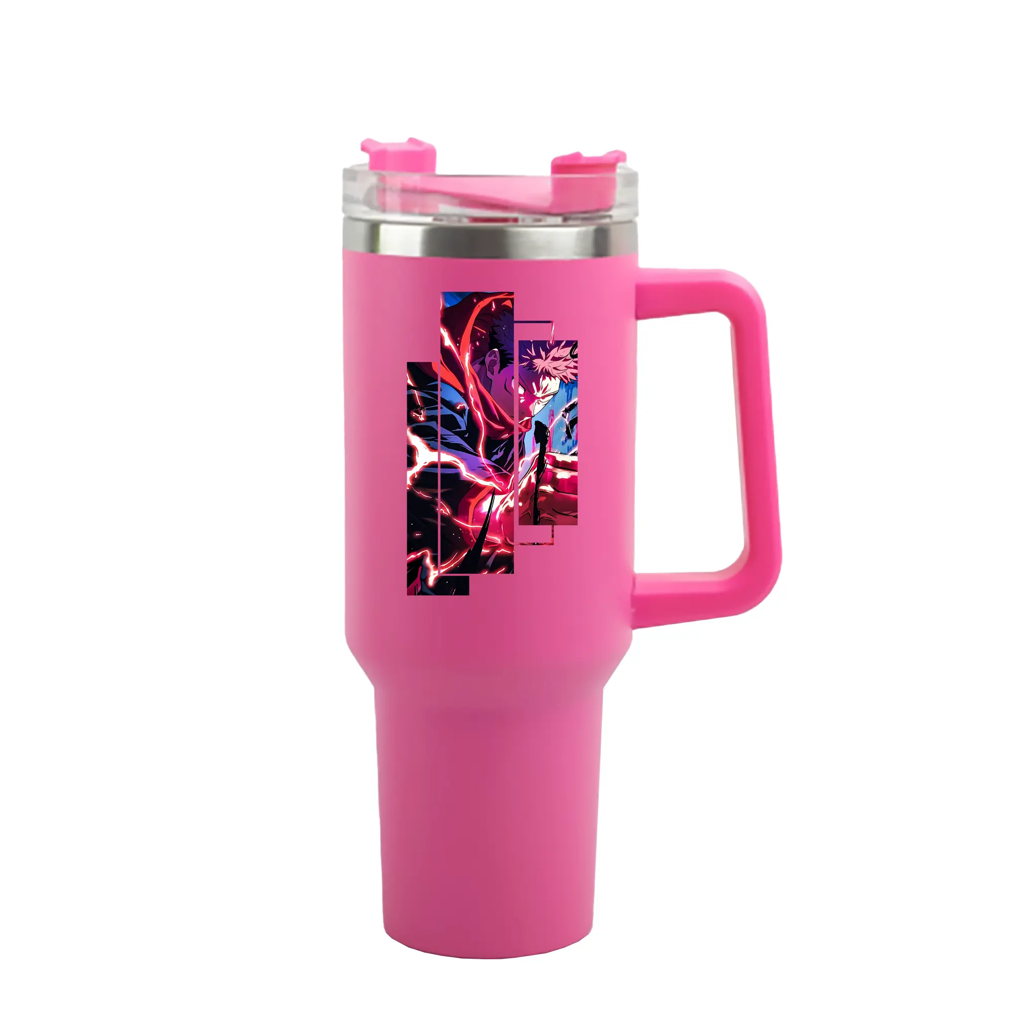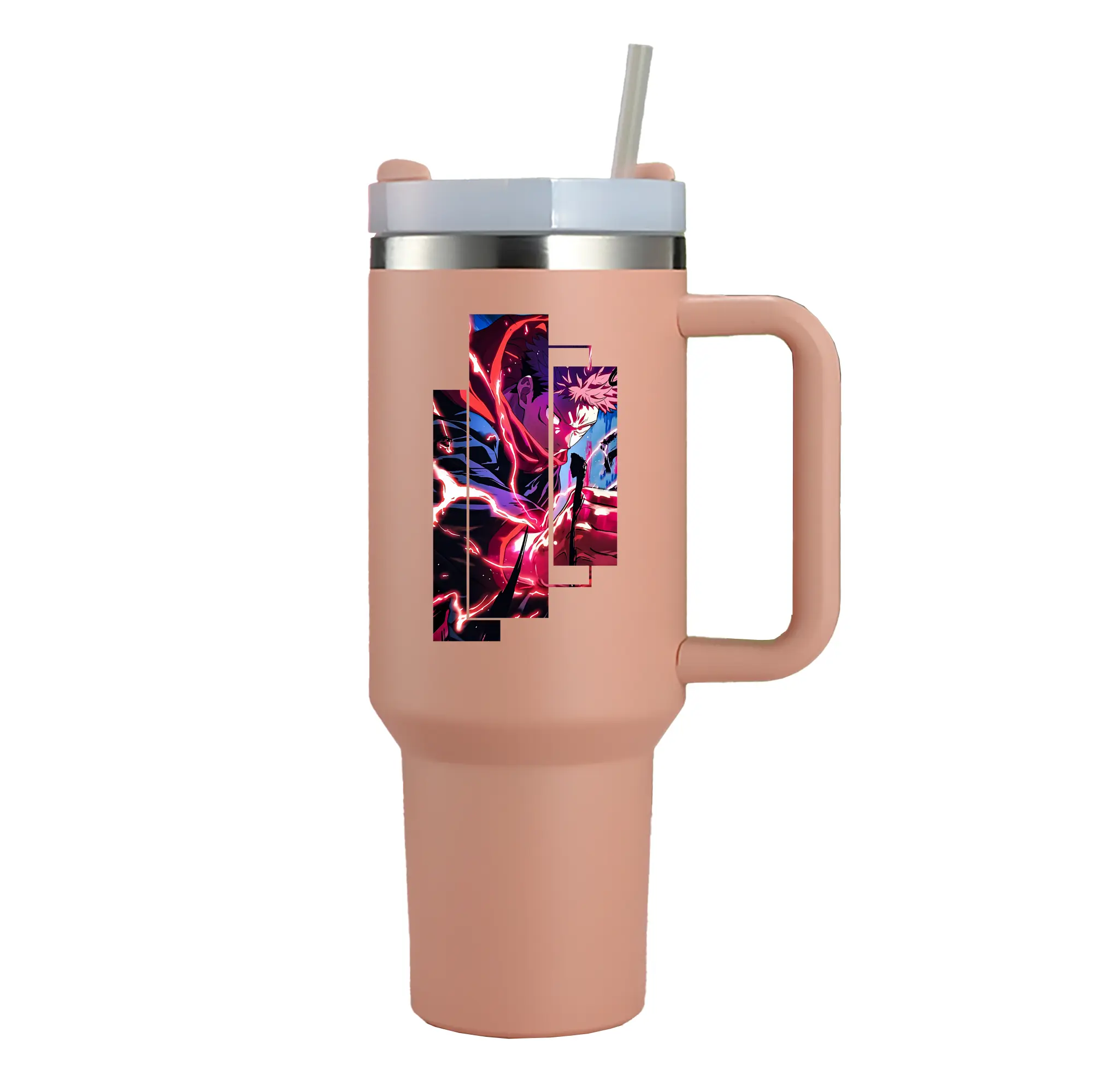 呪術廻戦 グッズ,虎杖 悠仁 - 1200mL 車用タンブラー ・ クリスタルステッカー ・ 304ステンレス 内側 ・ 201ステンレス 外側 ・ 保温 保冷 ・ ハンドル&ストロー付き ・ 通勤 ドライブ アウトドア用