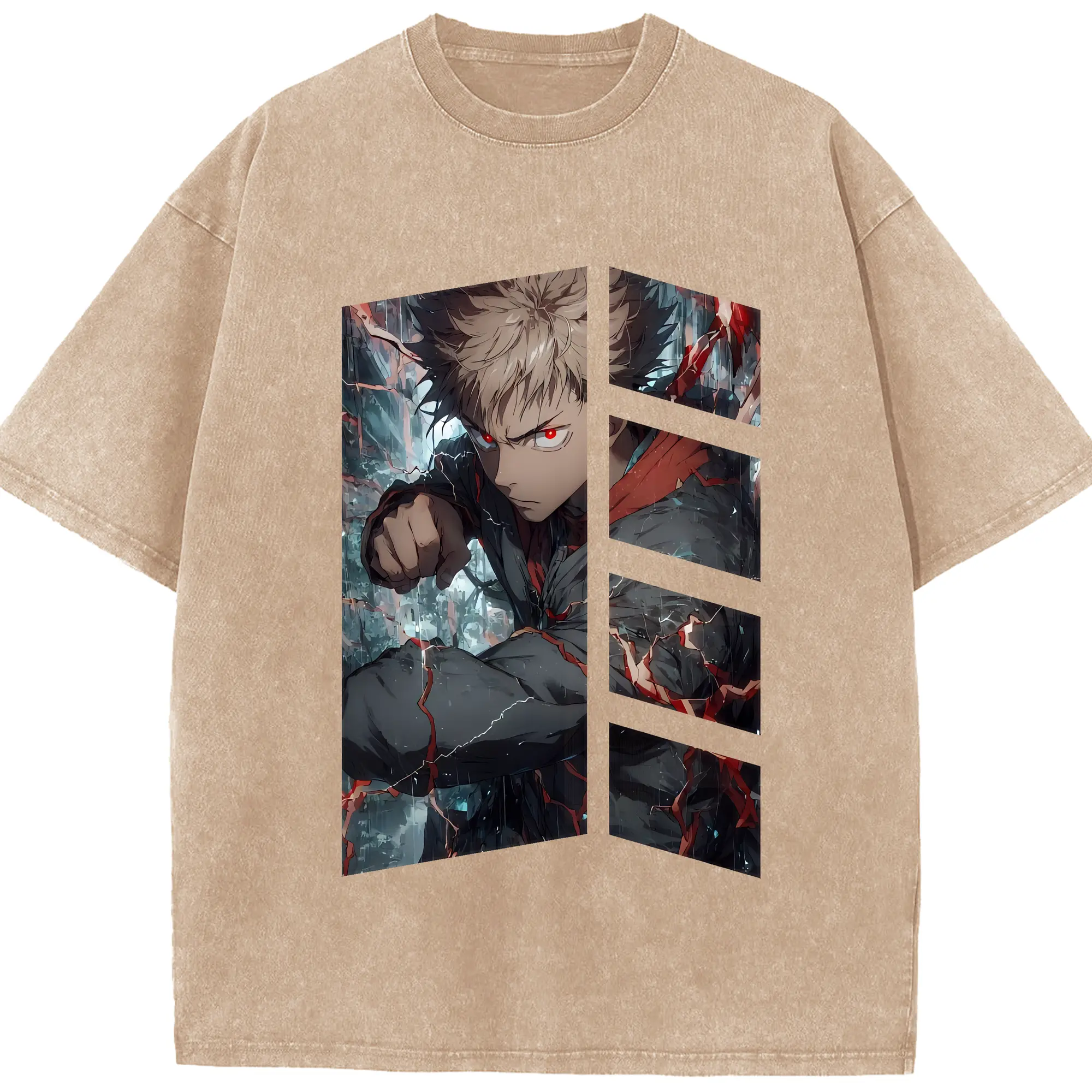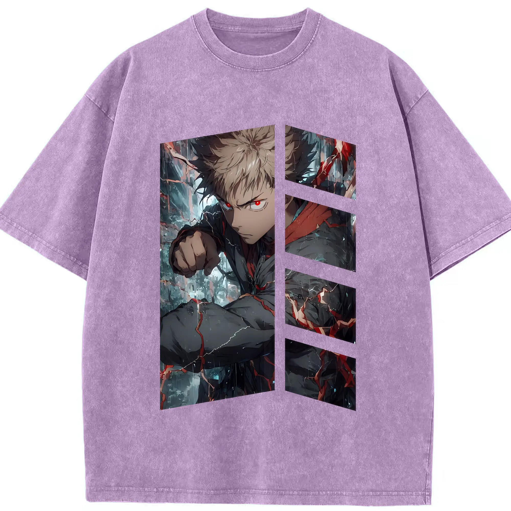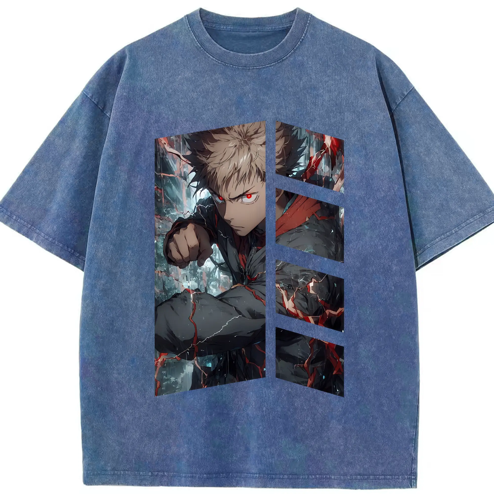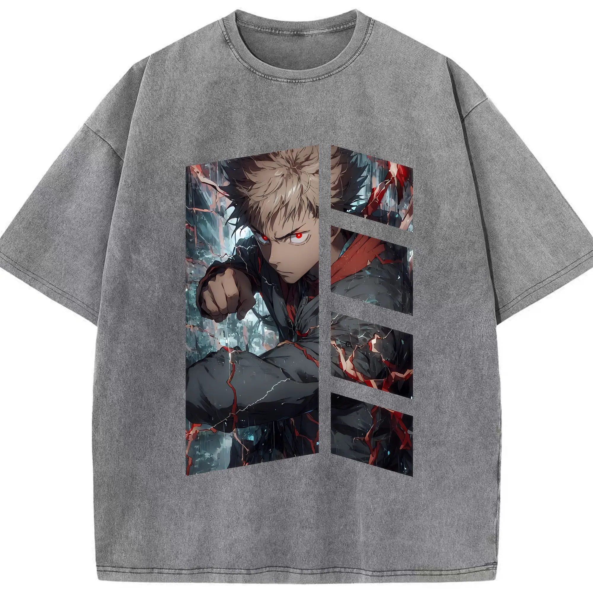 呪術廻戦 グッズ,虎杖 悠仁 - 綿100% 半袖Tシャツ ・ フロントプリント ・ 快適 通気性 ・ 日常使い 散歩 スポーツ用