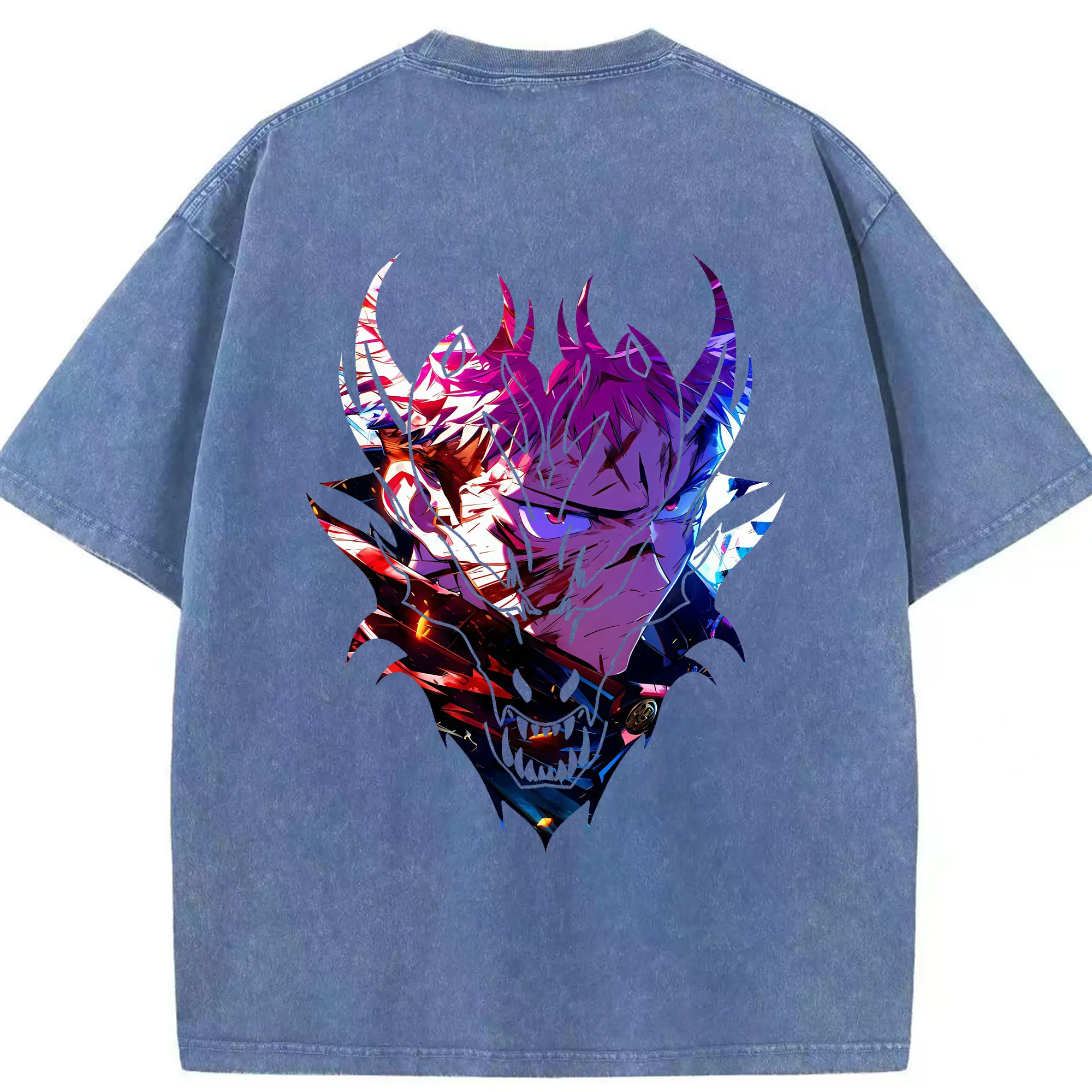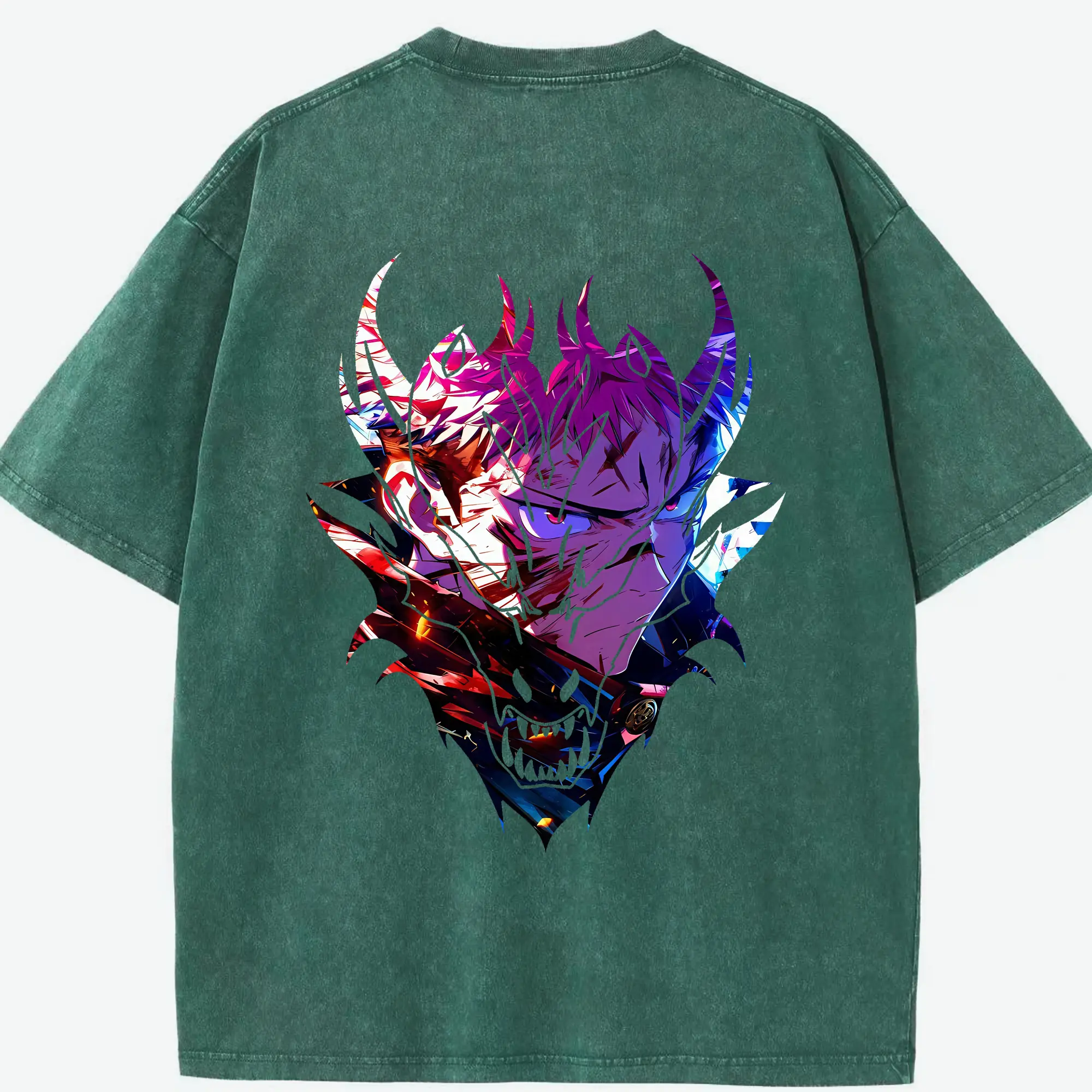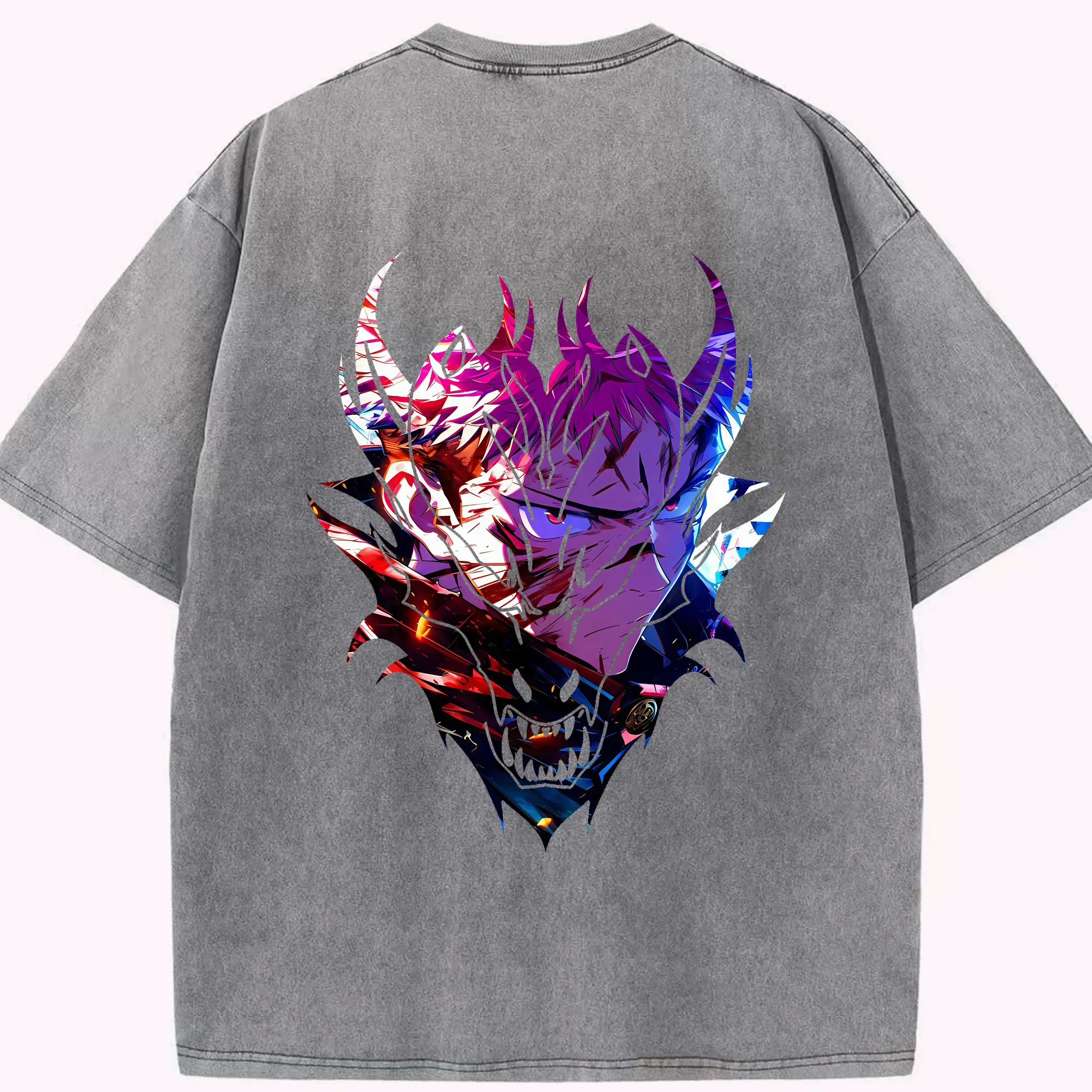 呪術廻戦 グッズ,両面宿儺 - 綿100% ヴィンテージ風 半袖Tシャツ ・ 背面プリント ・ 柔らか肌触り ・ 通気性 快適 ・ スポーツ カジュアル 外出用