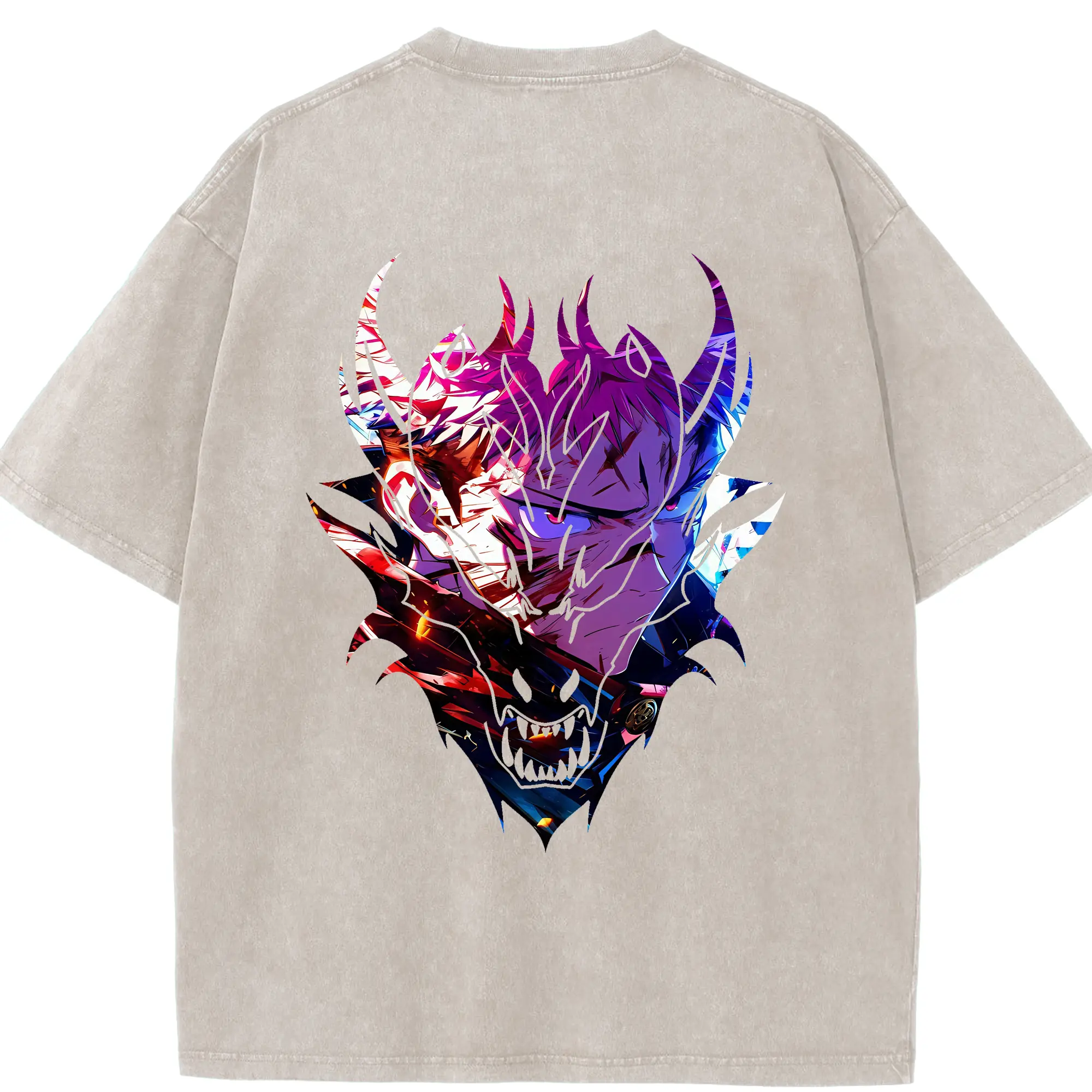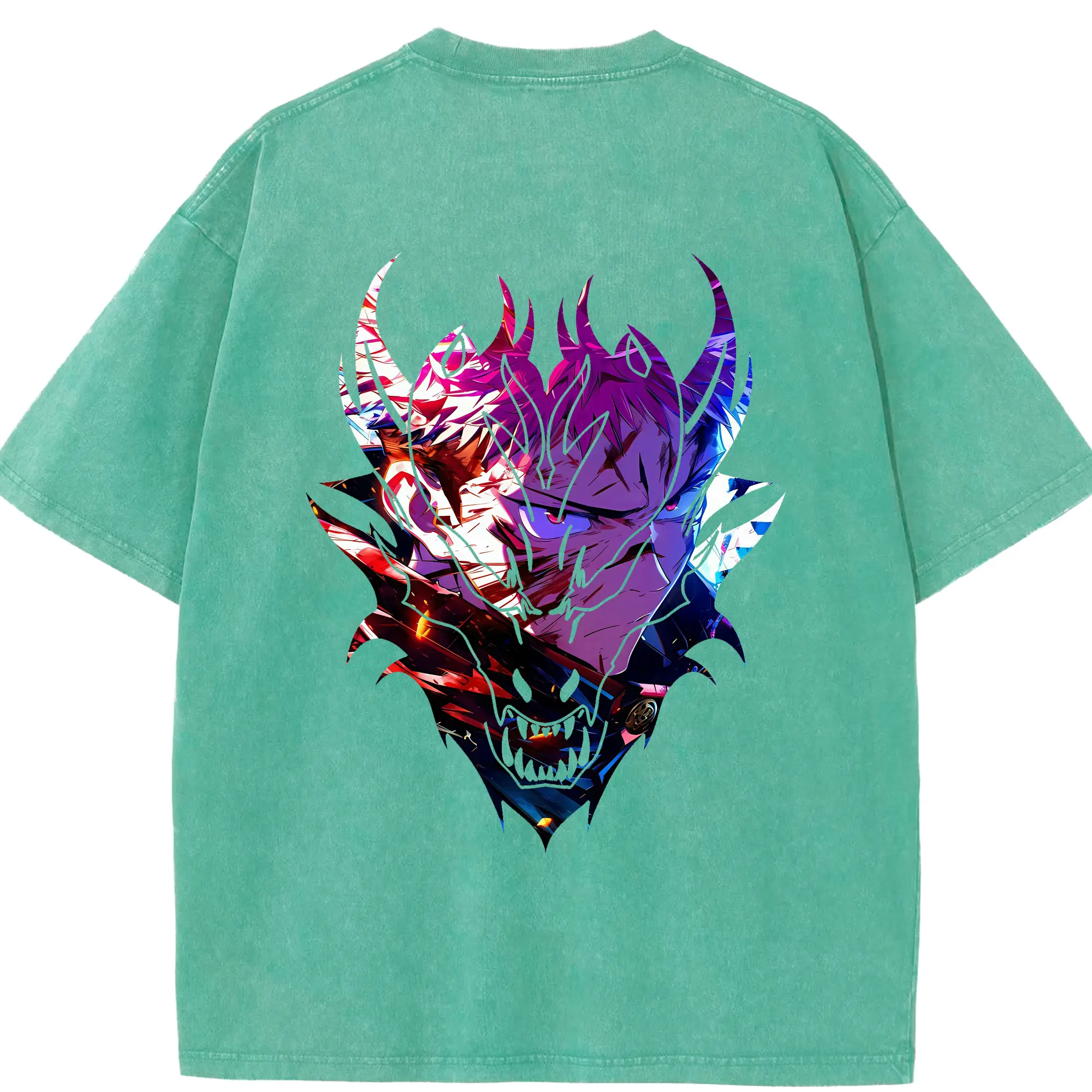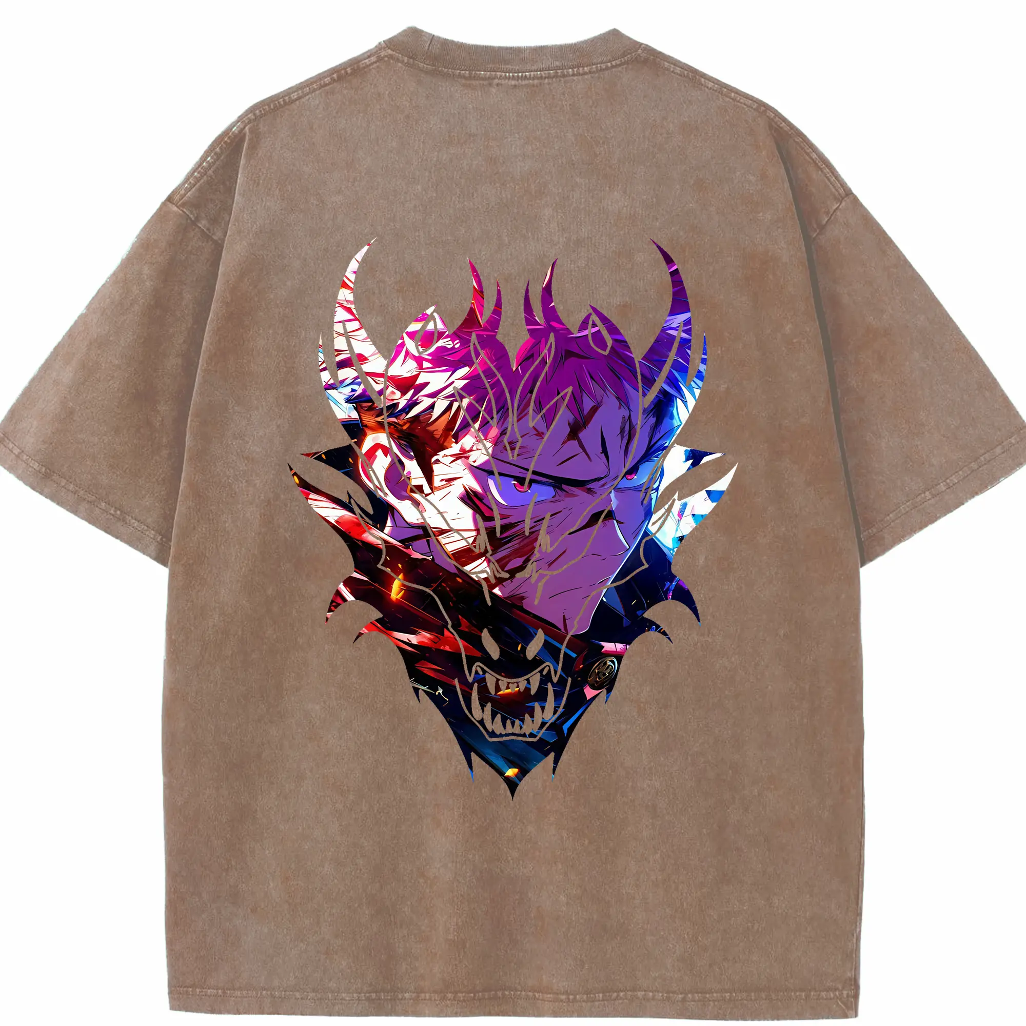 呪術廻戦 グッズ,両面宿儺 - 綿100% ヴィンテージ風 半袖Tシャツ ・ 背面プリント ・ 柔らか肌触り ・ 通気性 快適 ・ スポーツ カジュアル 外出用
