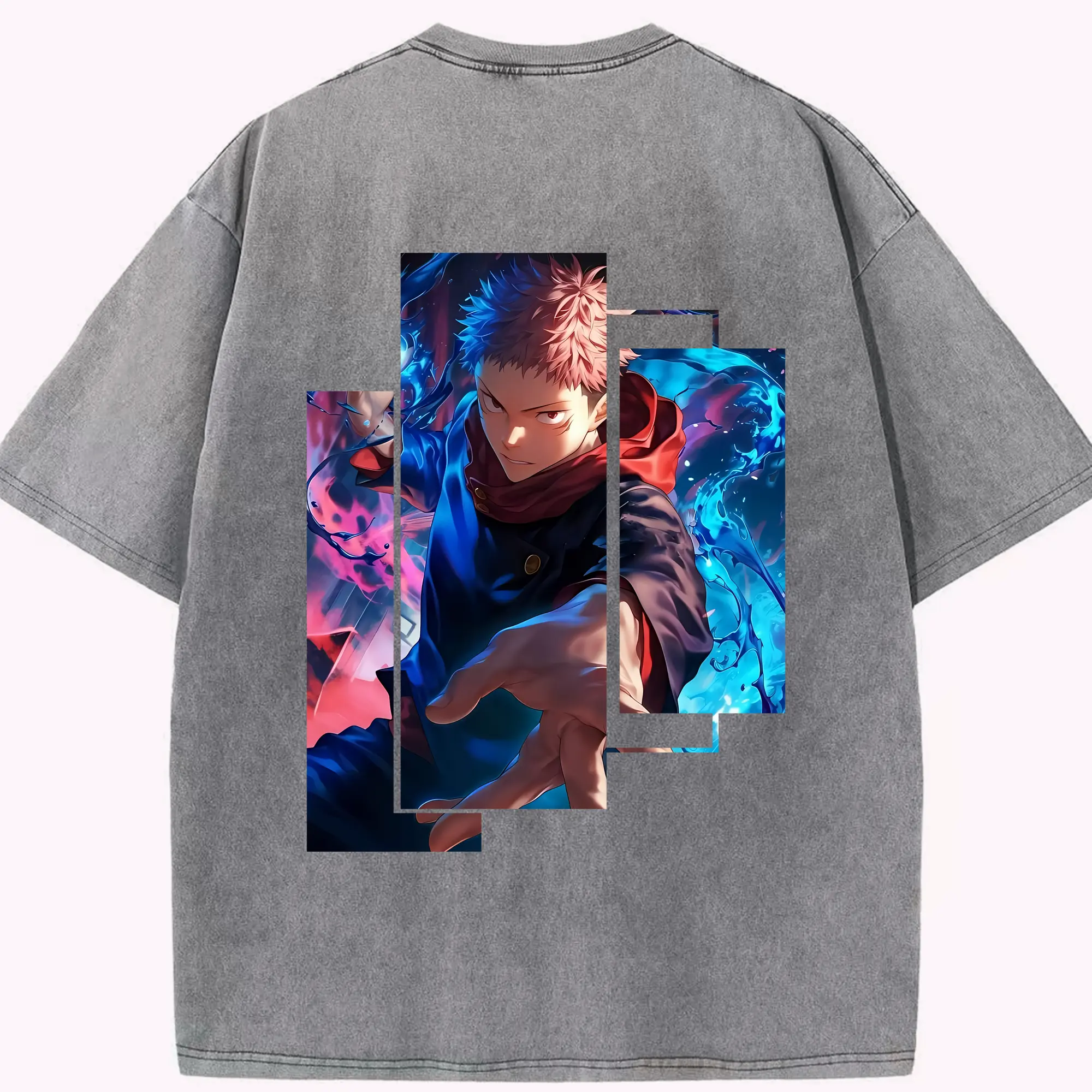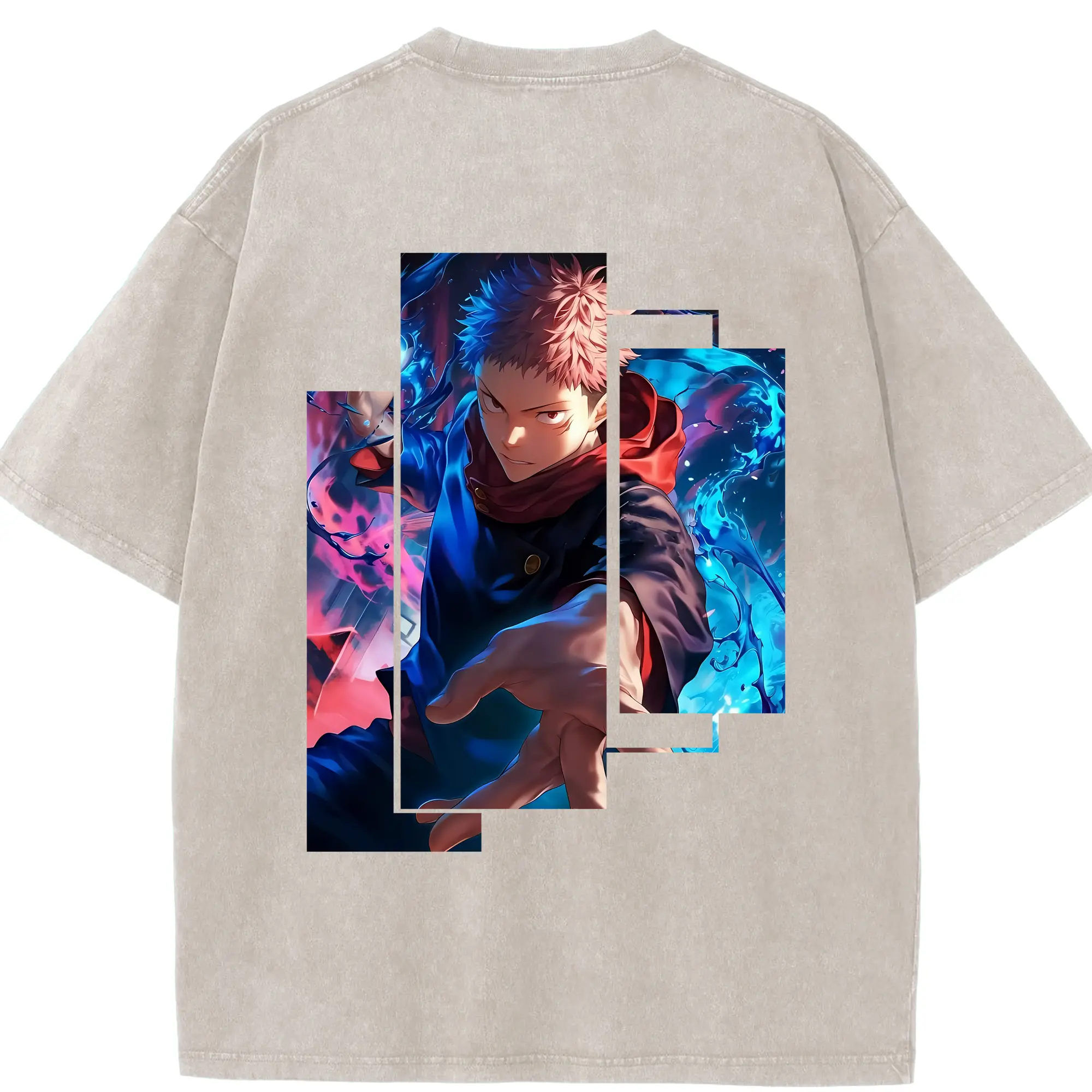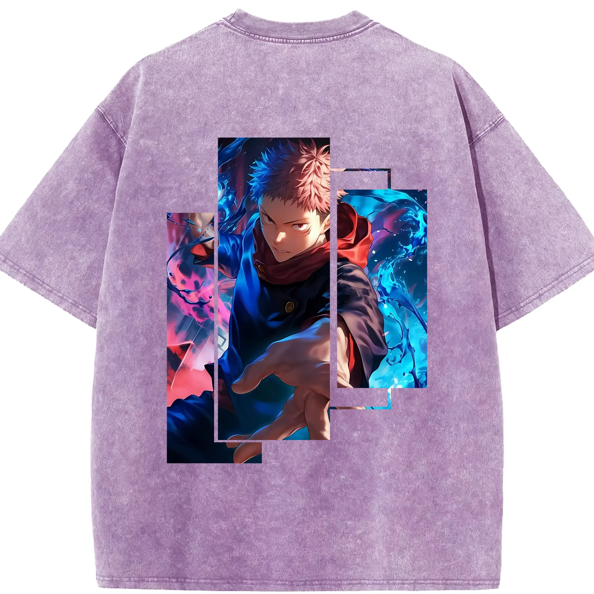 呪術廻戦 グッズ,虎杖 悠仁 - 綿100% 半袖Tシャツ ・ バックプリント ・ 快適 通気性 ・ 日常使い 散歩 スポーツ用