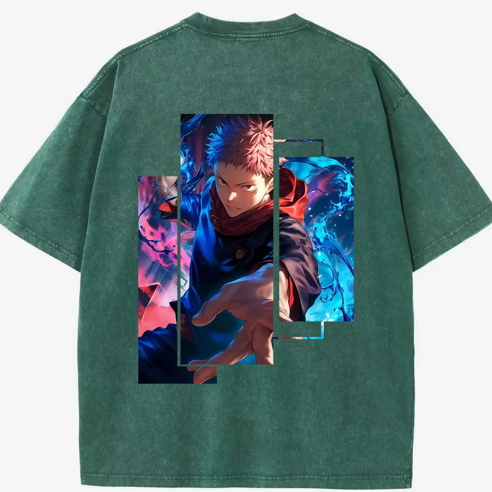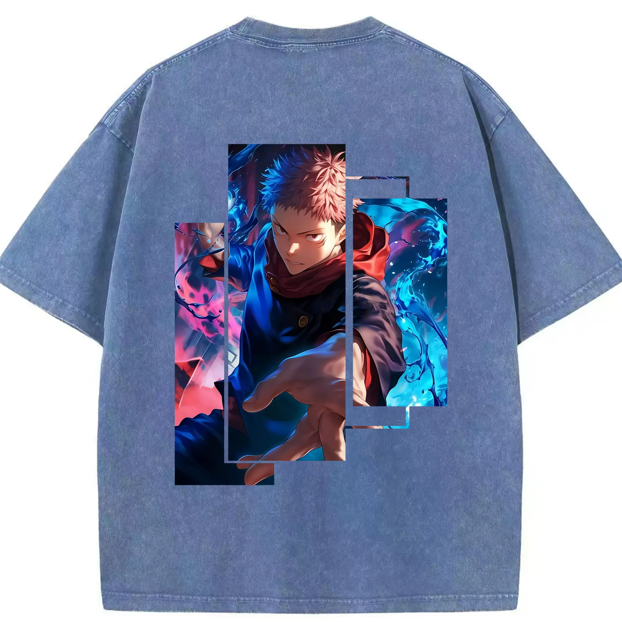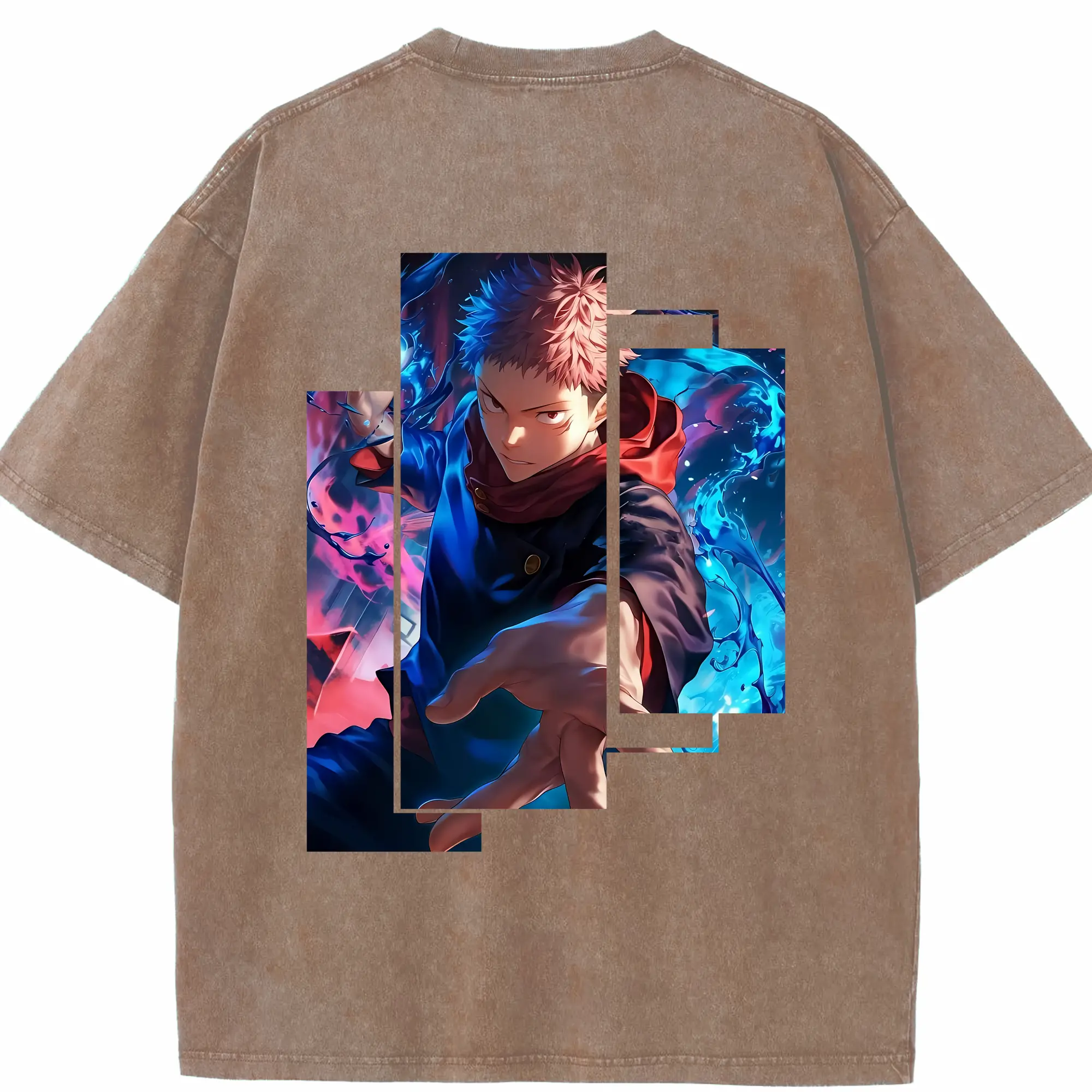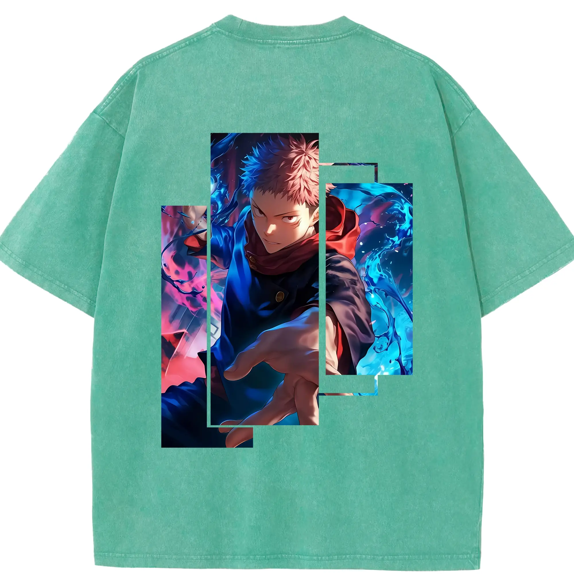 呪術廻戦 グッズ,虎杖 悠仁 - 綿100% 半袖Tシャツ ・ バックプリント ・ 快適 通気性 ・ 日常使い 散歩 スポーツ用