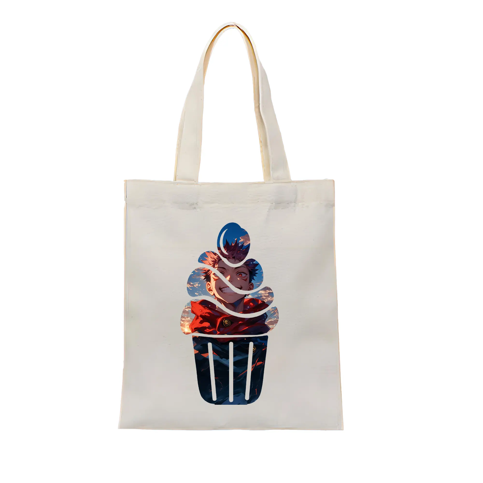 呪術廻戦 グッズ,虎杖 悠仁 - 縦型キャンバス手提げバッグ(トートバッグ) ・ キャンバス素材 ・ ショッピング用 ・ 軽量 丈夫 お手入れ簡単