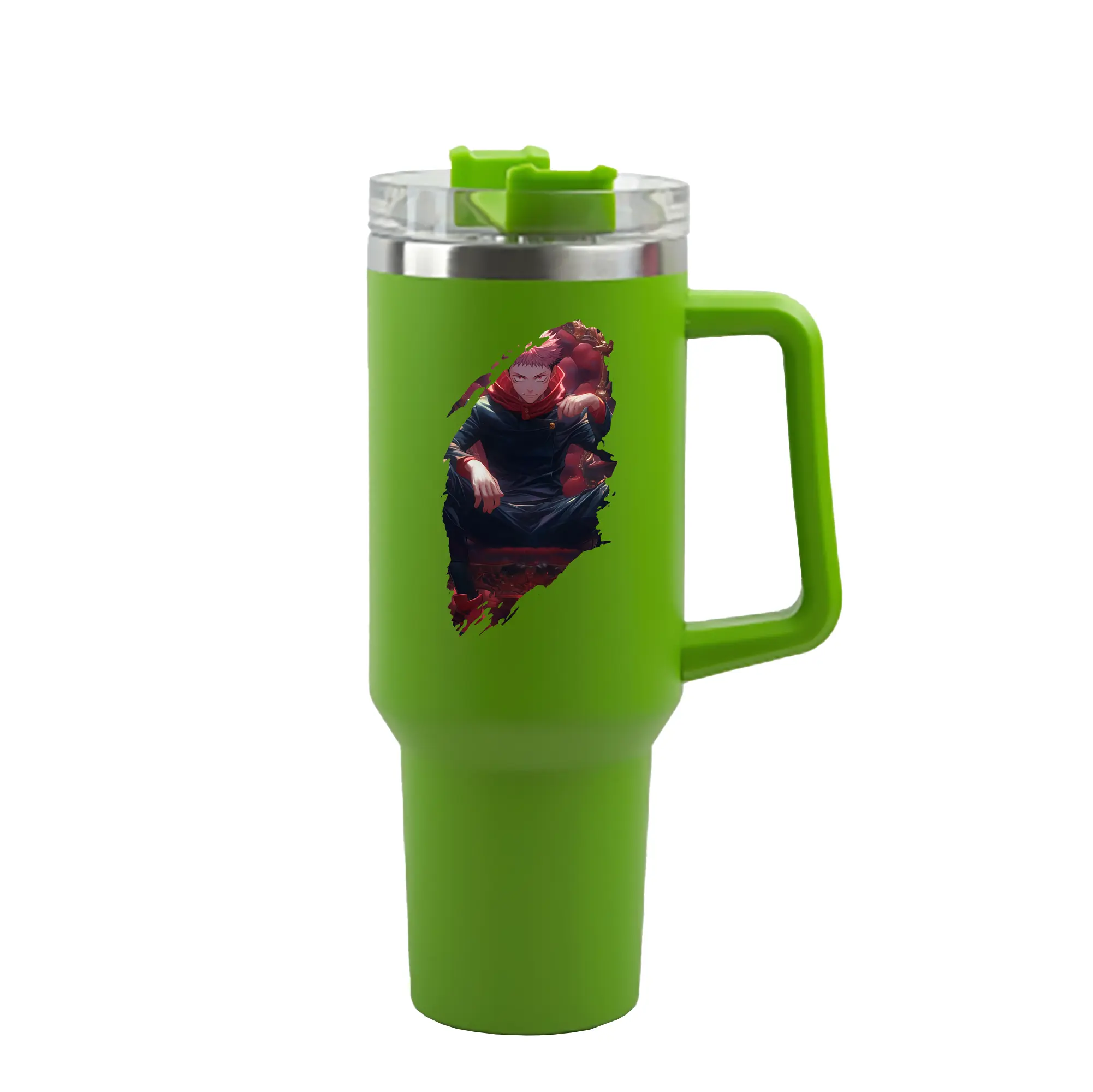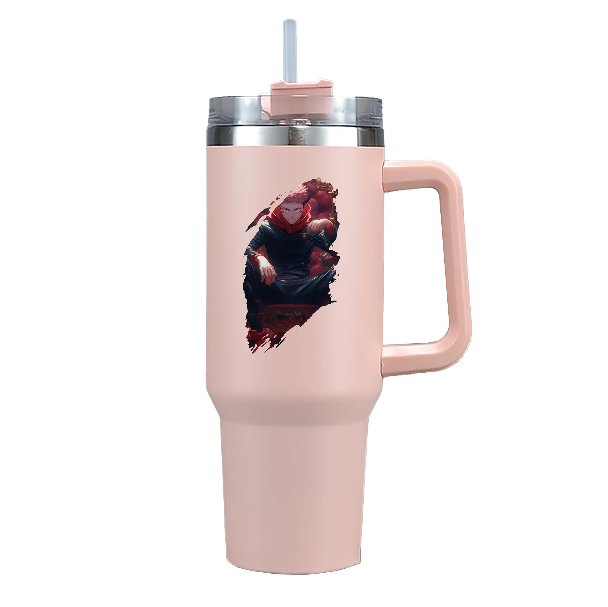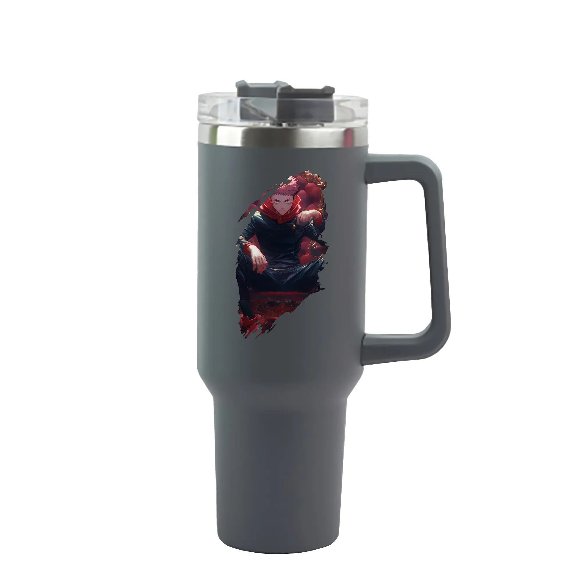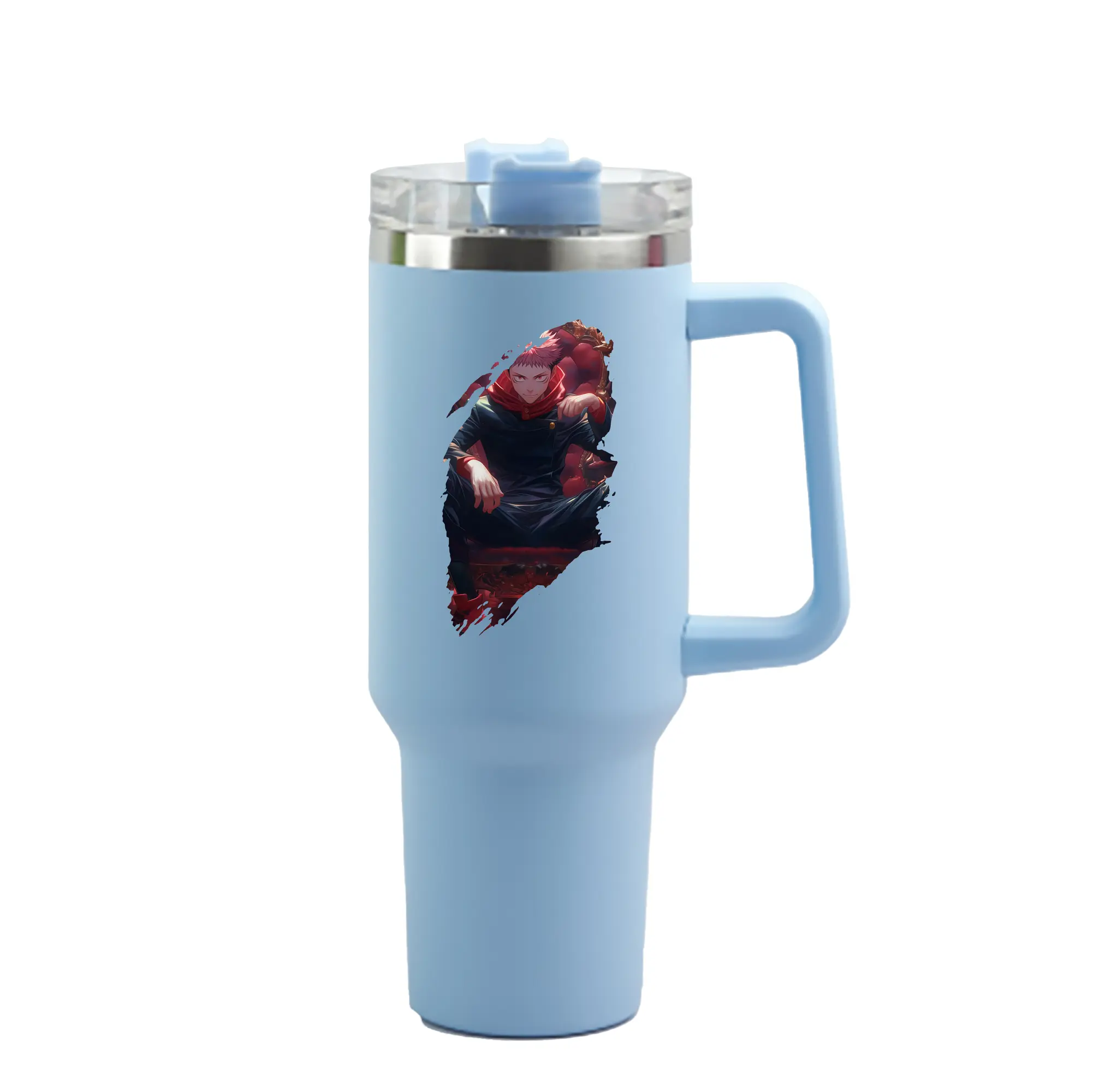 呪術廻戦 グッズ,虎杖 悠仁 - 1200mL 車用タンブラー ・ クリスタルステッカー ・ 304ステンレス 内側 ・ 201ステンレス 外側 ・ 保温 保冷 ・ ハンドル&ストロー付き ・ 通勤 ドライブ アウトドア用