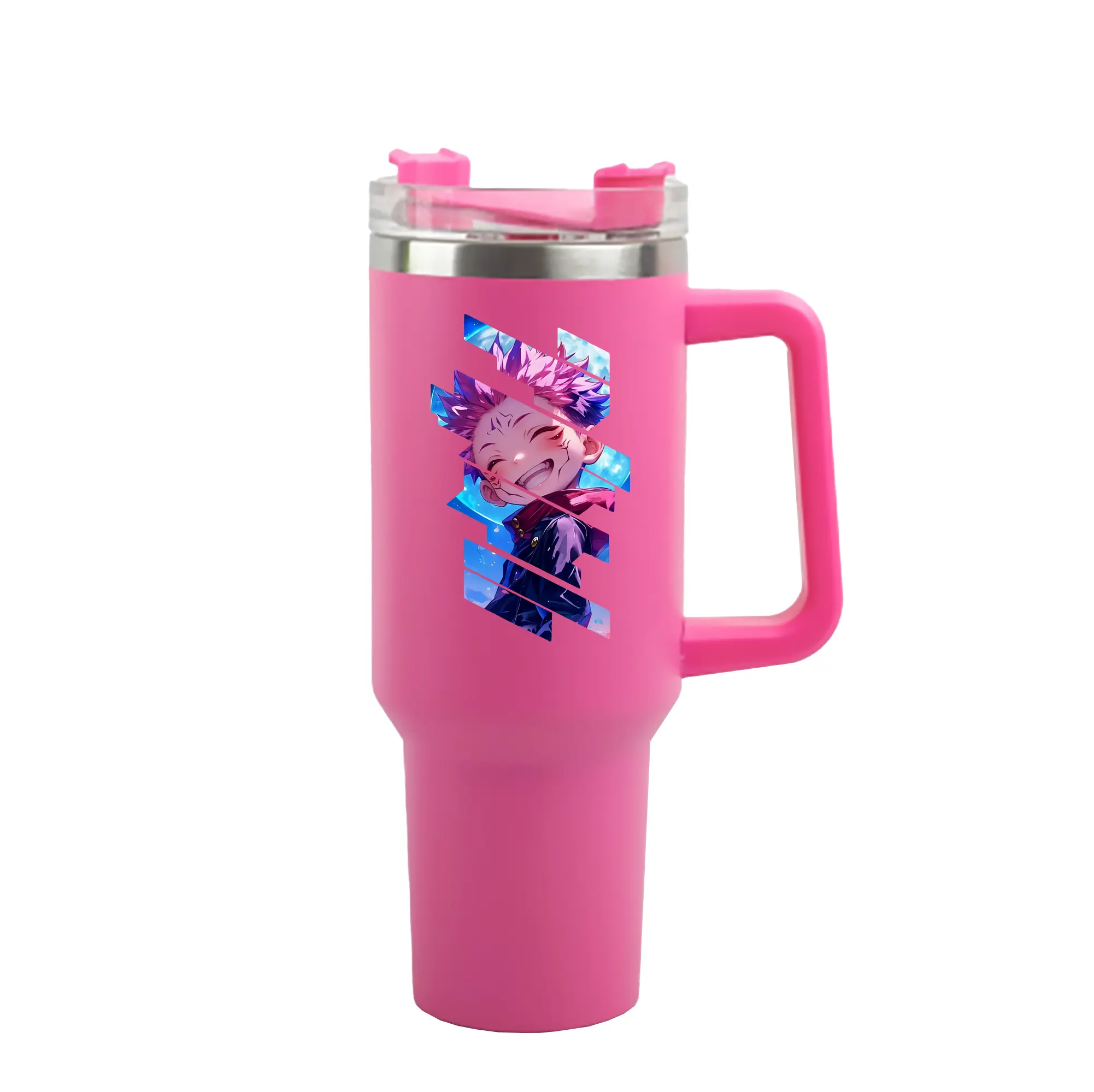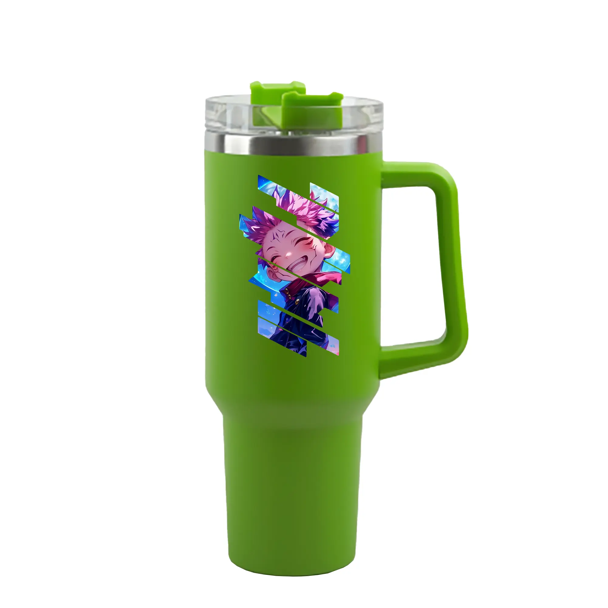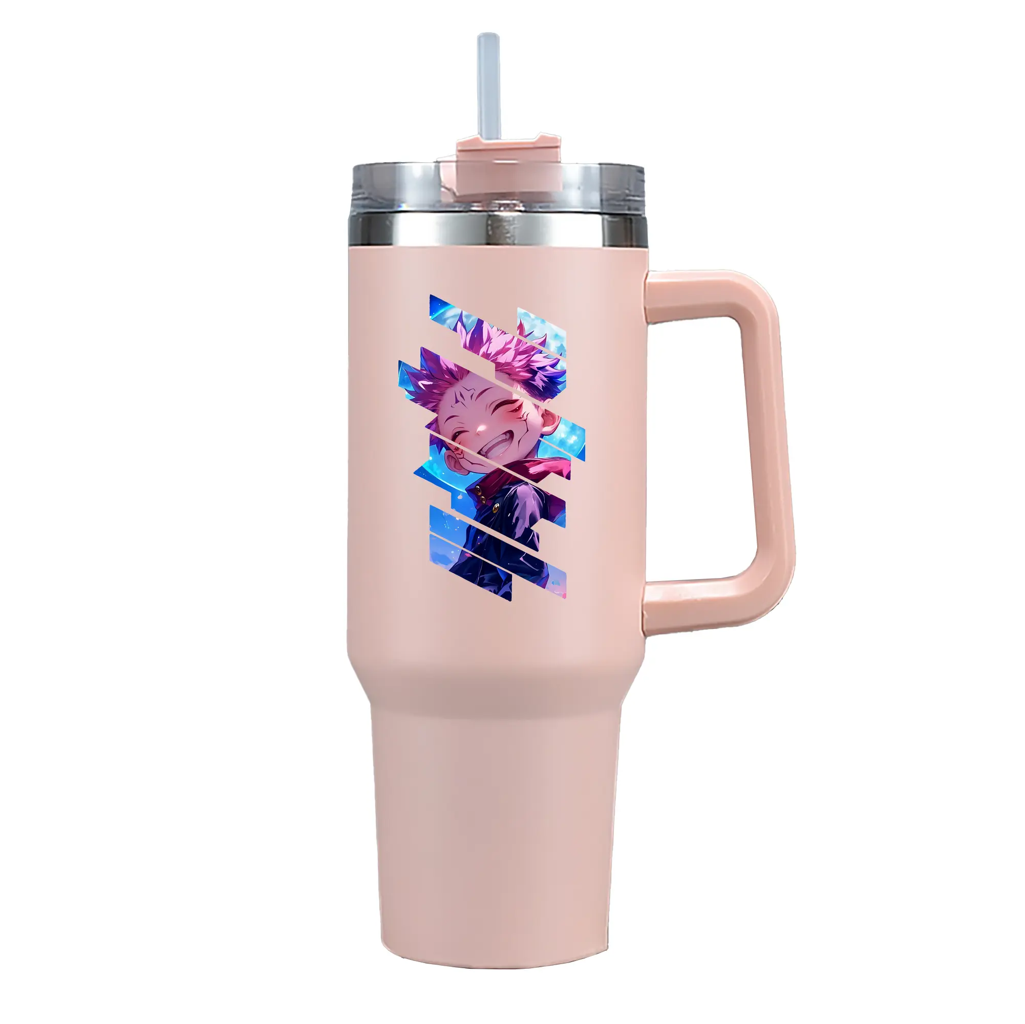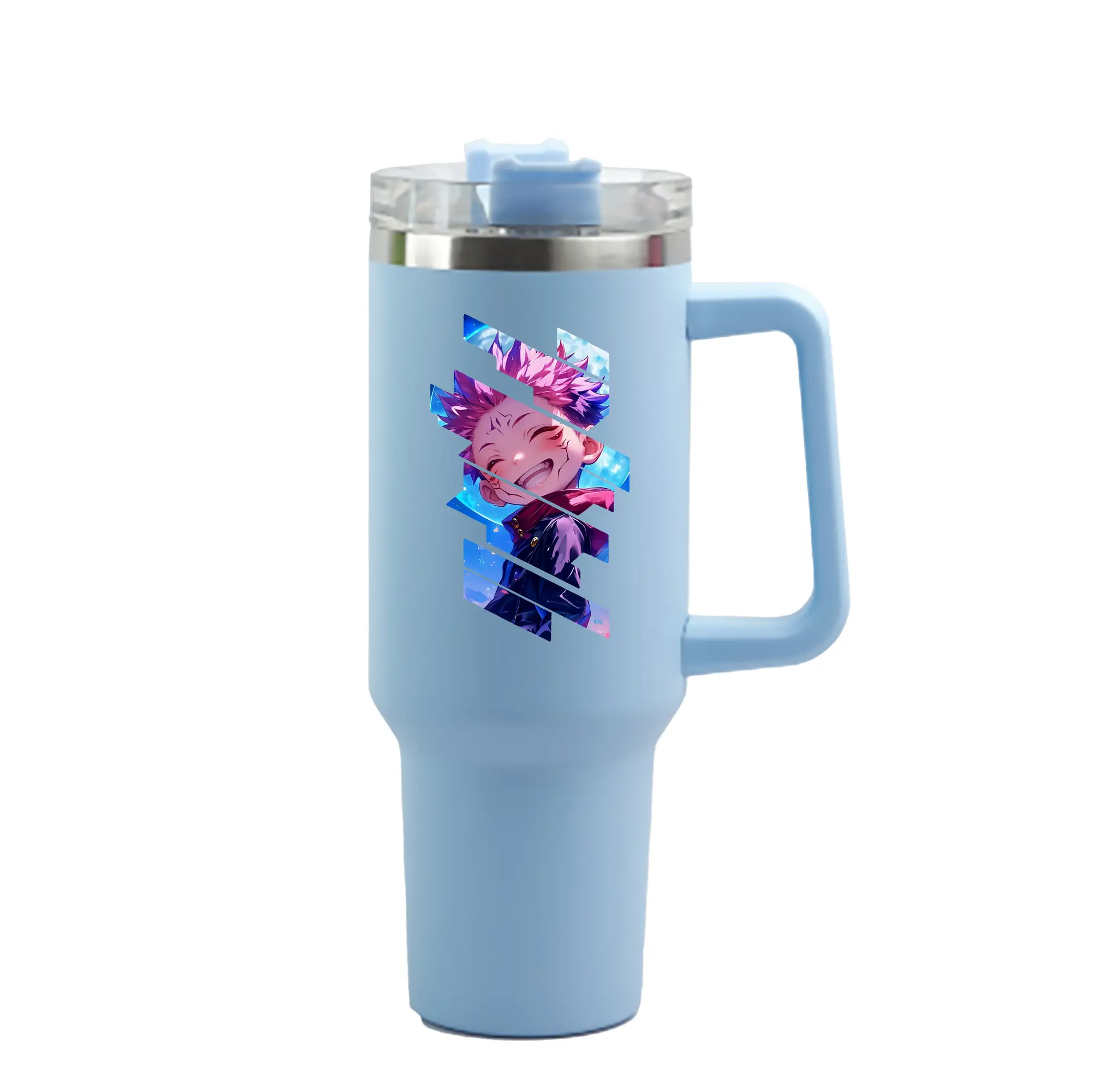 呪術廻戦 グッズ,虎杖 悠仁 - 1200mL 車用タンブラー ・ クリスタルステッカー ・ 304ステンレス 内側 ・ 201ステンレス 外側 ・ 保温 保冷 ・ ハンドル&ストロー付き ・ 通勤 ドライブ アウトドア用