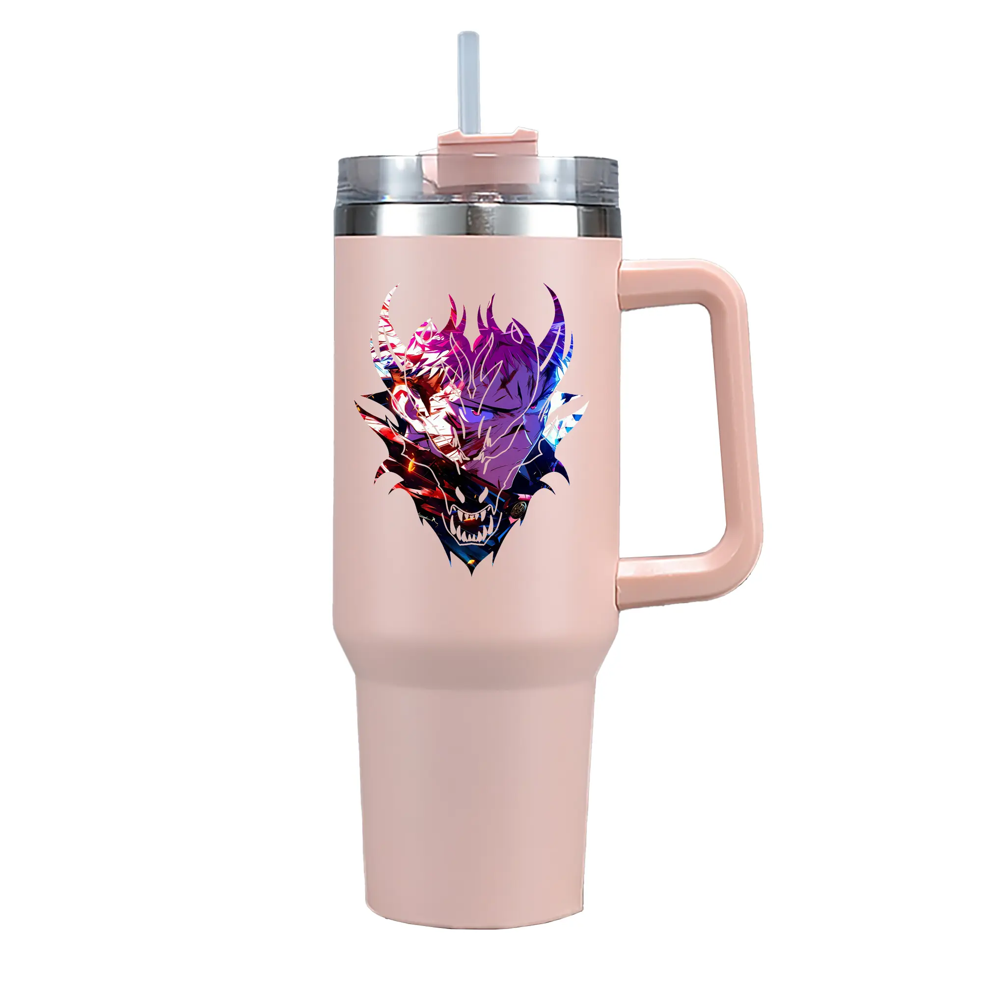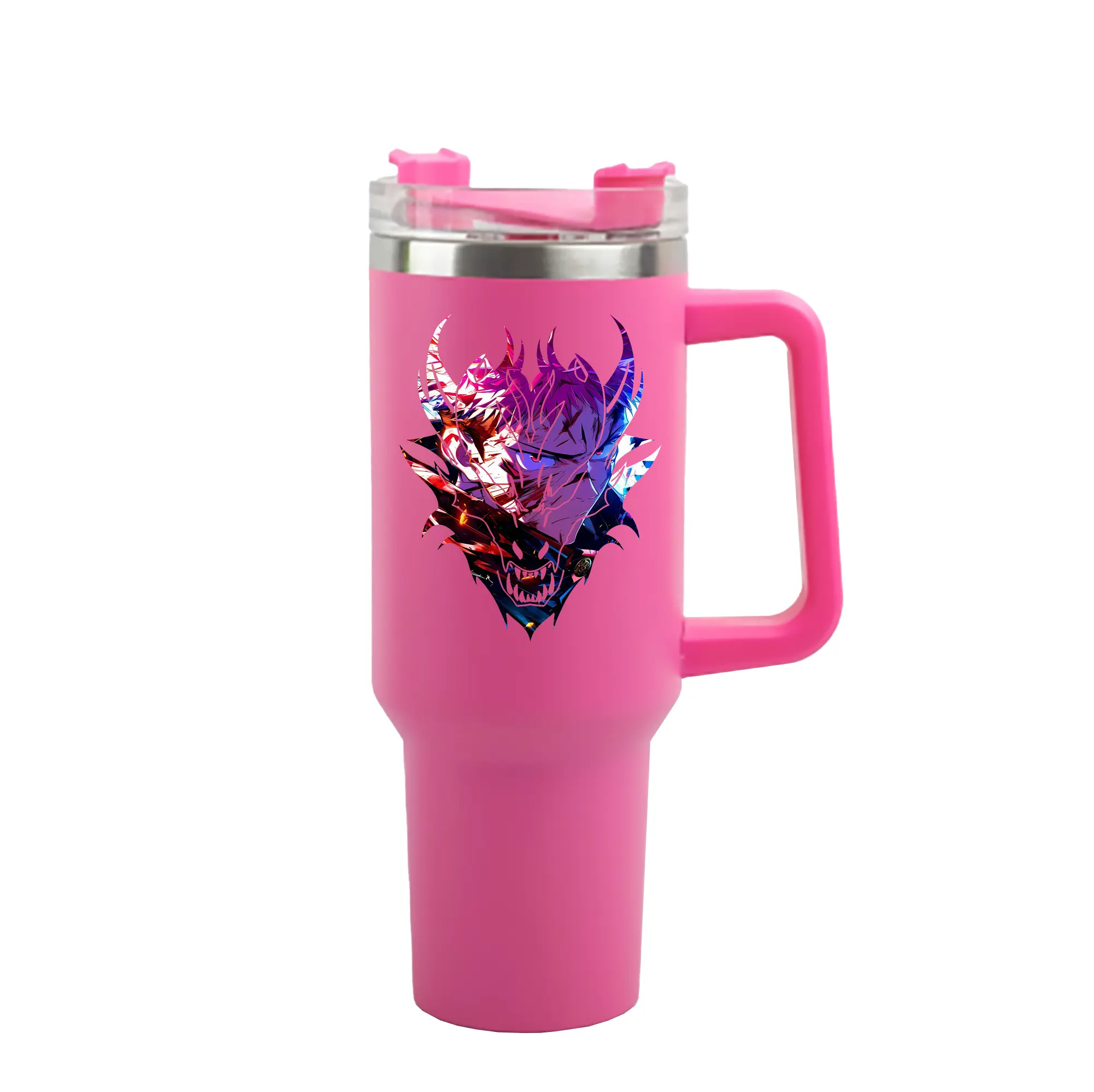 呪術廻戦 グッズ,虎杖 悠仁 - 1200mL 車用タンブラー ・ クリスタルステッカー ・ 304ステンレス 内側 ・ 201ステンレス 外側 ・ 保温 保冷 ・ ハンドル&ストロー付き ・ 通勤 ドライブ アウトドア用