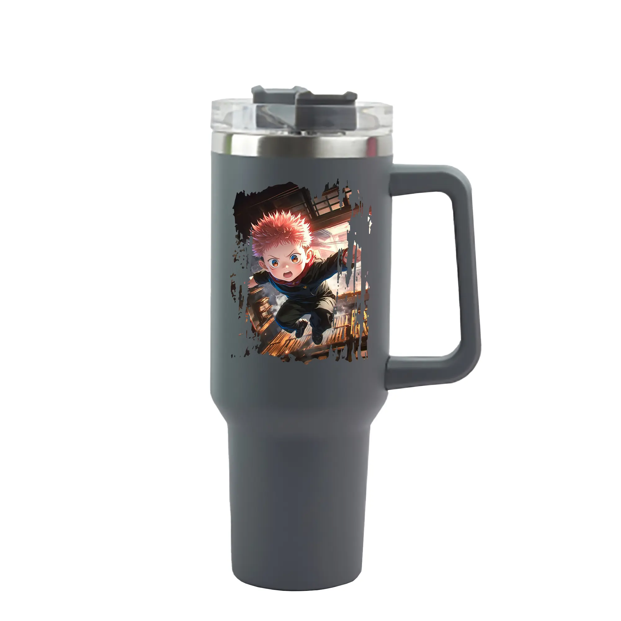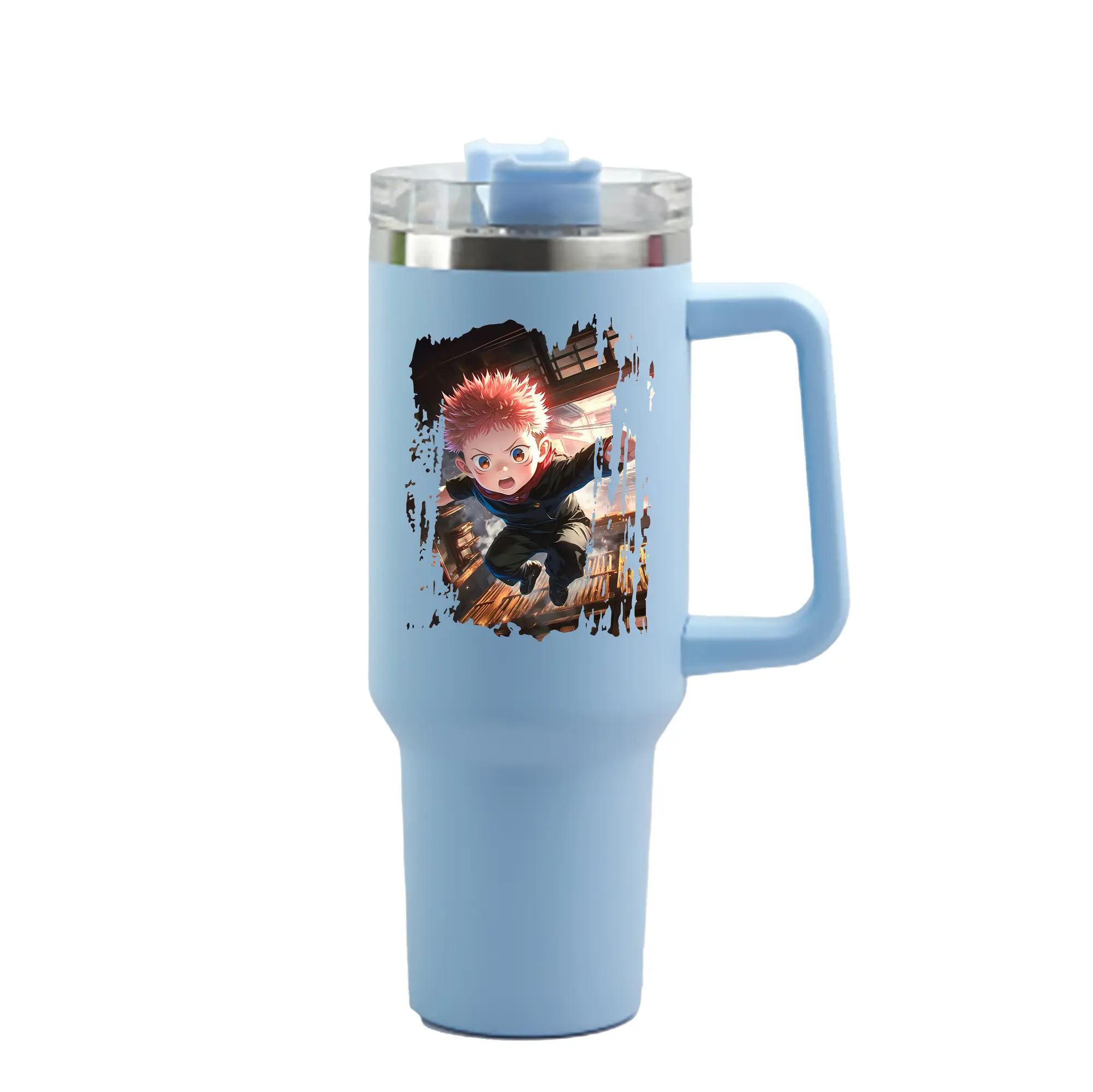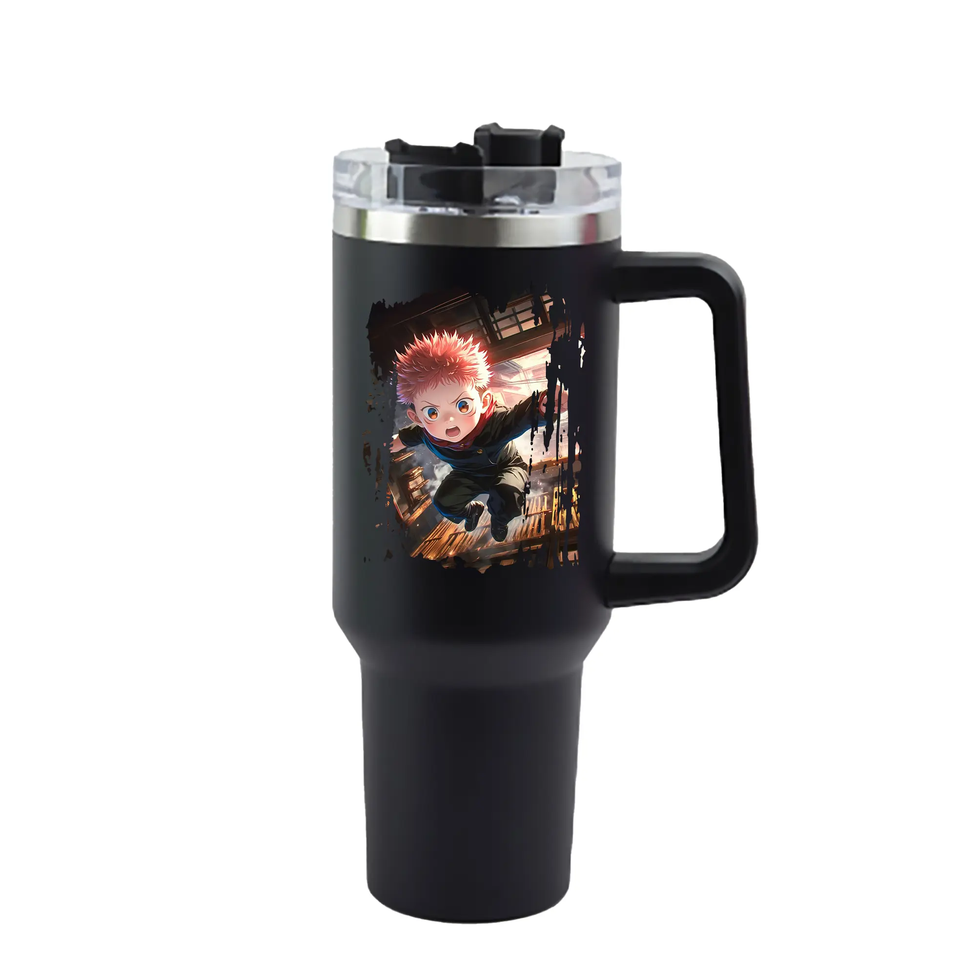 呪術廻戦 グッズ,虎杖 悠仁 - 1200mL 車用タンブラー ・ クリスタルステッカー ・ 304ステンレス 内側 ・ 201ステンレス 外側 ・ 保温 保冷 ・ ハンドル&ストロー付き ・ 通勤 ドライブ アウトドア用