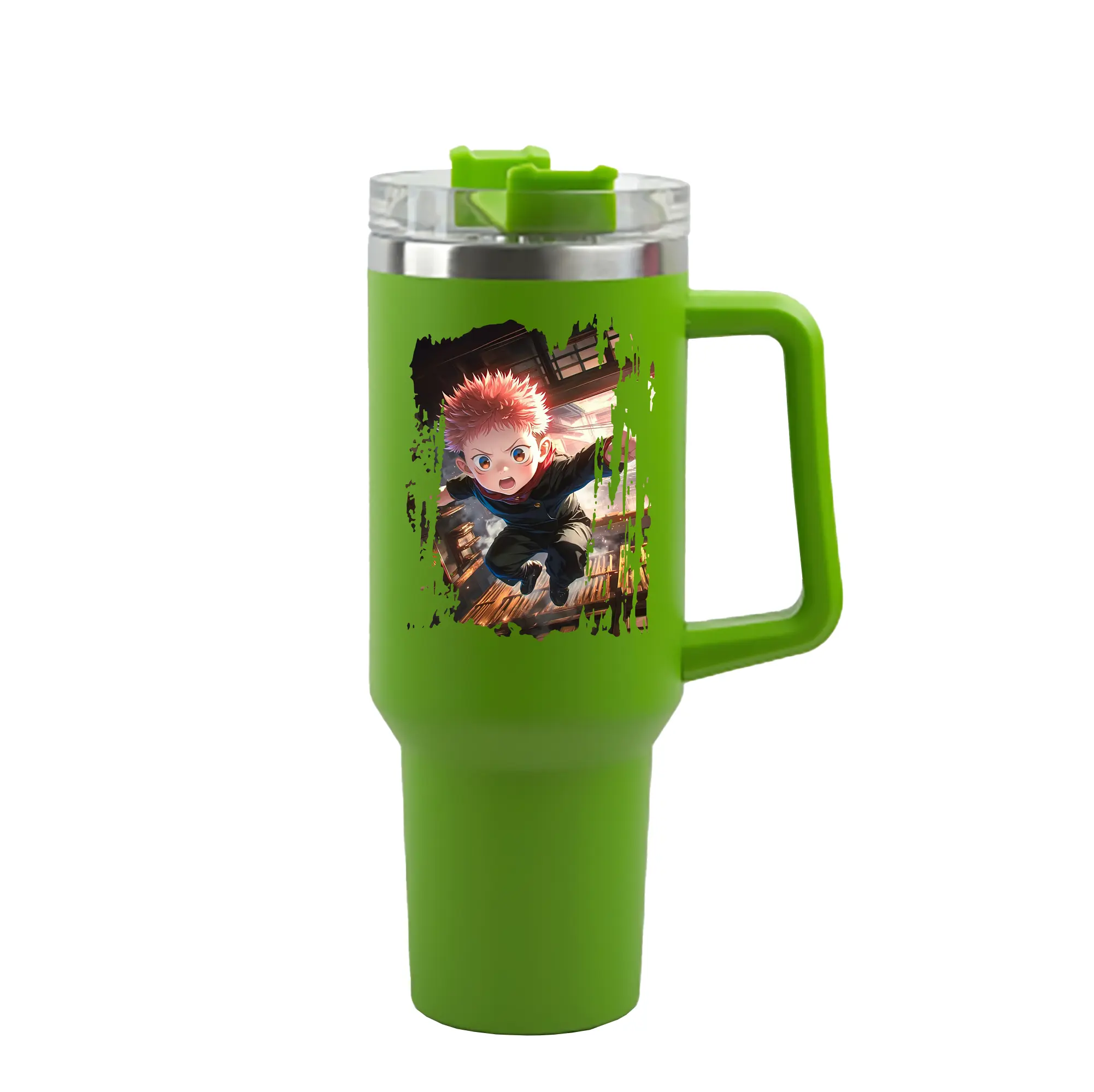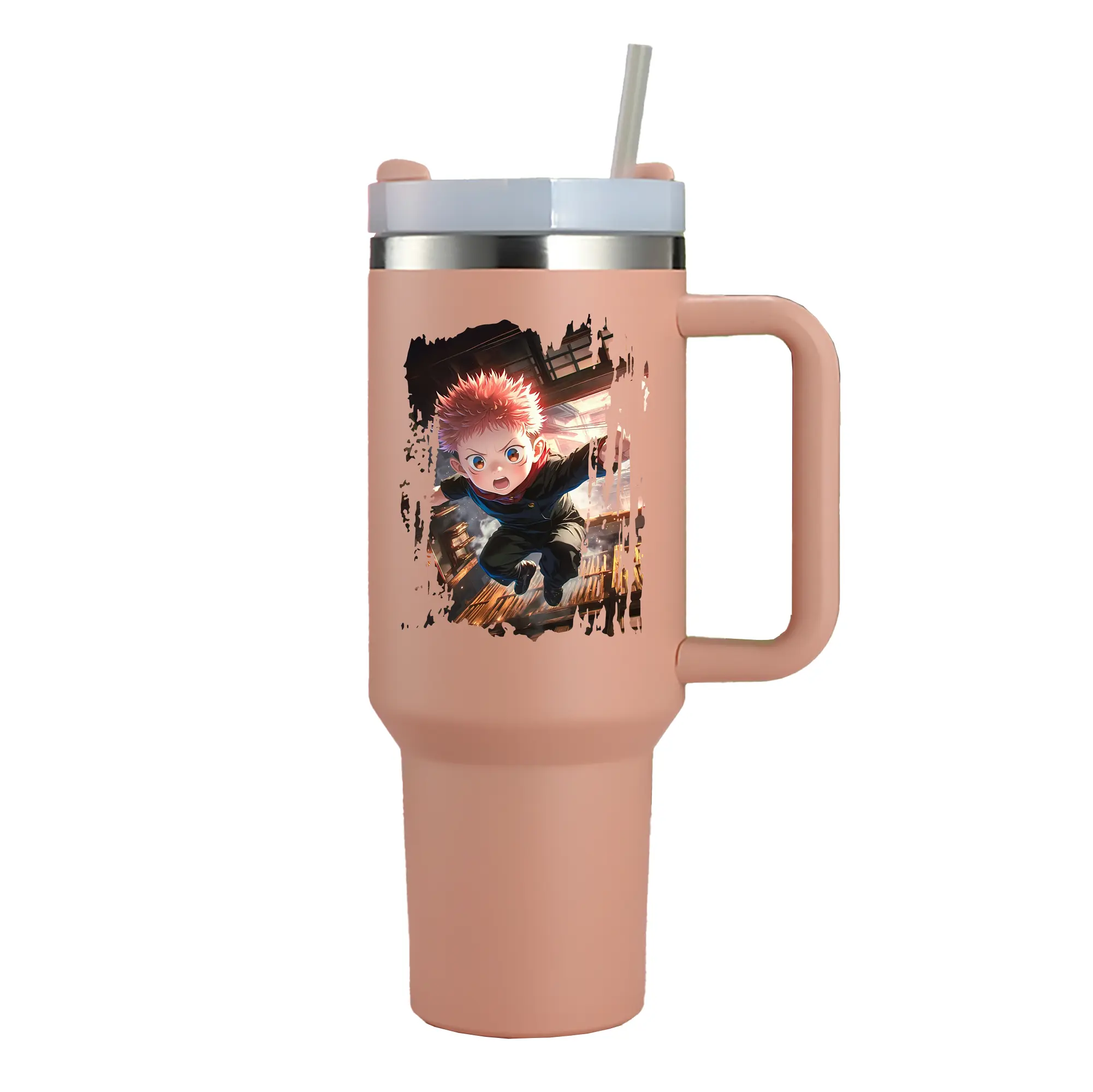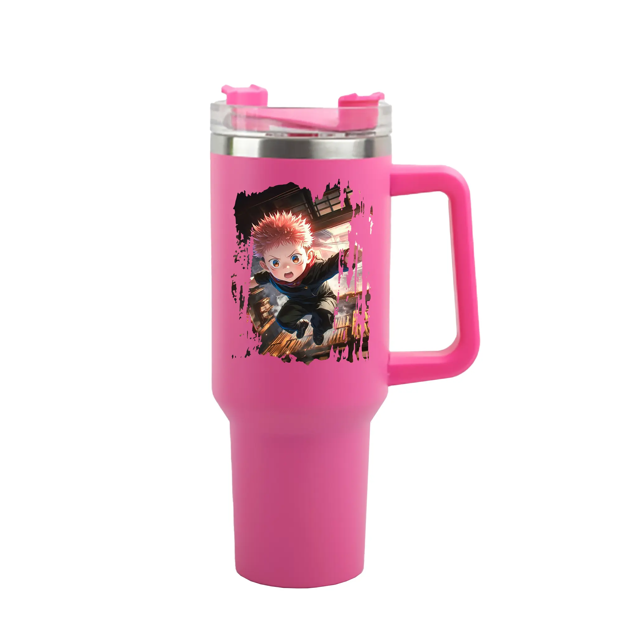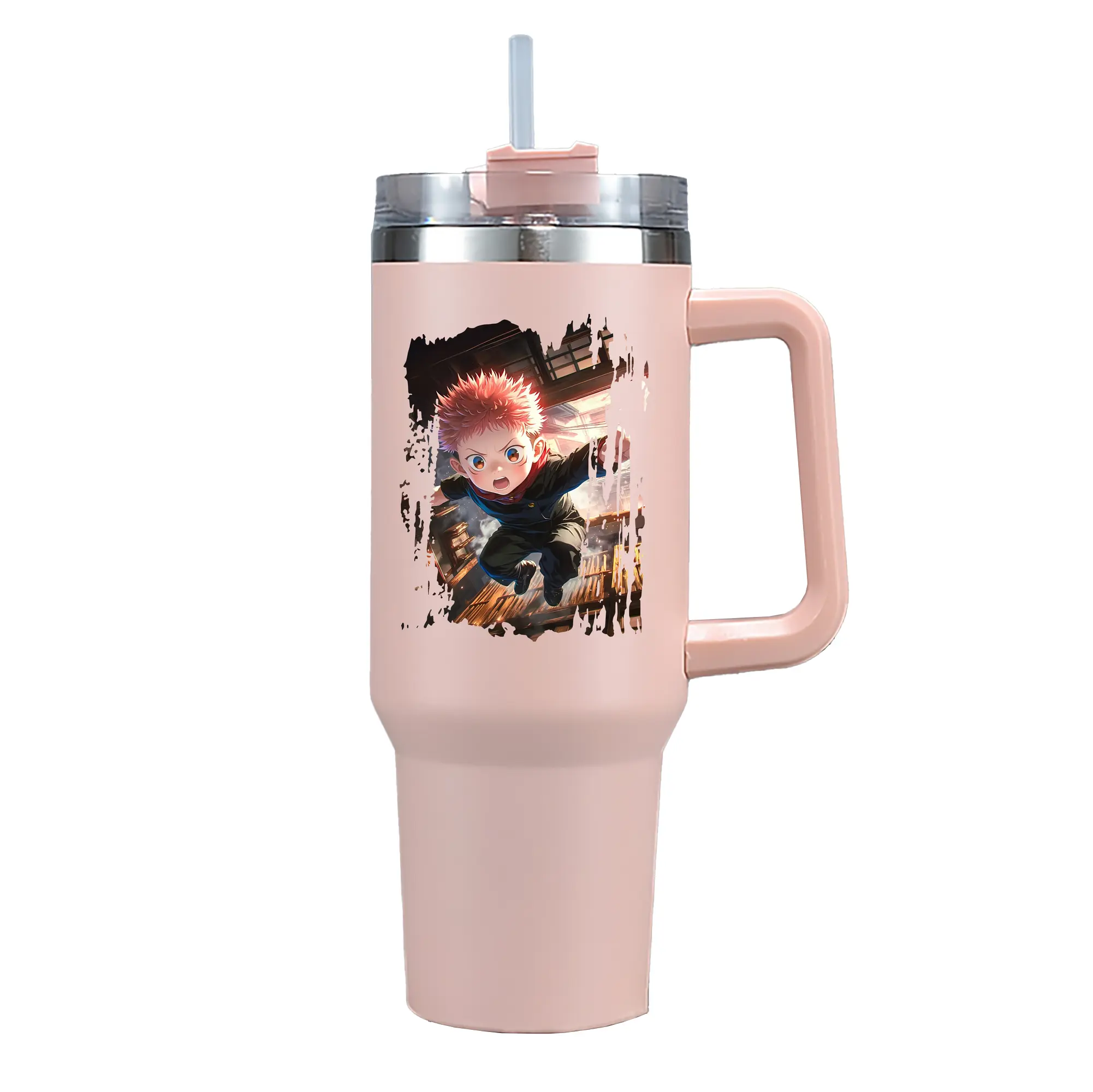 呪術廻戦 グッズ,虎杖 悠仁 - 1200mL 車用タンブラー ・ クリスタルステッカー ・ 304ステンレス 内側 ・ 201ステンレス 外側 ・ 保温 保冷 ・ ハンドル&ストロー付き ・ 通勤 ドライブ アウトドア用