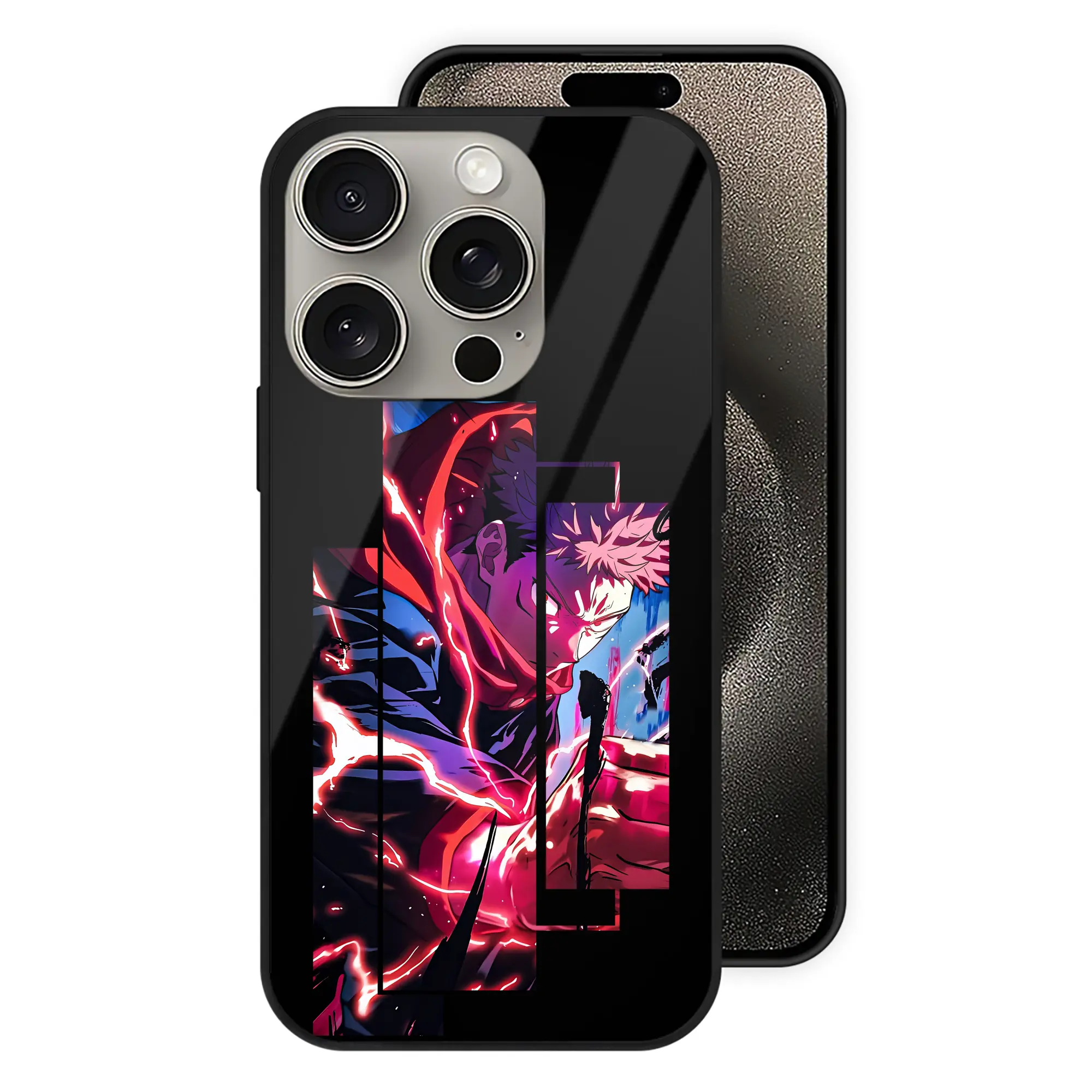 呪術廻戦 グッズ,虎杖 悠仁 - IPhone15Pro対応 ・ スマホケース ・ 背面ガラス ・ TPU+強化ガラス ・ 耐衝撃 ・ 黄変防止 ・ ワイヤレス充電対応 ・ 3D立体ボタン