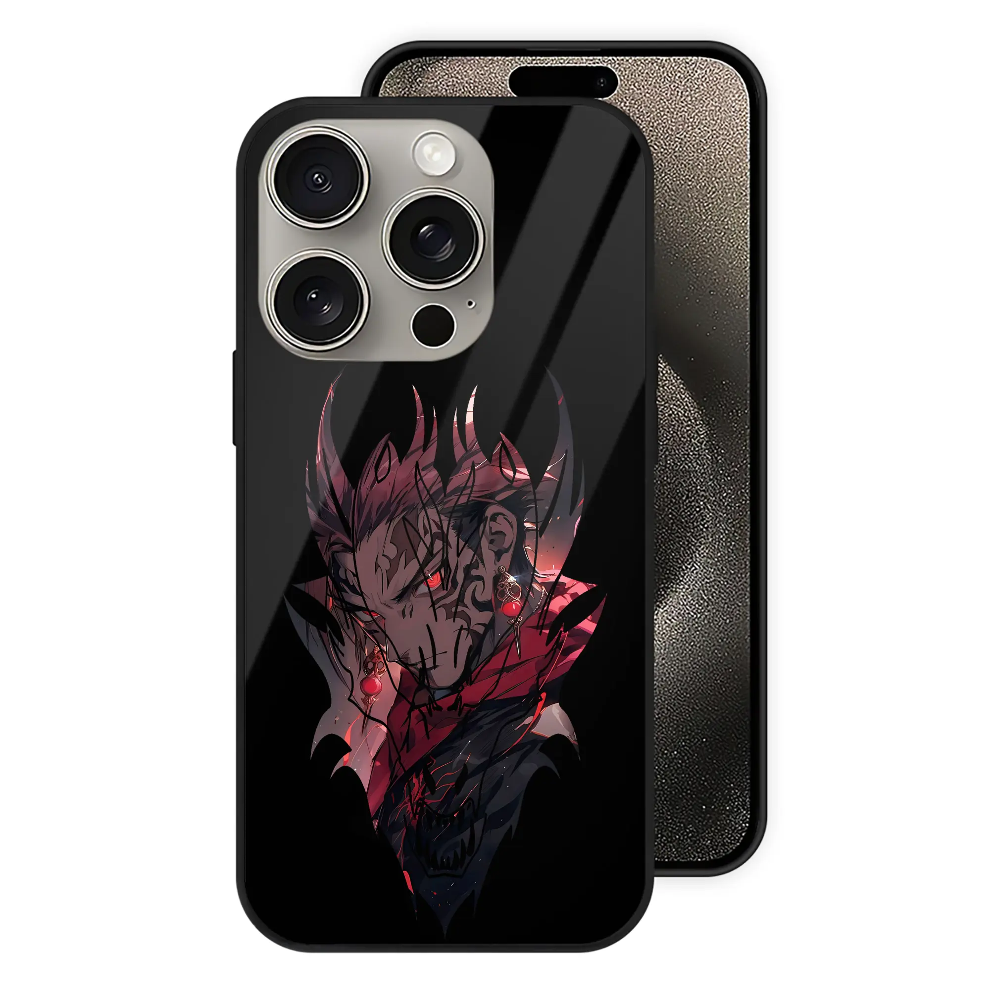 呪術廻戦 グッズ,虎杖 悠仁 - IPhone15Pro対応 ・ スマホケース ・ 背面ガラス ・ TPU+強化ガラス ・ 耐衝撃 ・ 黄変防止 ・ ワイヤレス充電対応 ・ 3D立体ボタン