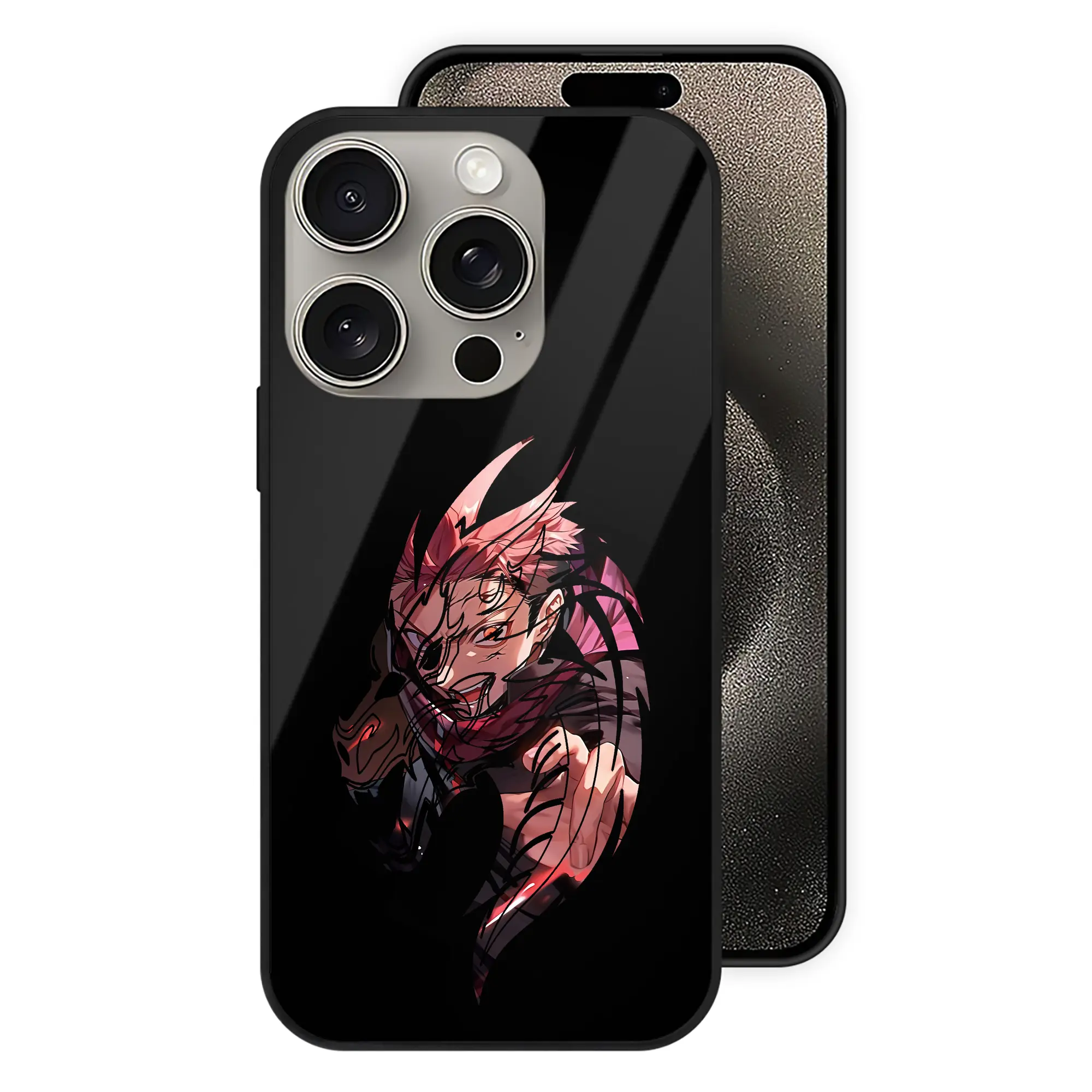 呪術廻戦 グッズ,虎杖 悠仁 - IPhone15Pro対応 ・ スマホケース ・ 背面ガラス ・ TPU+強化ガラス ・ 耐衝撃 ・ 黄変防止 ・ ワイヤレス充電対応 ・ 3D立体ボタン