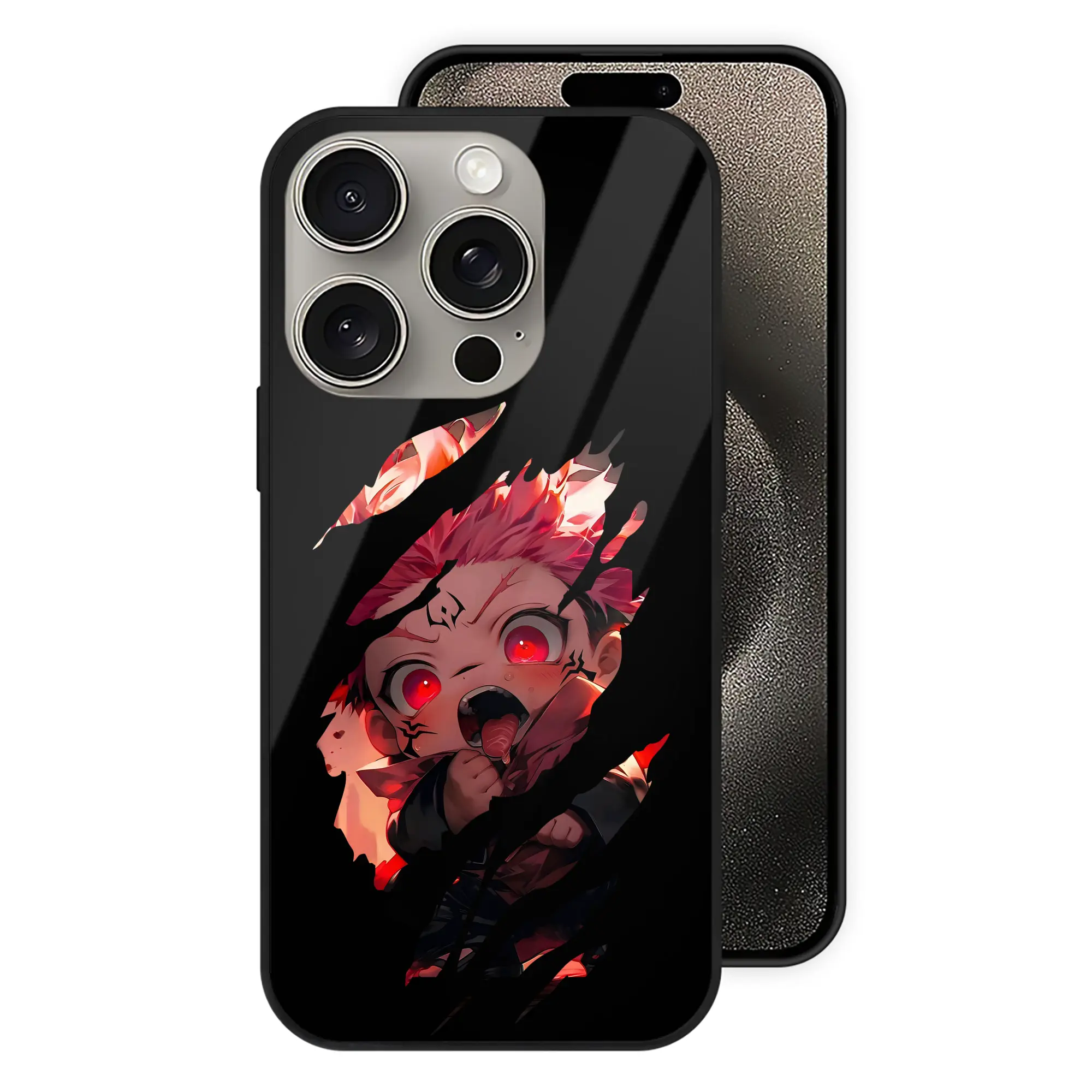 呪術廻戦 グッズ,虎杖 悠仁 - IPhone15Pro対応 ・ スマホケース ・ 背面ガラス ・ TPU+強化ガラス ・ 耐衝撃 ・ 黄変防止 ・ ワイヤレス充電対応 ・ 3D立体ボタン