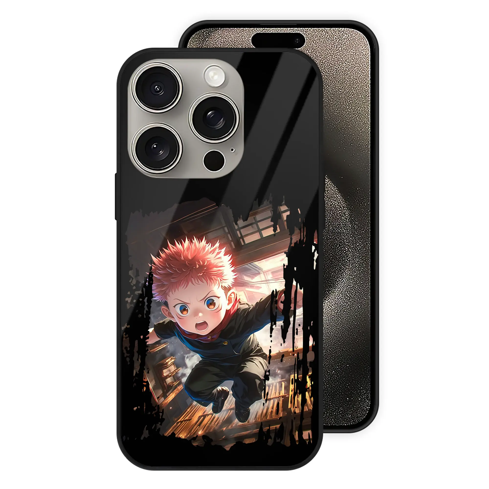 呪術廻戦 グッズ,虎杖 悠仁 - IPhone15Pro対応 ・ スマホケース ・ 背面ガラス ・ TPU+強化ガラス ・ 耐衝撃 ・ 黄変防止 ・ ワイヤレス充電対応 ・ 3D立体ボタン