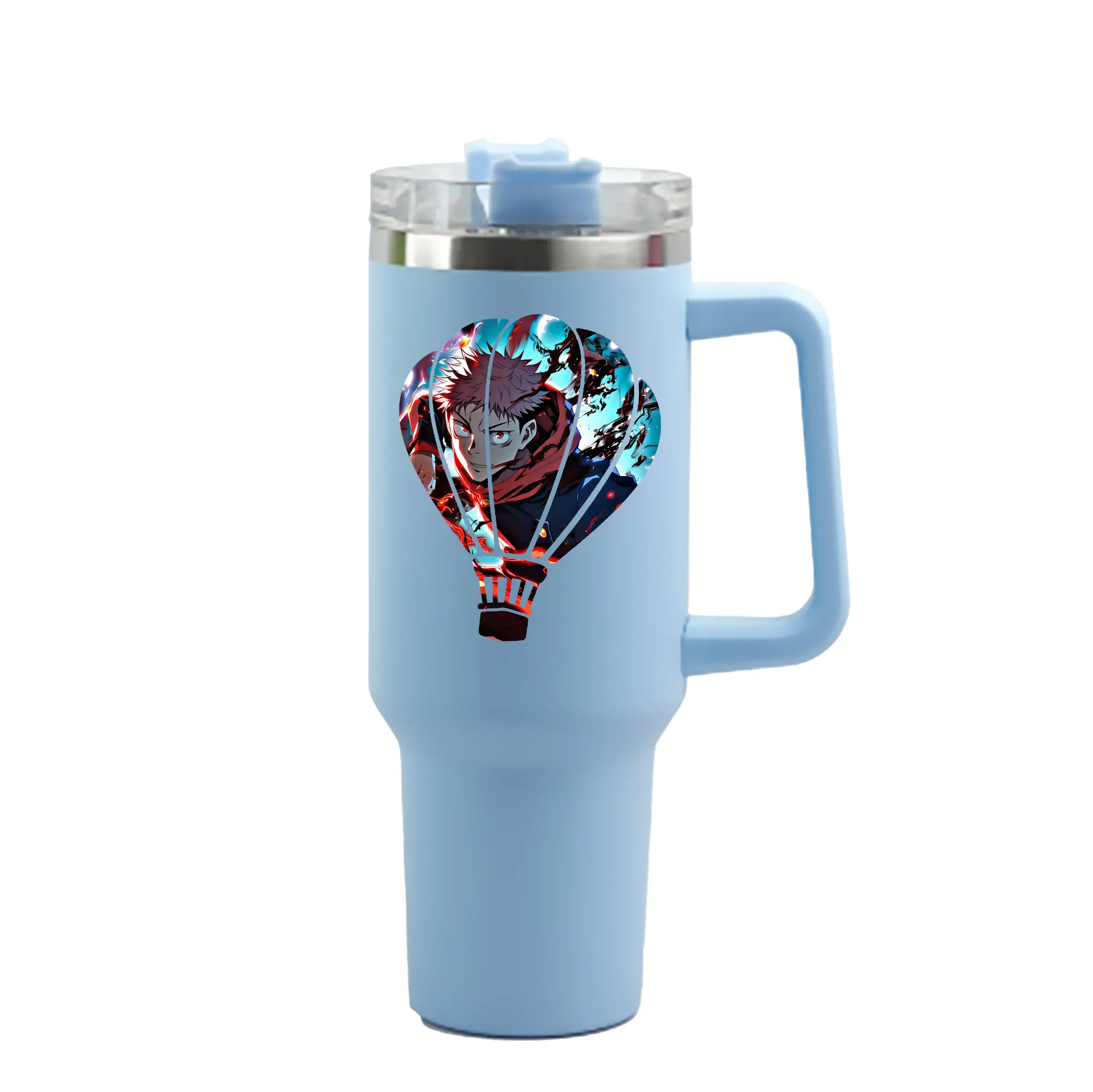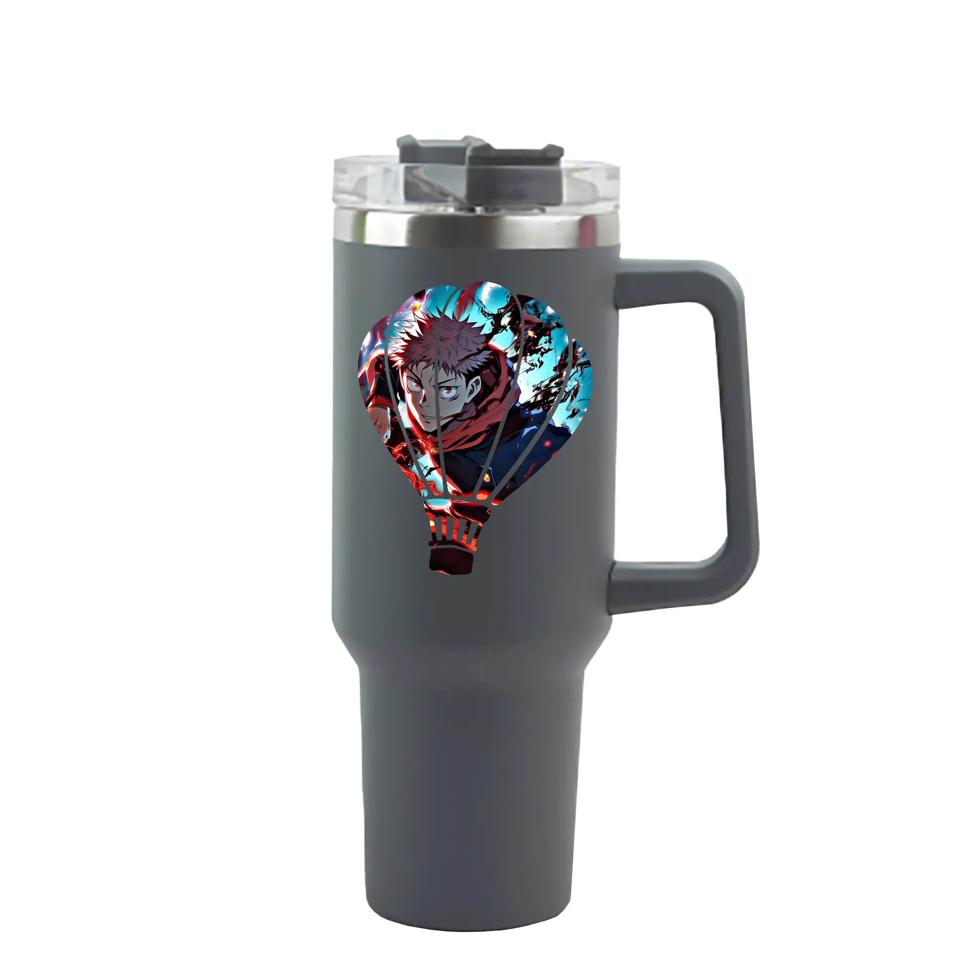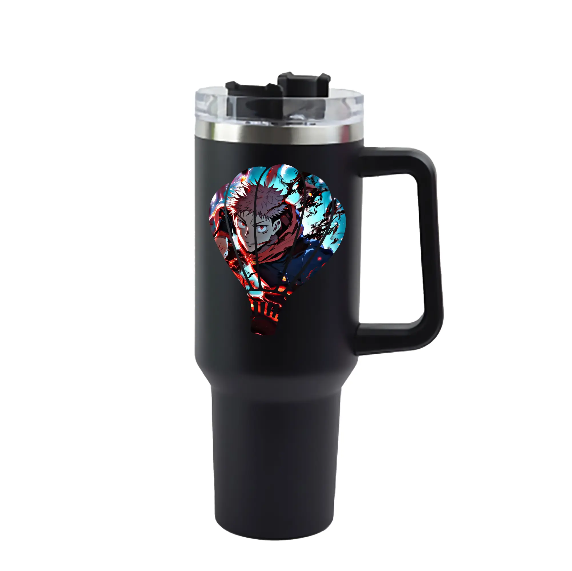 呪術廻戦 グッズ,虎杖 悠仁 - 1200mL 車用タンブラー ・ クリスタルステッカー ・ 304ステンレス 内側 ・ 201ステンレス 外側 ・ 保温 保冷 ・ ハンドル&ストロー付き ・ 通勤 ドライブ アウトドア用