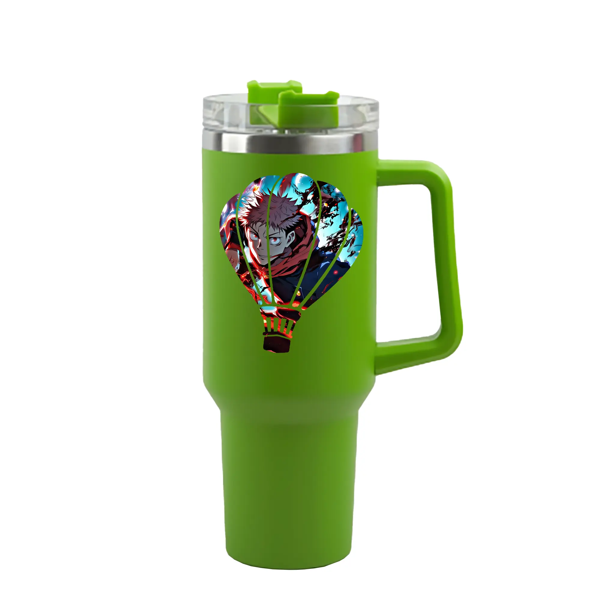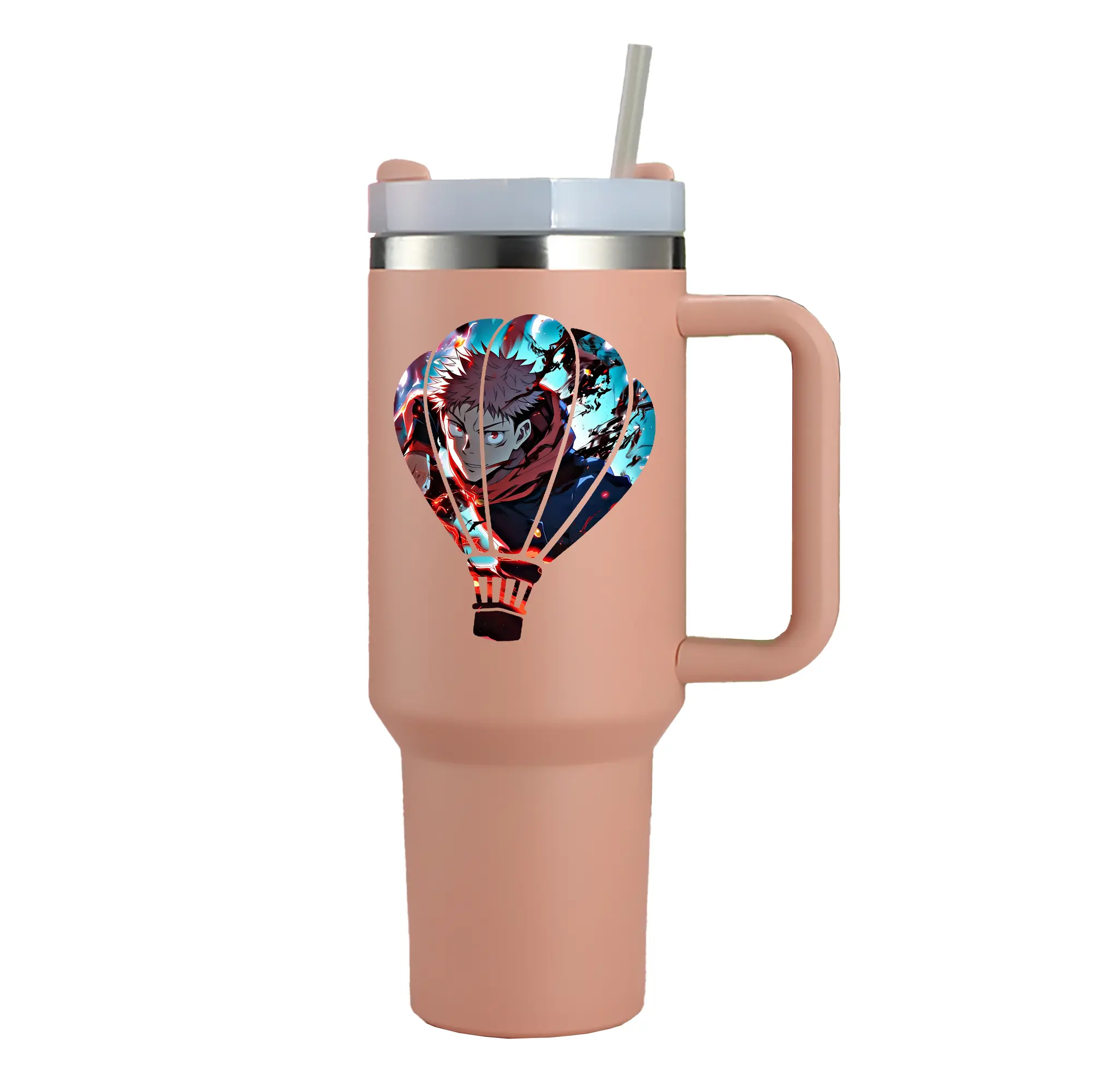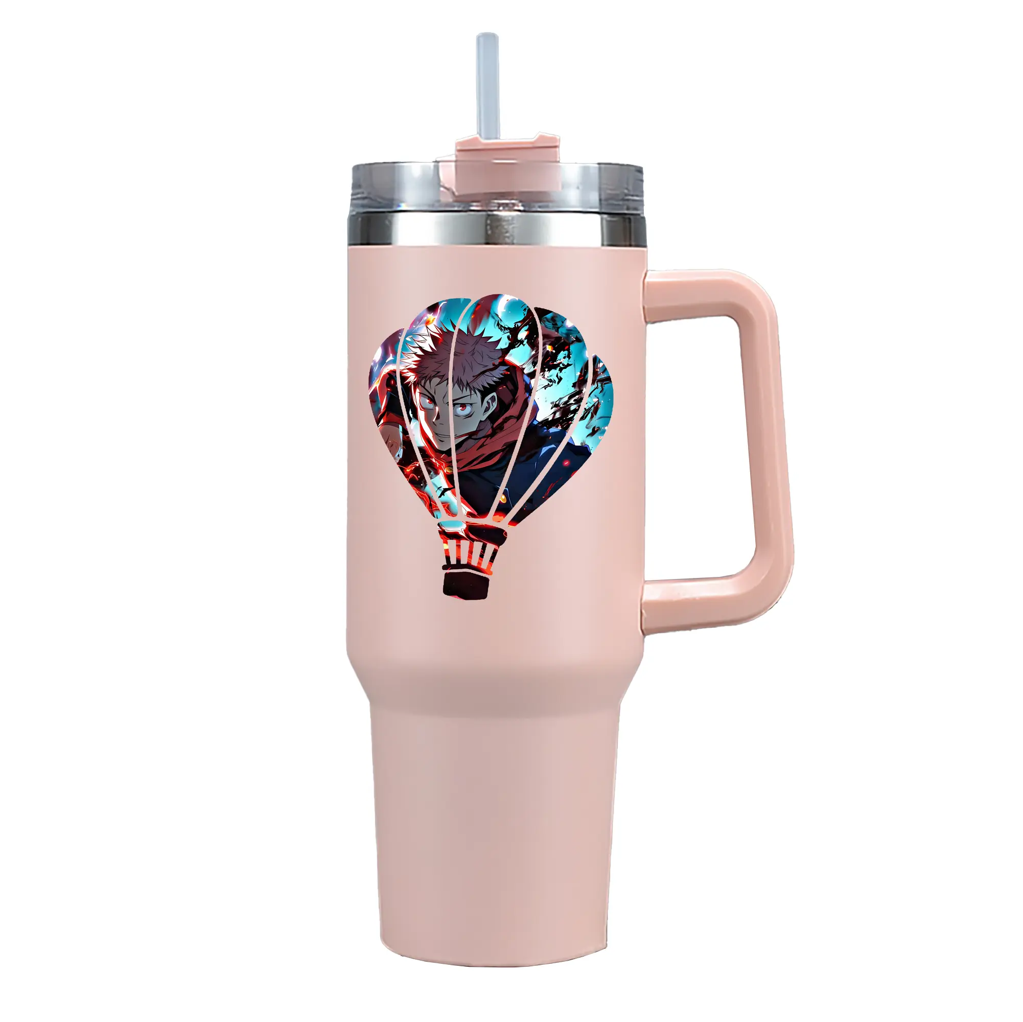 呪術廻戦 グッズ,虎杖 悠仁 - 1200mL 車用タンブラー ・ クリスタルステッカー ・ 304ステンレス 内側 ・ 201ステンレス 外側 ・ 保温 保冷 ・ ハンドル&ストロー付き ・ 通勤 ドライブ アウトドア用