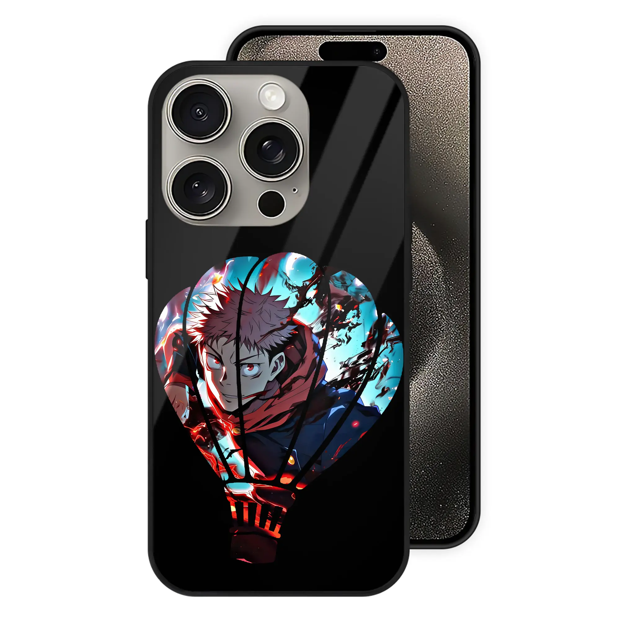 呪術廻戦 グッズ,虎杖 悠仁 - IPhone15Pro対応 ・ スマホケース ・ 背面ガラス ・ TPU+強化ガラス ・ 耐衝撃 ・ 黄変防止 ・ ワイヤレス充電対応 ・ 3D立体ボタン