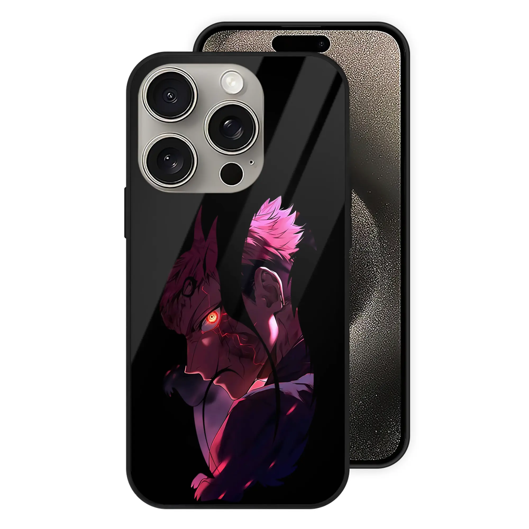 呪術廻戦 グッズ,虎杖 悠仁 - IPhone15Pro対応 ・ スマホケース ・ 背面ガラス ・ TPU+強化ガラス ・ 耐衝撃 ・ 黄変防止 ・ ワイヤレス充電対応 ・ 3D立体ボタン