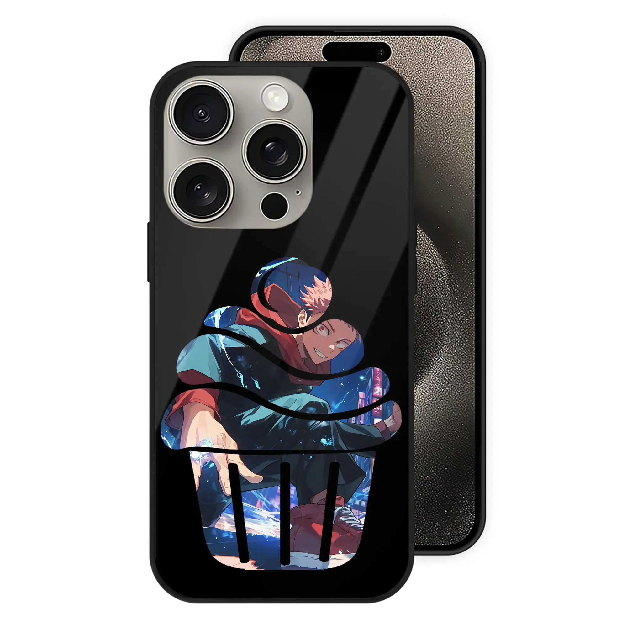 呪術廻戦 グッズ,虎杖 悠仁 - IPhone15Pro対応 ・ スマホケース ・ 背面ガラス ・ TPU+強化ガラス ・ 耐衝撃 ・ 黄変防止 ・ ワイヤレス充電対応 ・ 3D立体ボタン