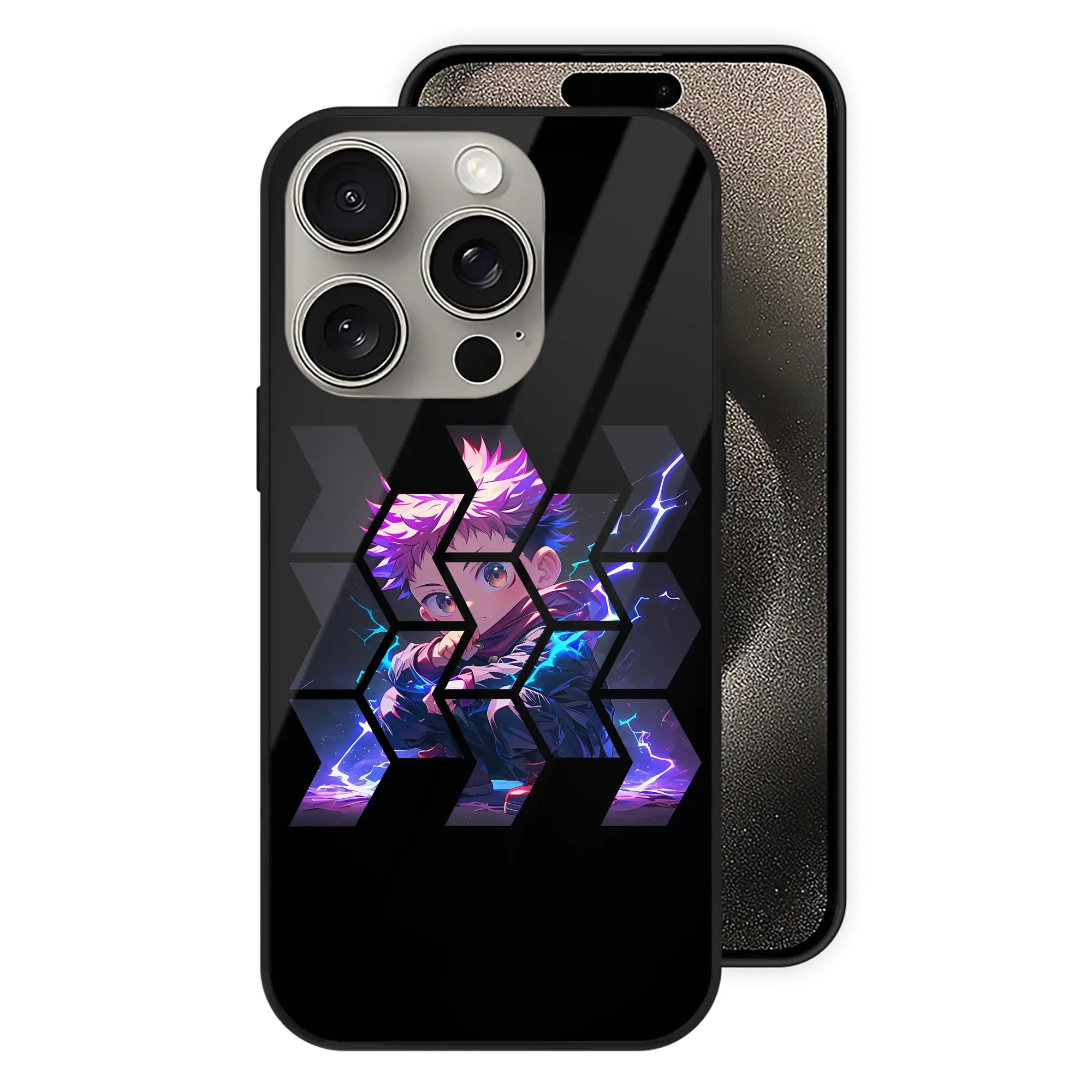 呪術廻戦 グッズ,虎杖 悠仁 - IPhone15Pro対応 ・ スマホケース ・ 背面ガラス ・ TPU+強化ガラス ・ 耐衝撃 ・ 黄変防止 ・ ワイヤレス充電対応 ・ 3D立体ボタン