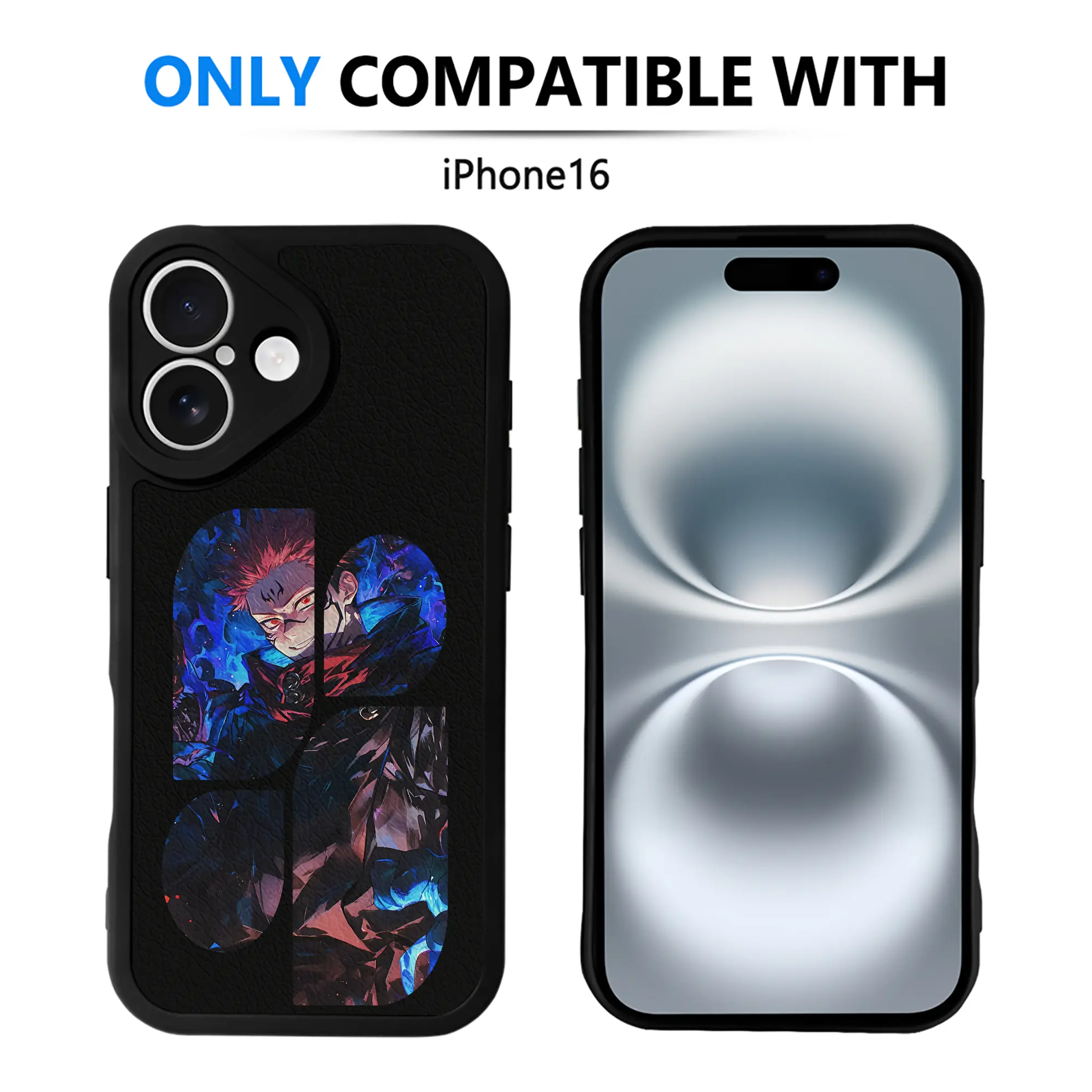 呪術廻戦 グッズ,虎杖 悠仁 - IPhone 16シリーズ対応 ・ シリコンスマホケース ・ レザー調 ・ 高精度フィット ・ 耐衝撃 ・ ワイヤレス充電対応 ・ 精密カット