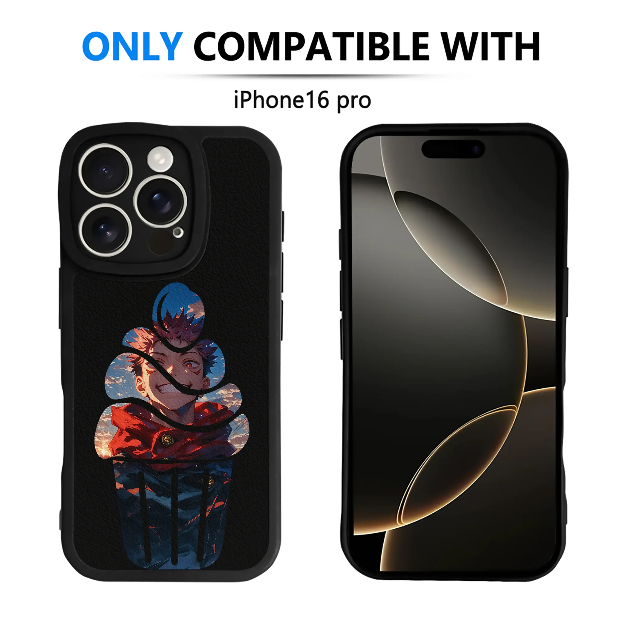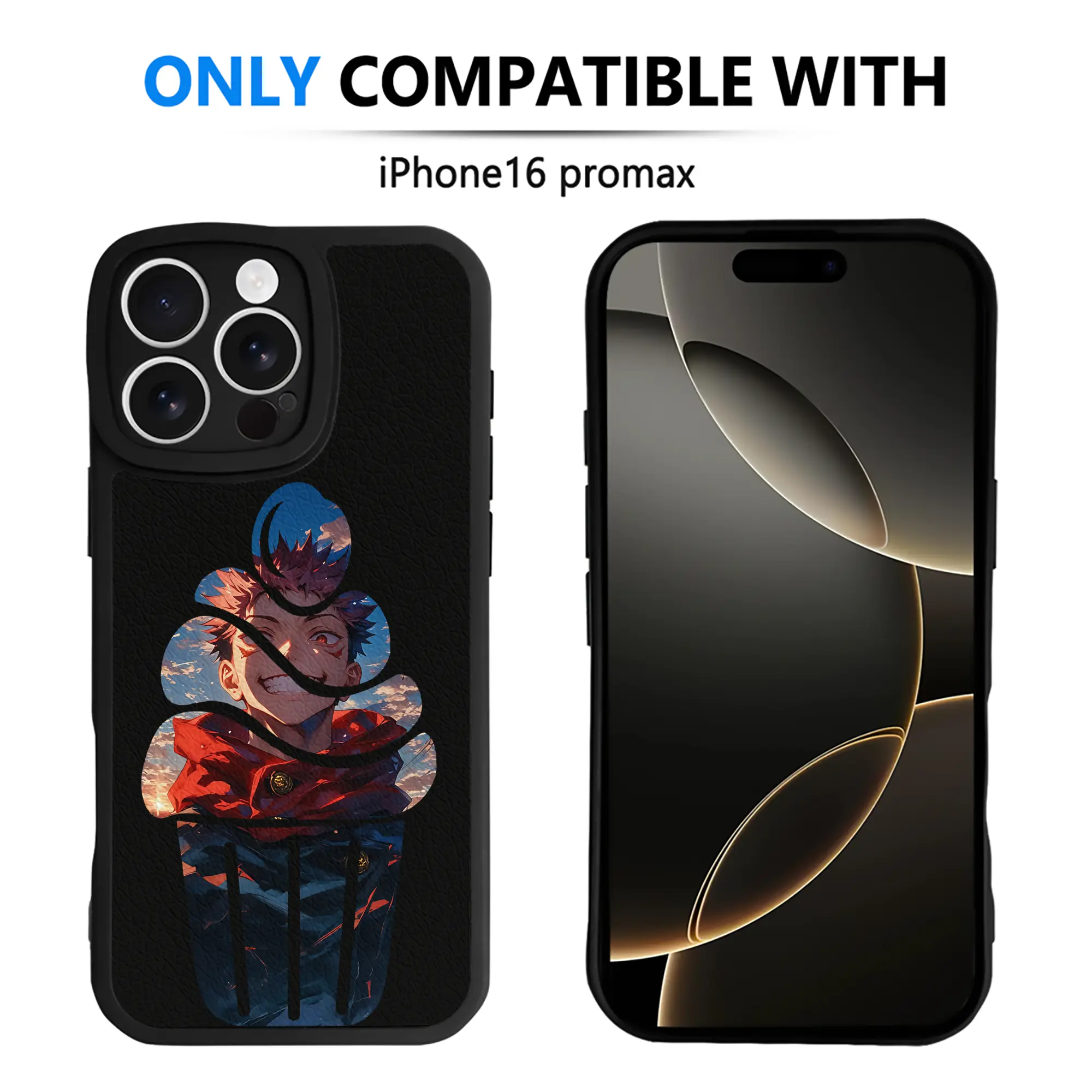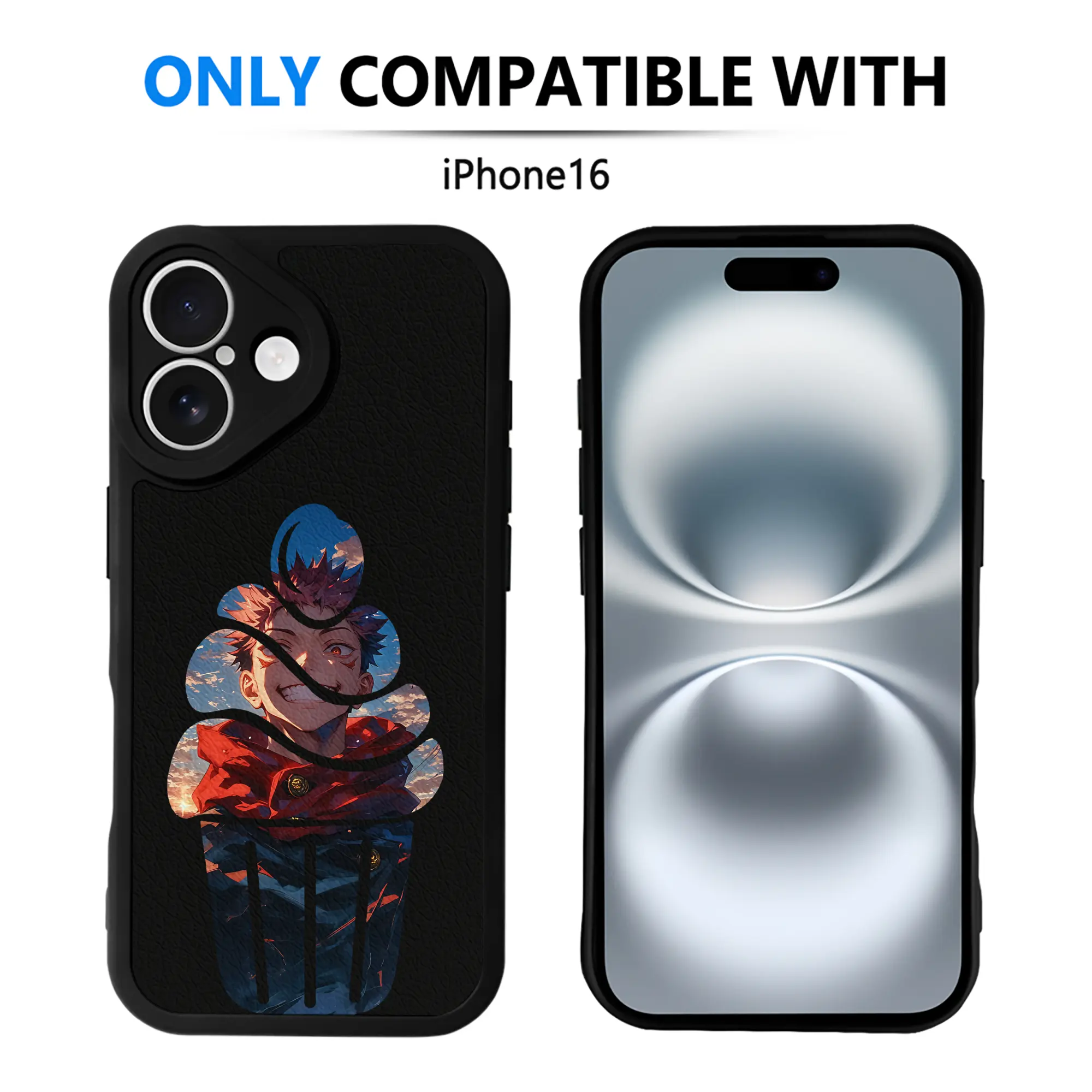 呪術廻戦 グッズ,虎杖 悠仁 - IPhone 16シリーズ対応 ・ シリコンスマホケース ・ レザー調 ・ 高精度フィット ・ 耐衝撃 ・ ワイヤレス充電対応 ・ 精密カット