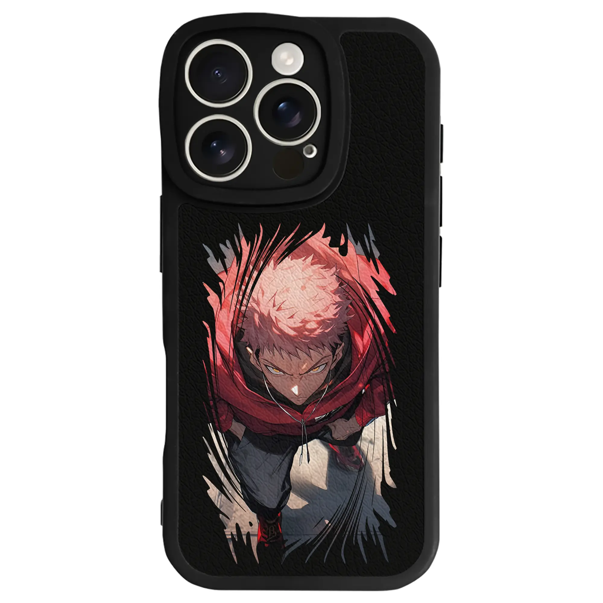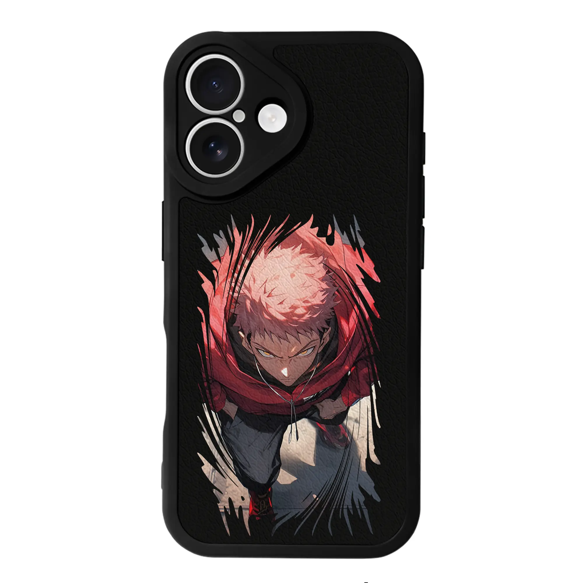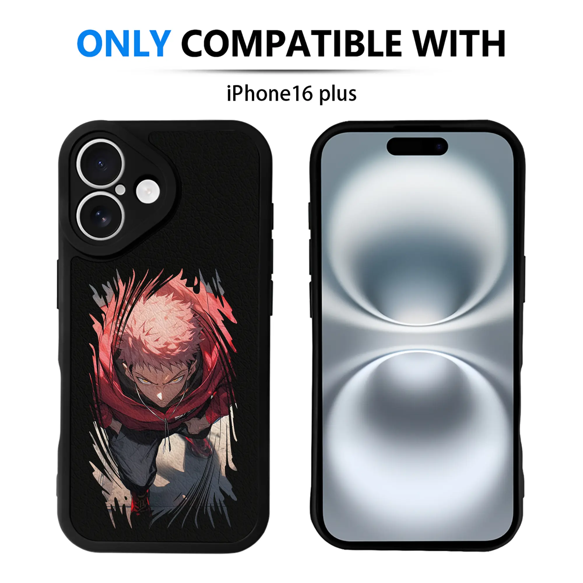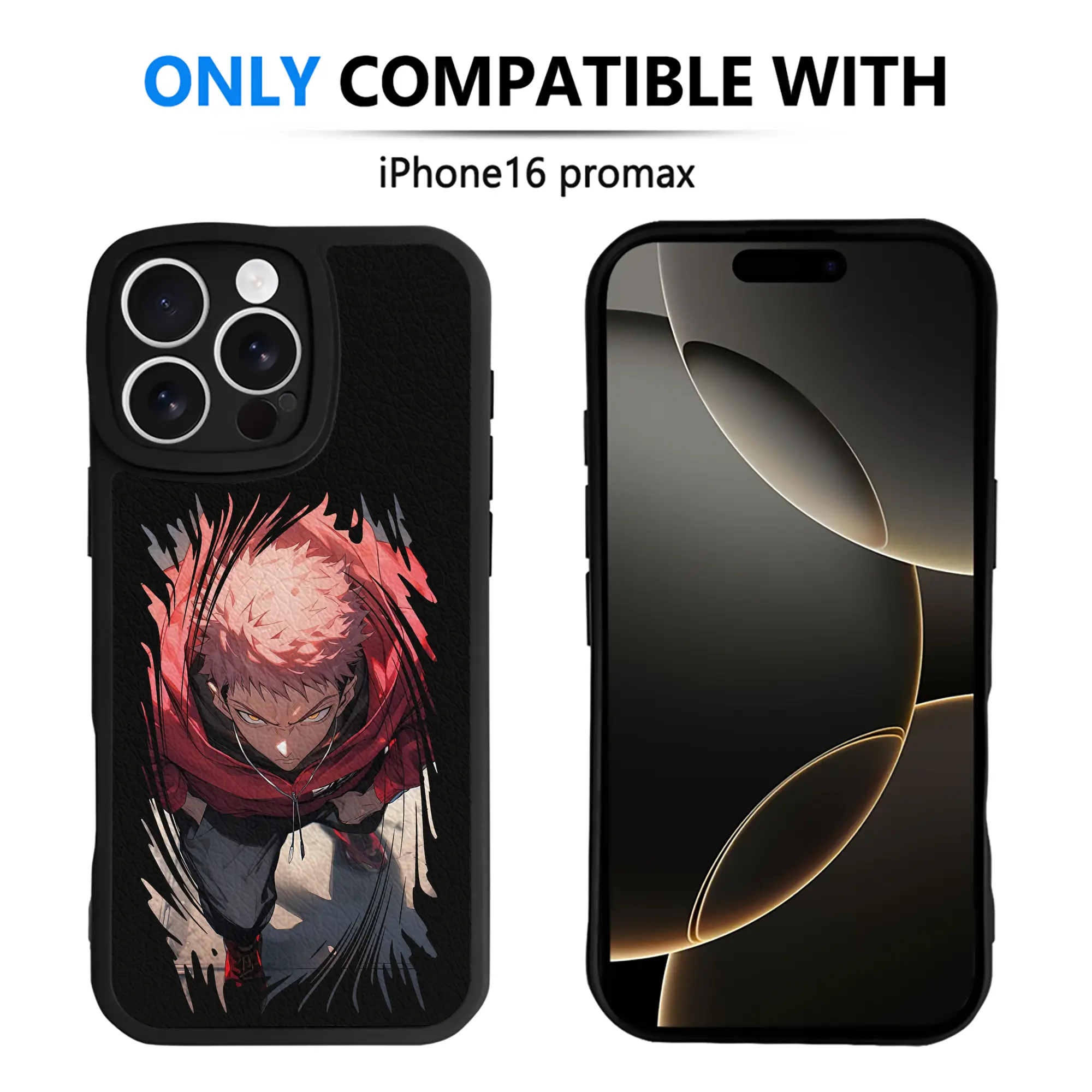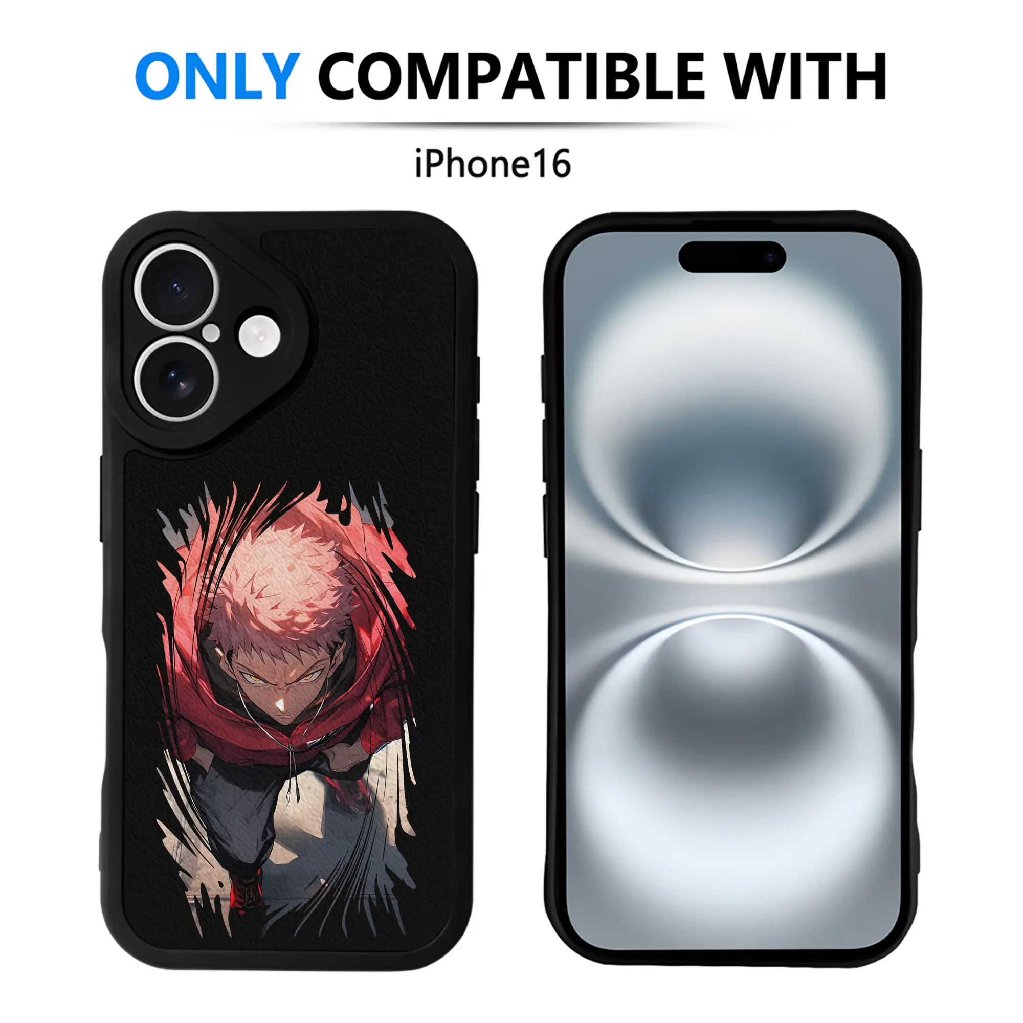 呪術廻戦 グッズ,虎杖 悠仁 - IPhone 16シリーズ対応 ・ シリコンスマホケース ・ レザー調 ・ 高精度フィット ・ 耐衝撃 ・ ワイヤレス充電対応 ・ 精密カット