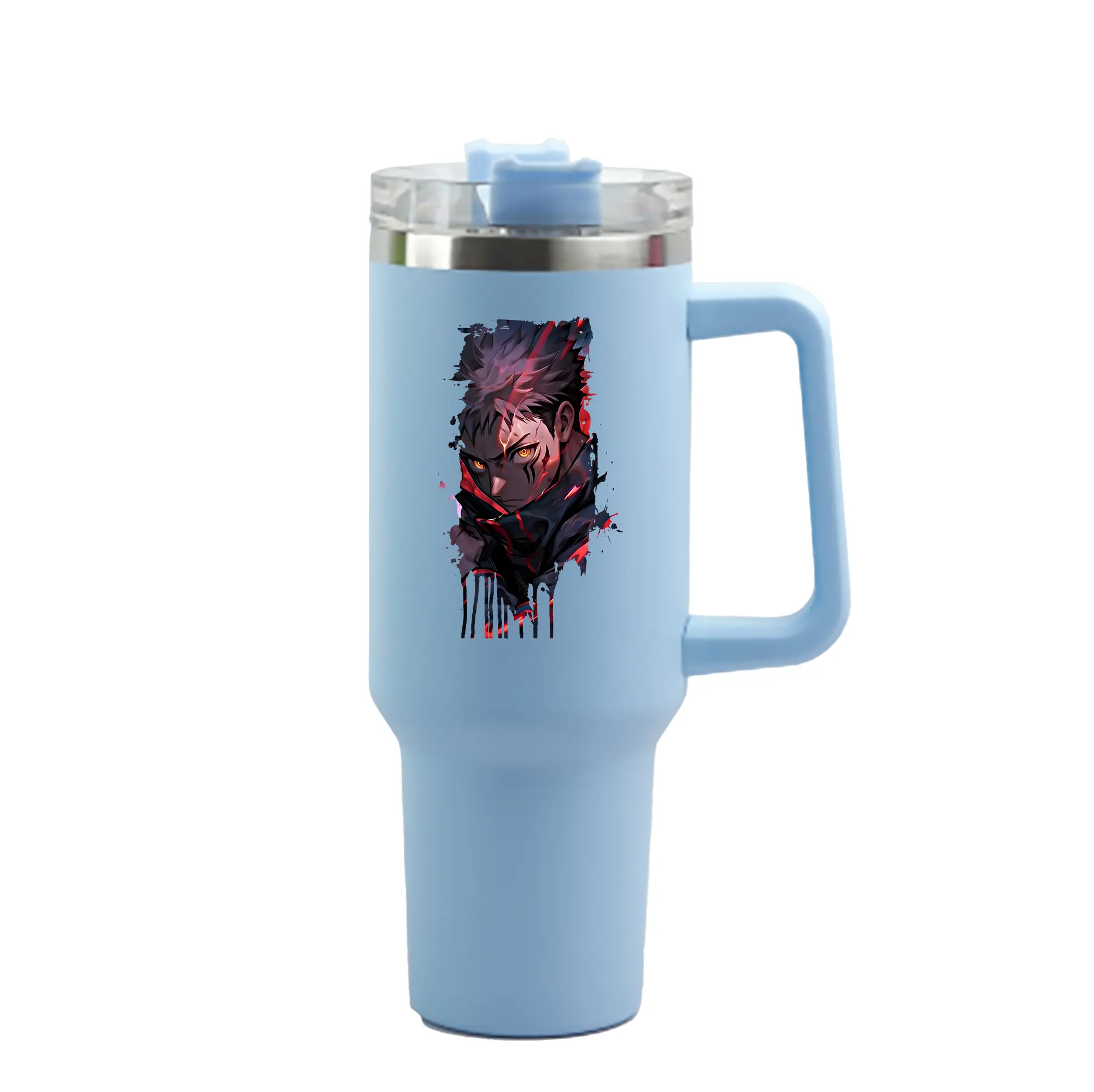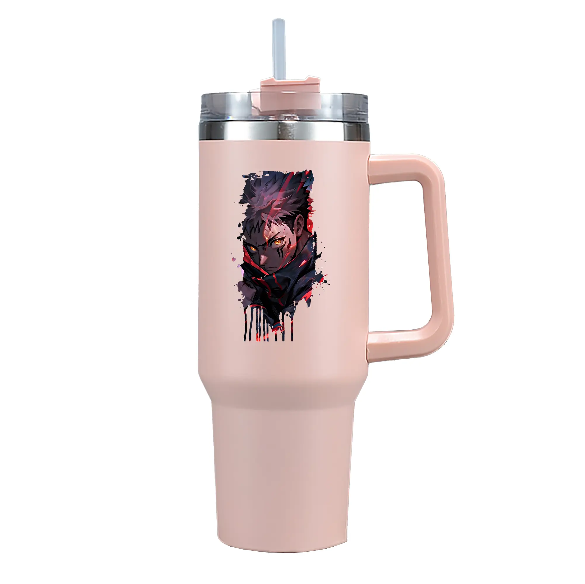 呪術廻戦 グッズ,虎杖 悠仁 - 1200mL 車用タンブラー ・ クリスタルステッカー ・ 304ステンレス 内側 ・ 201ステンレス 外側 ・ 保温 保冷 ・ ハンドル&ストロー付き ・ 通勤 ドライブ アウトドア用